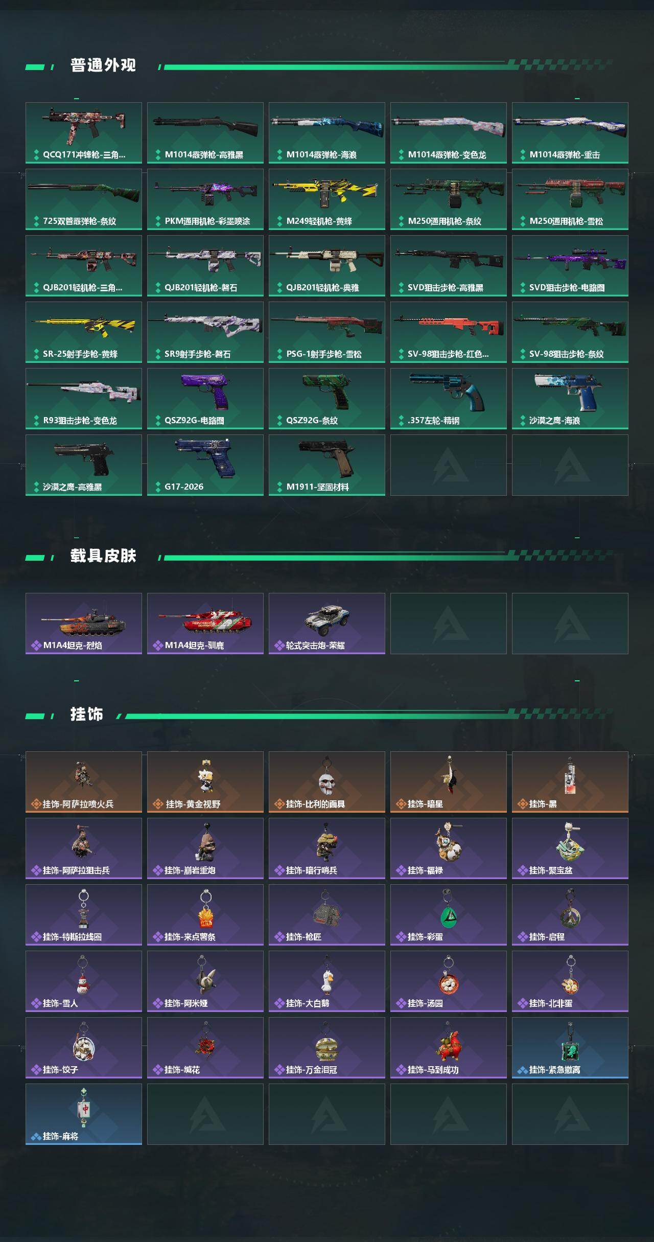 【近战皮肤】:近战-暗星,近战-电锯惊魂,近战-处刑者1级,近战-黑鹰
