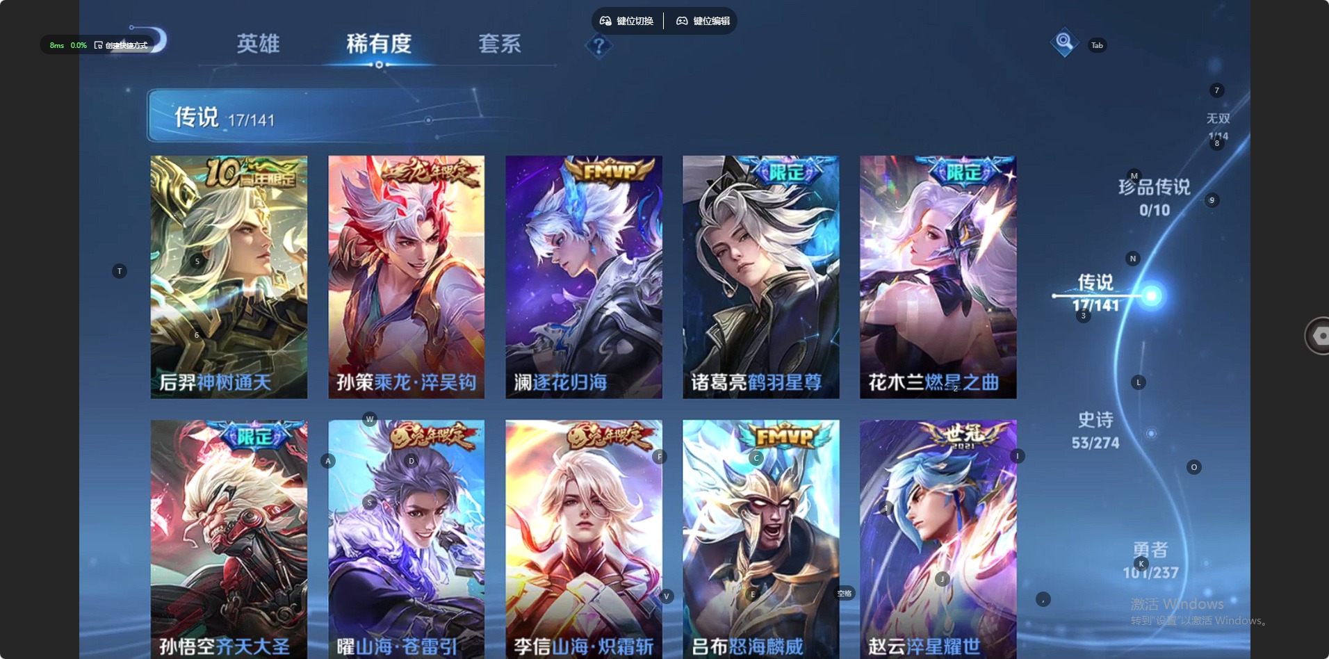 [17244032]V7 1无双 17传说 128英雄 210皮肤 可修改实名