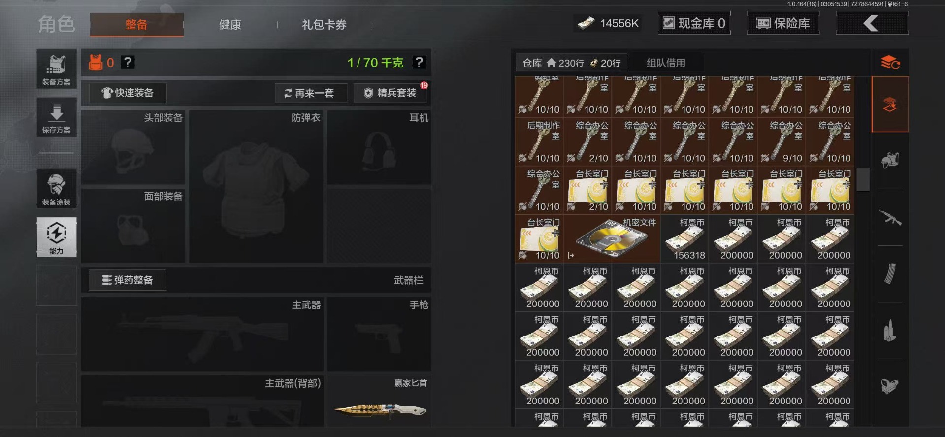库存价值66.7 7近战武器 1红套装 4金套装 14金枪皮