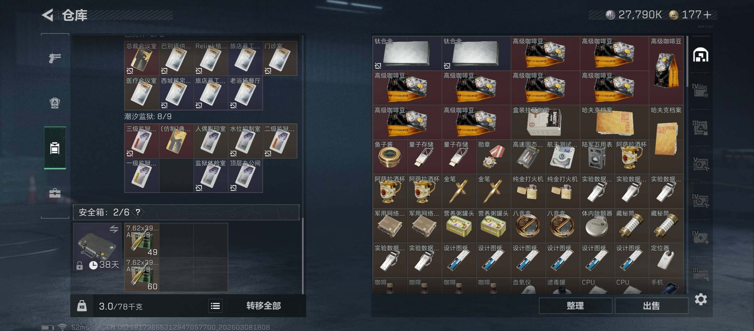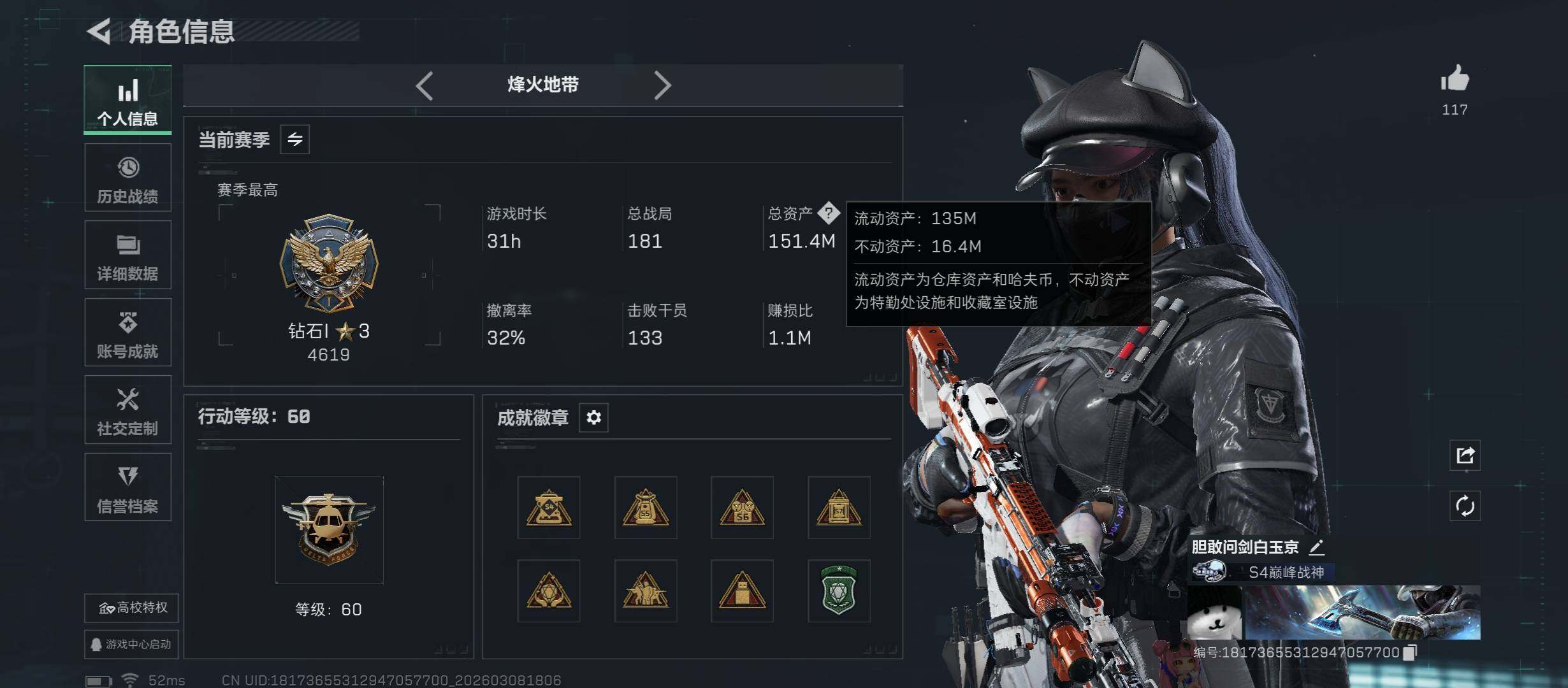 【热门皮肤号:单红+三刀皮+一典藏-黑天际线+黑海+怜悯+电锯.资产151M】【腾龙突击步枪-气象感应(优品B)-冰】【无二次】YXz8938-特勤处:仓库7级/靶场4级/训练中心6级-151m总资产-2779W哈伏币-60烽火等级-钻石-31战场等级-列兵