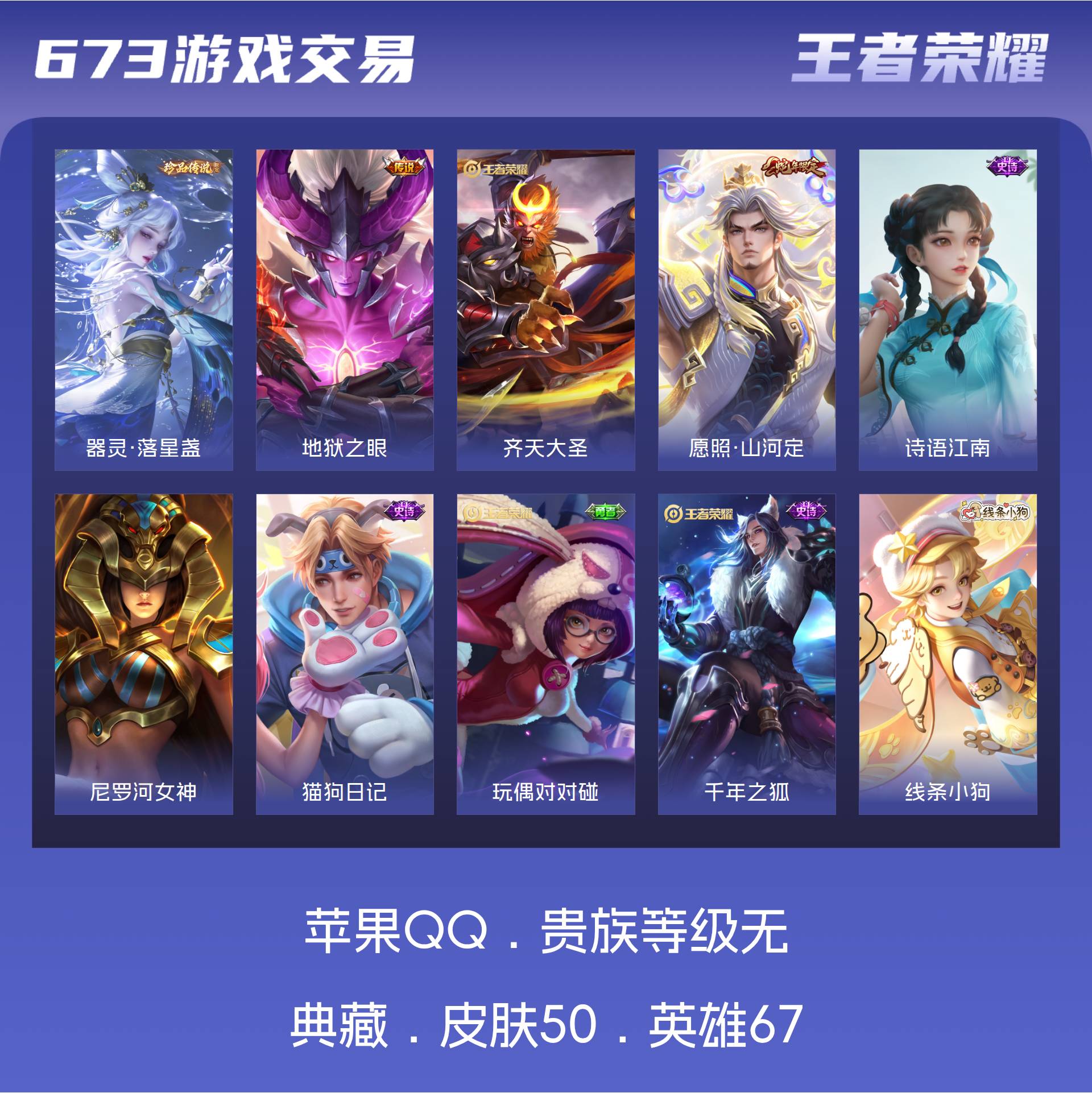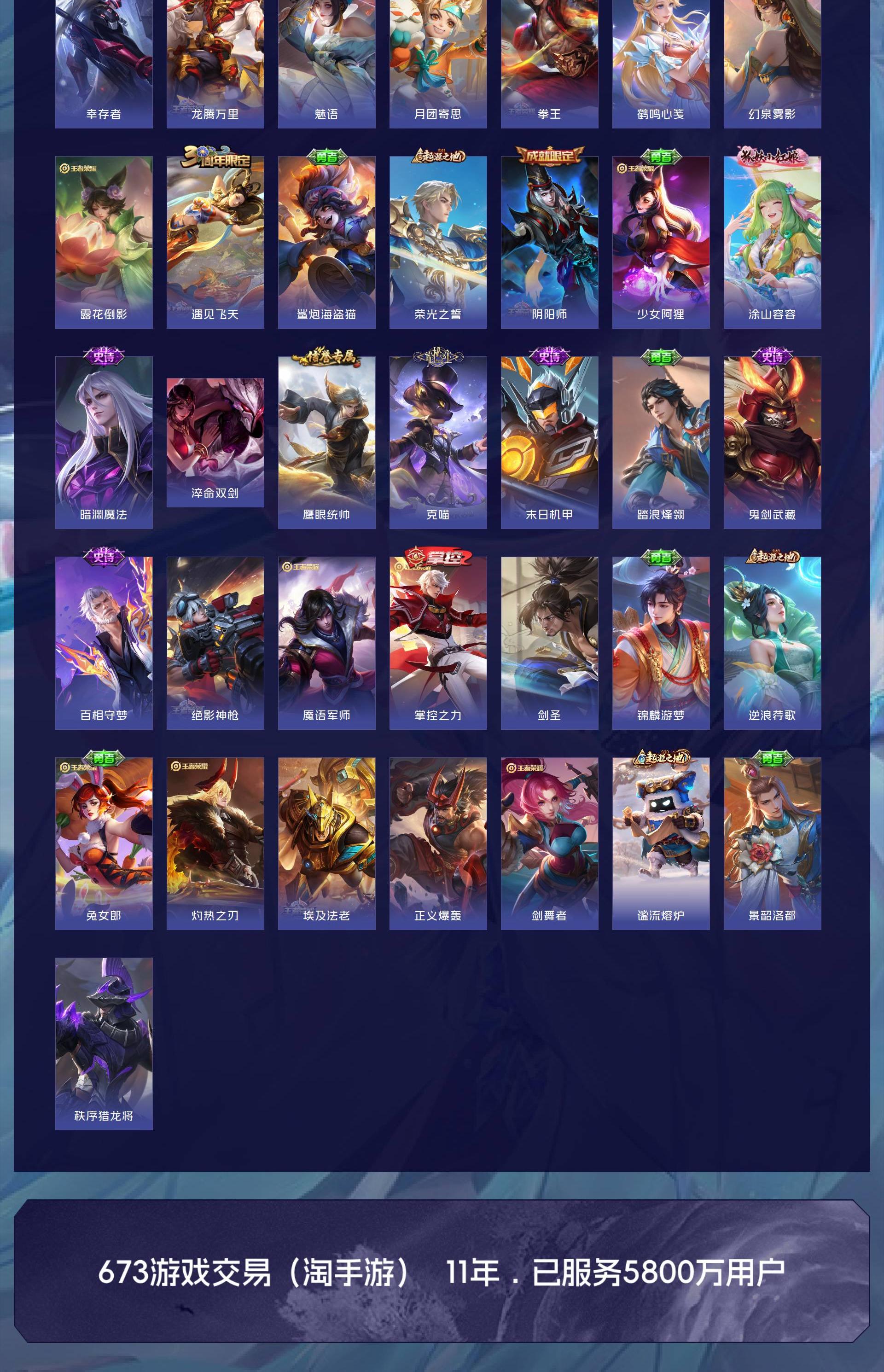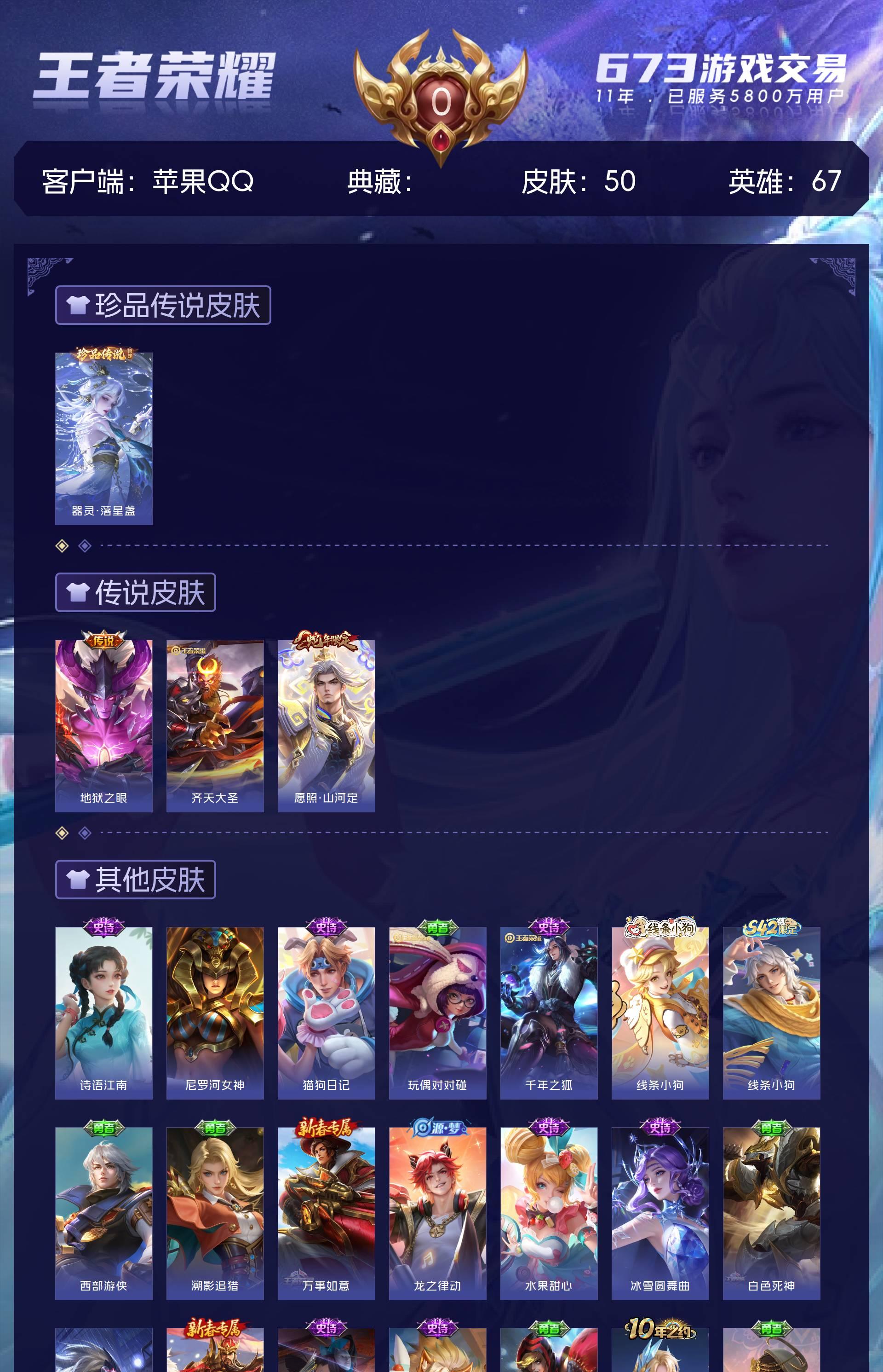 皮肤50 英雄67 绝世王者 珍品传说1 传说3 其他皮肤50