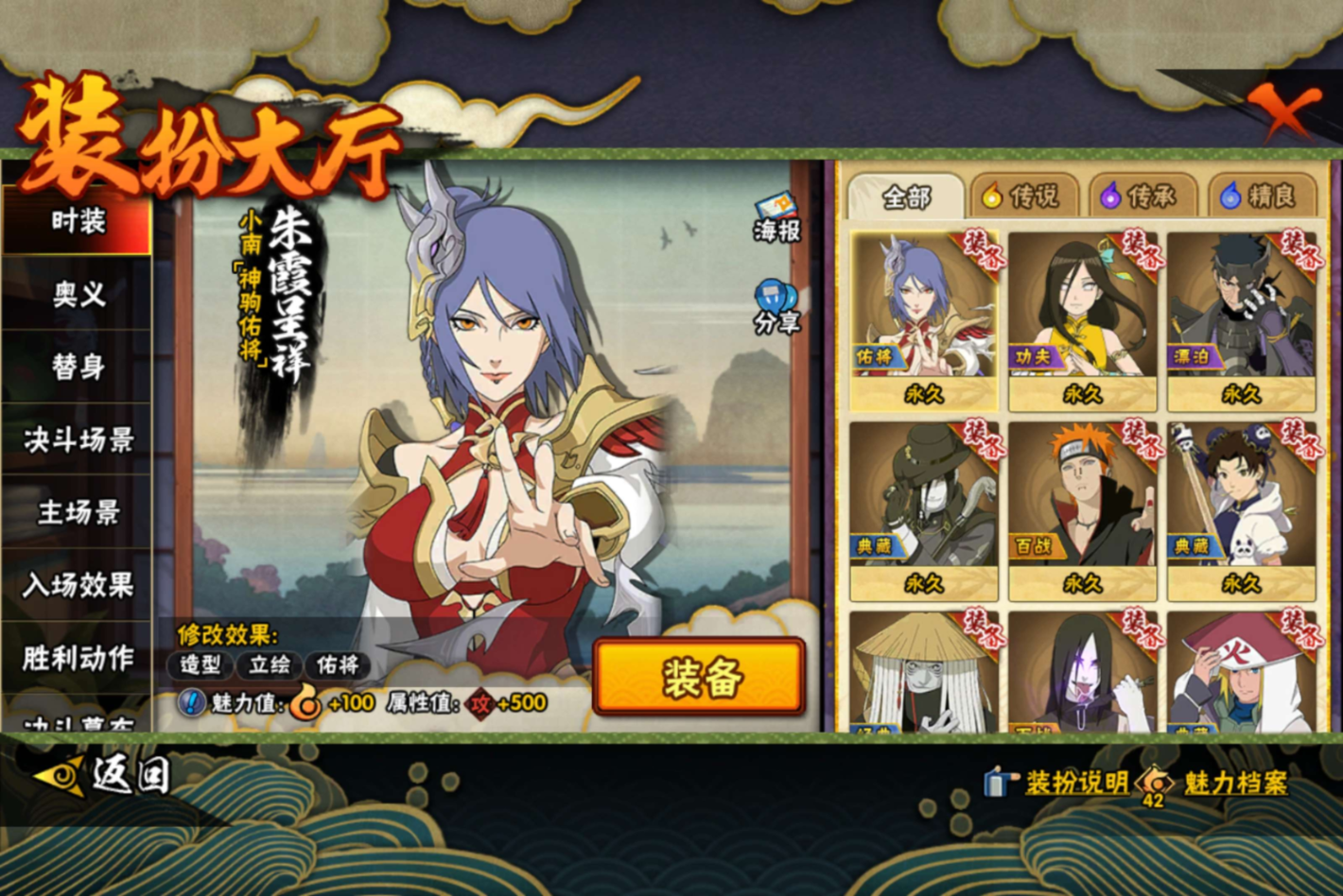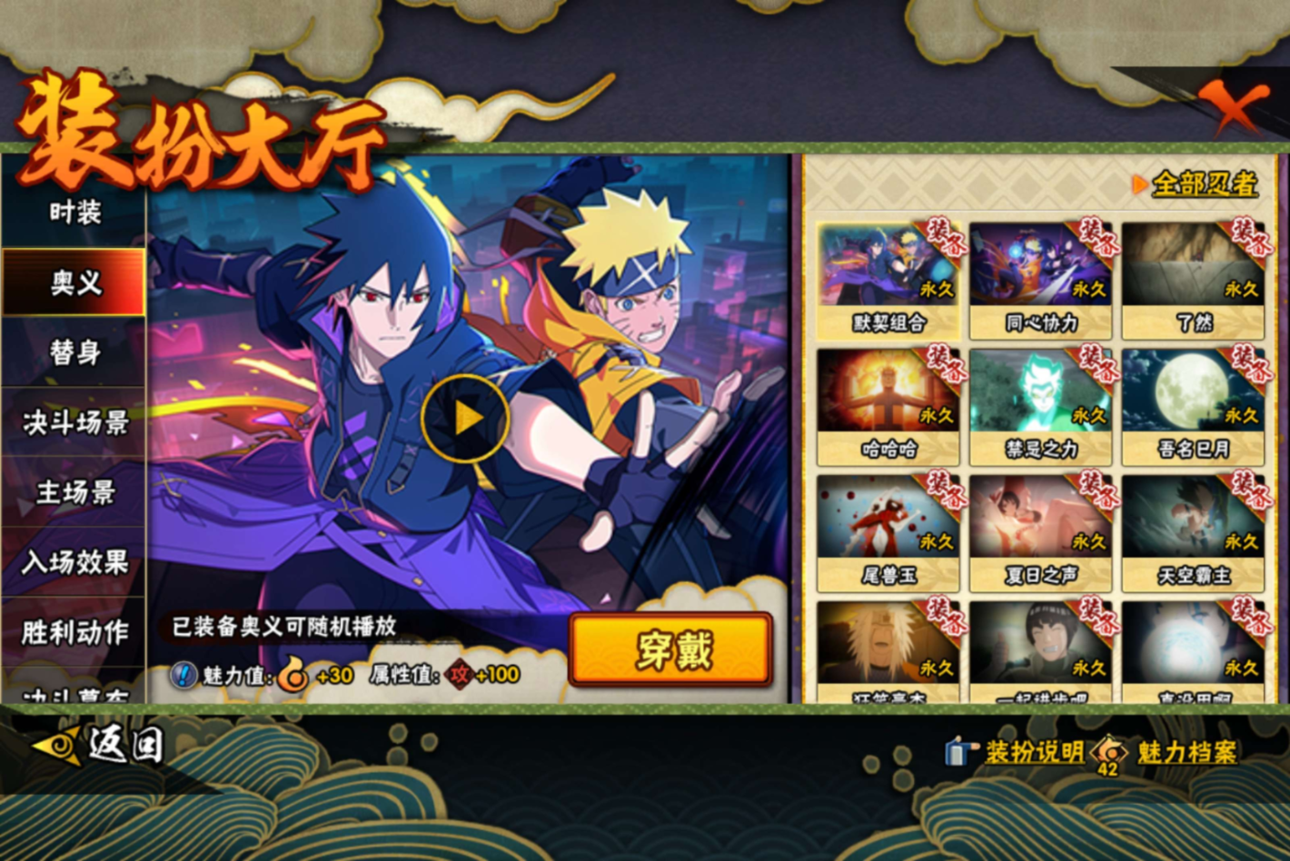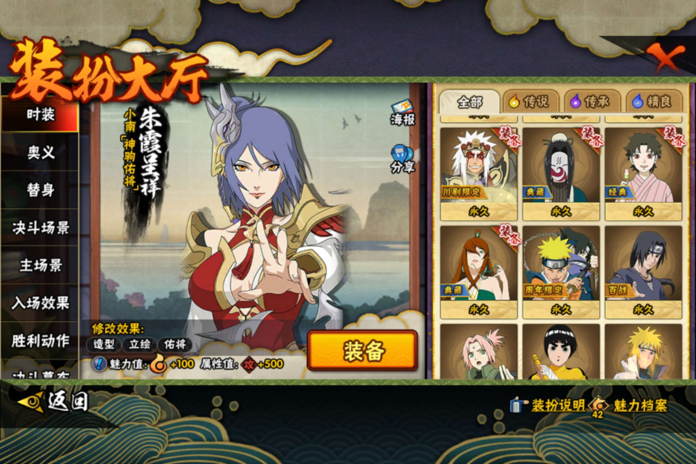 【S级忍者】迈特凯「死门」(3星),自来也「传说中的三忍」(3星),漩涡鸣人「暴怒·第六尾」(3星),宇智波斑「秽土转生·解」(3星),宇智波佐助「永恒万花筒」(3星),大筒木金式(3星),艾「忍界大战」(3星),宇智波止水「须佐能乎」(3星),千手柱间「秽土转生」(3星),漩涡鸣人「九喇嘛连结」(3星),宇智波斑「