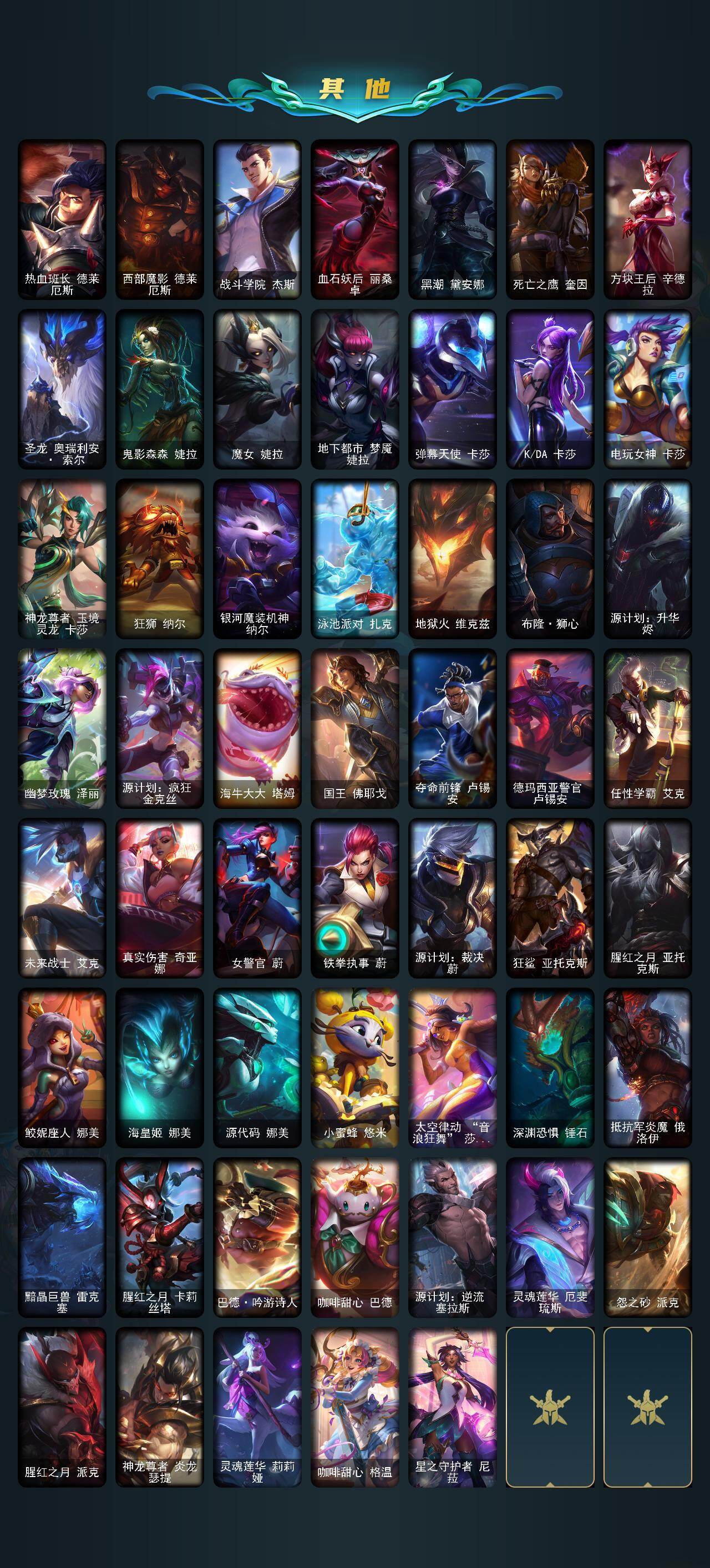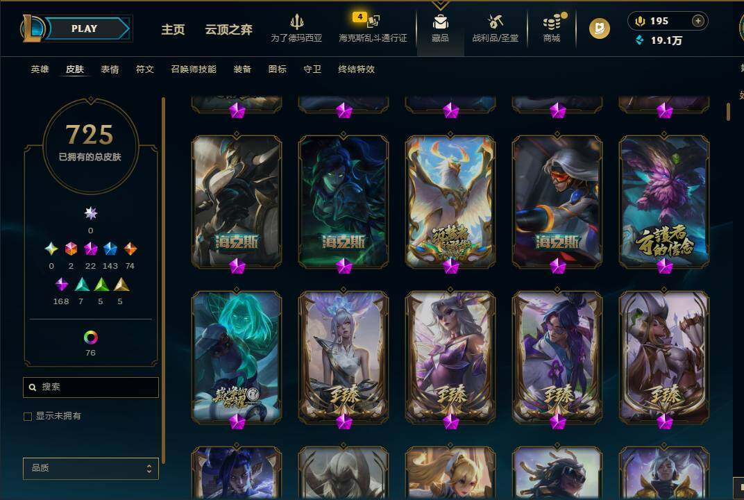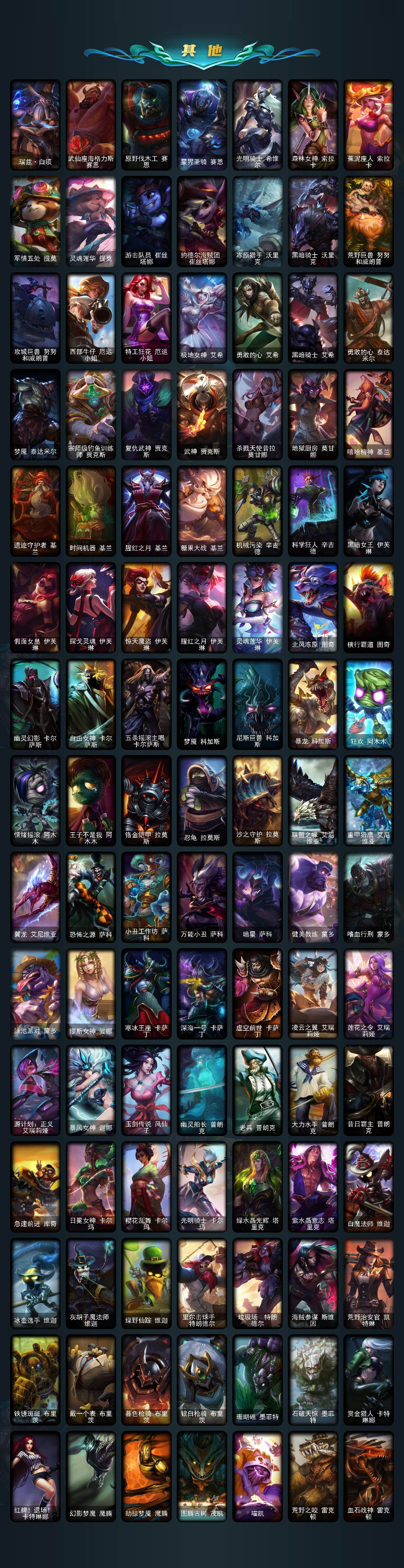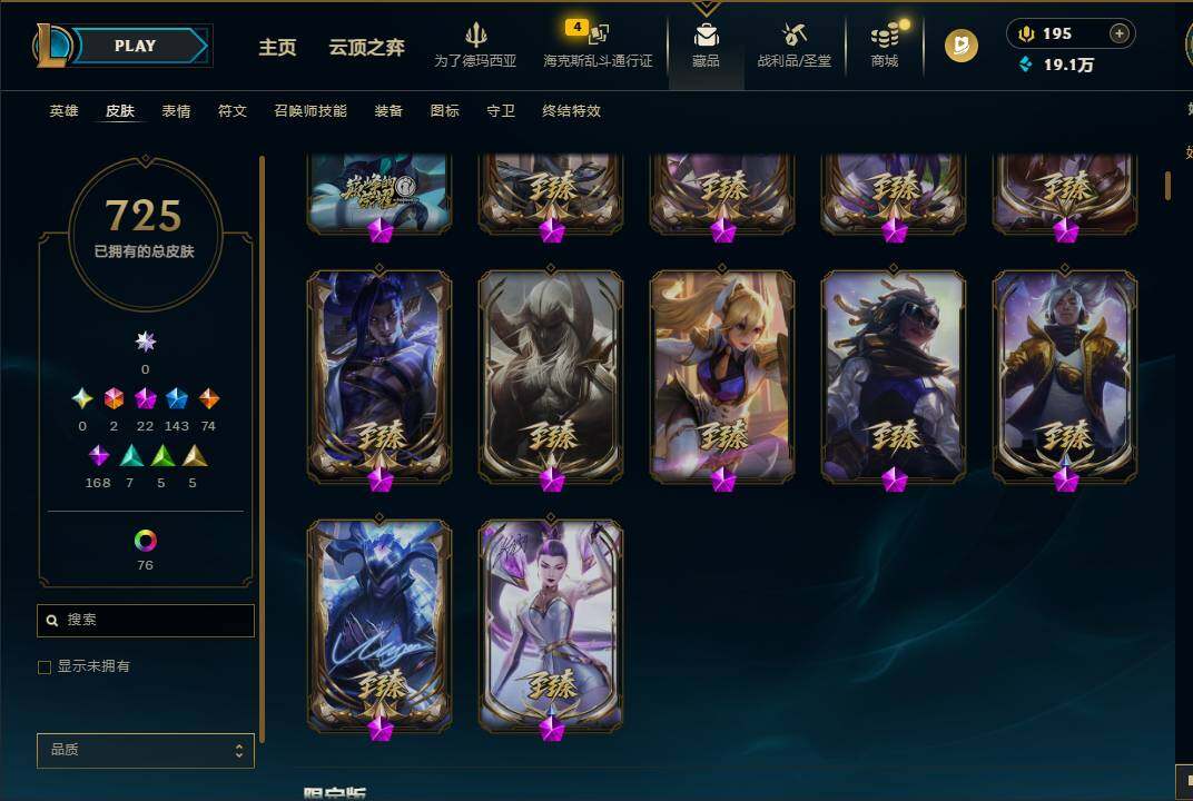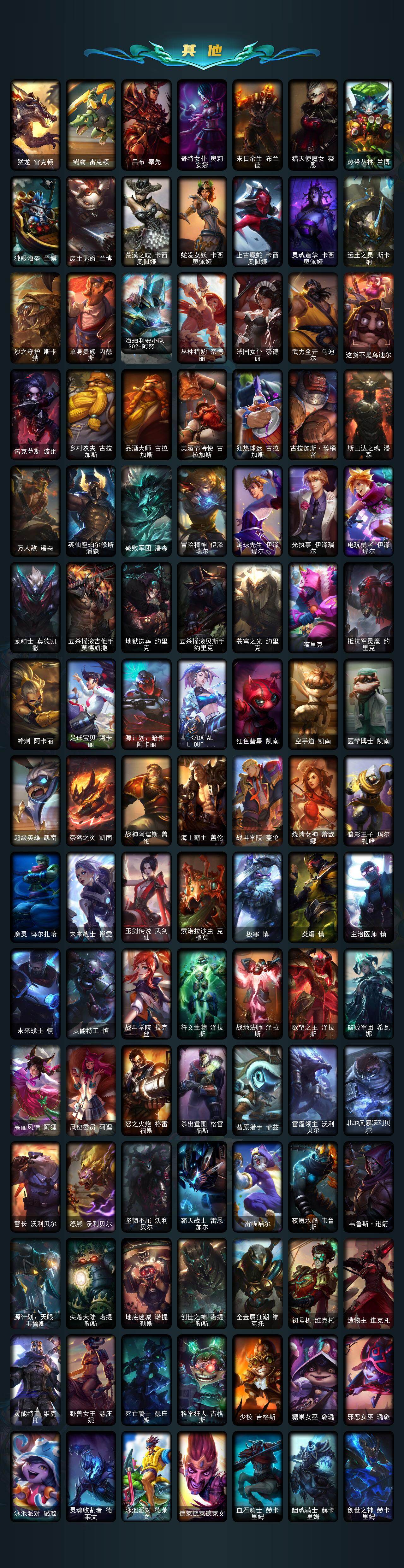 172英雄/725皮肤/2终极/22神话/143限定/3臻彩/10