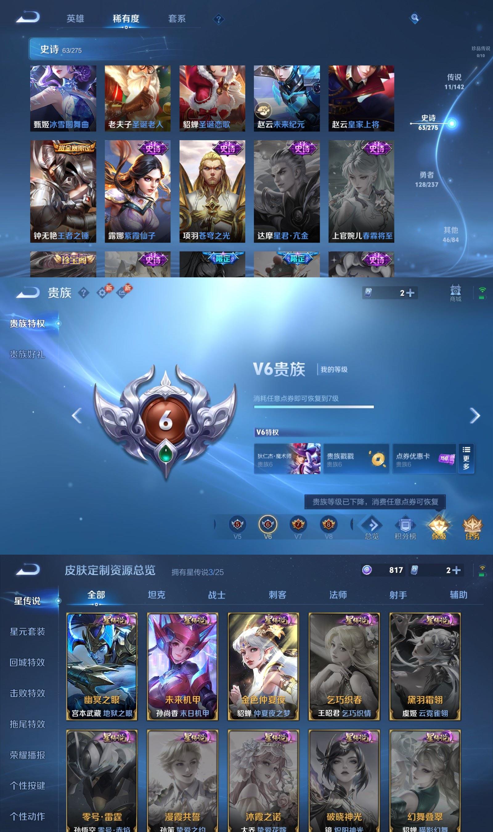 _V7-249皮肤11传说63史诗94限定-817紫星币278幸运值