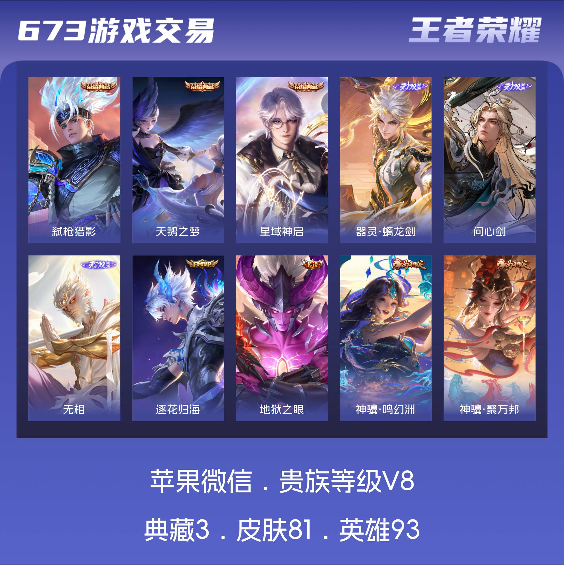 V8 皮肤81 英雄93 荣耀王者 荣耀典藏3 无双皮肤3 传说21 其他皮肤60