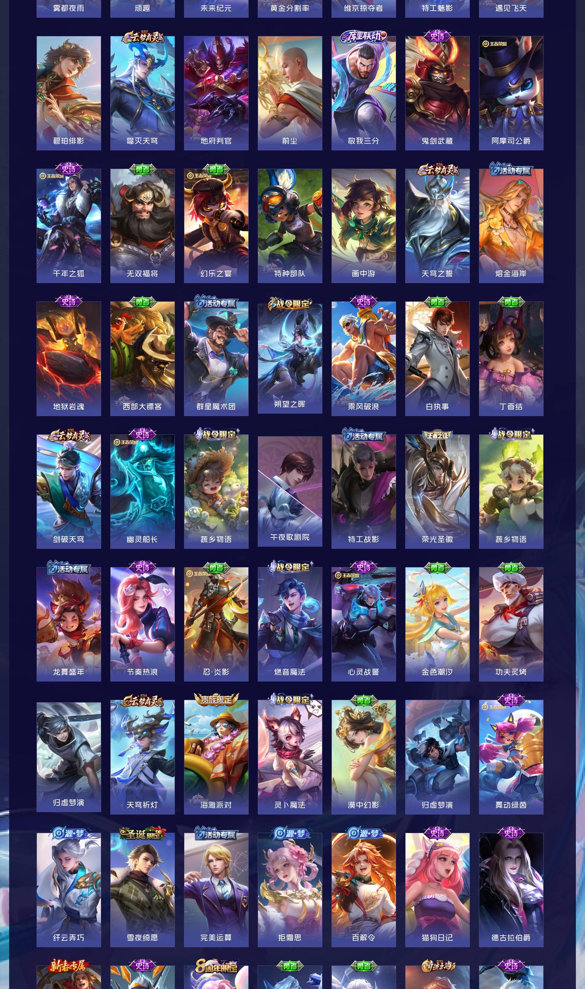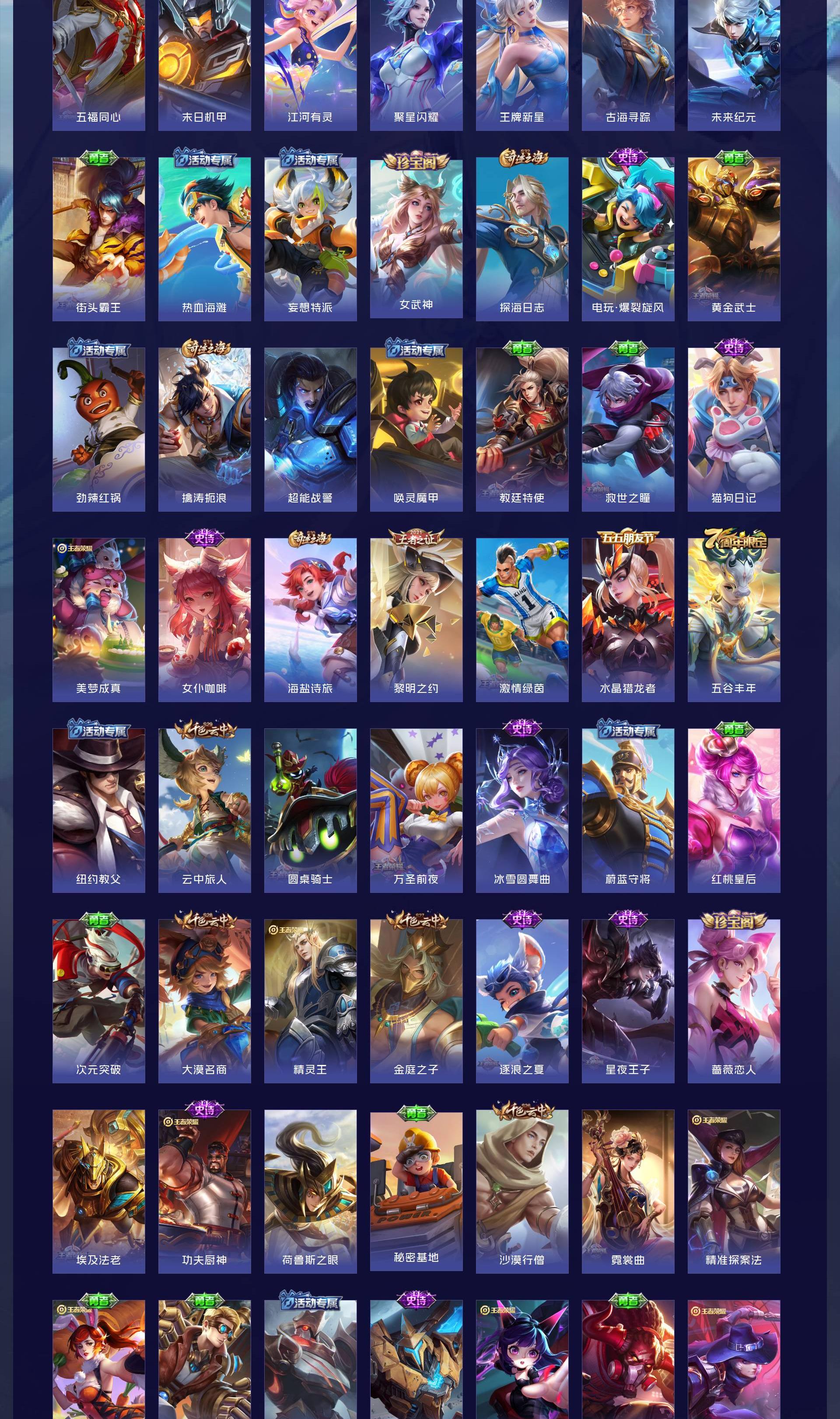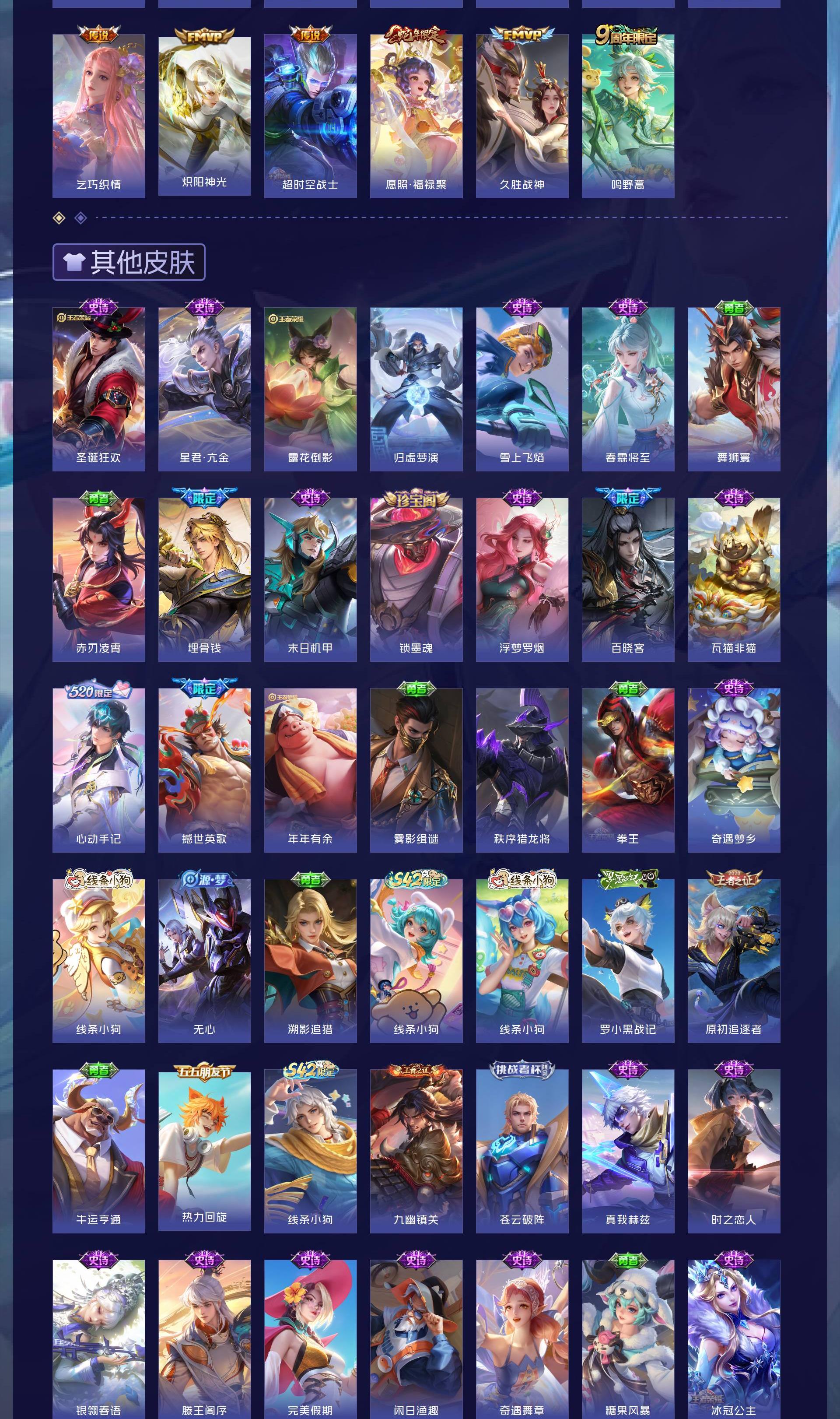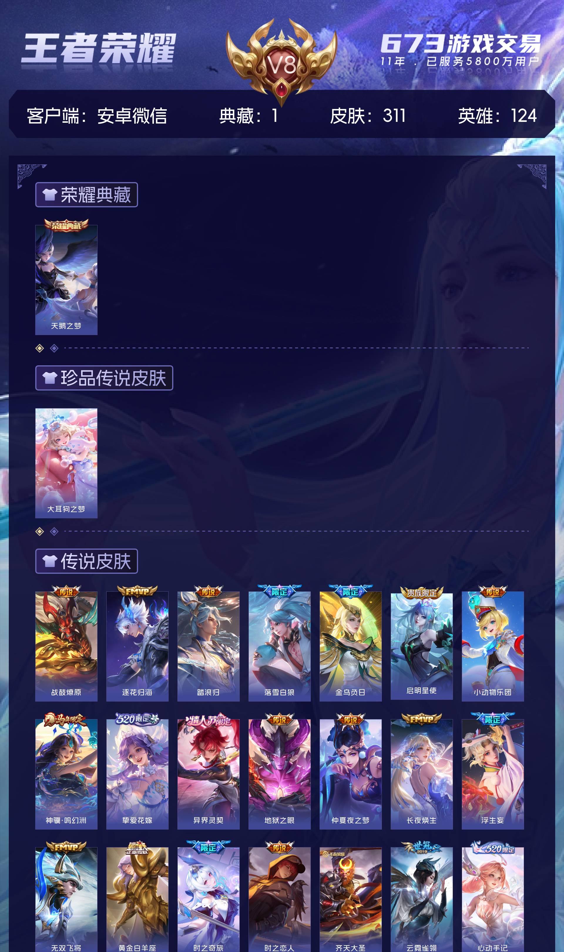 V8 皮肤311 英雄124 传奇王者 荣耀典藏1 珍品传说1 传说27 其他皮肤288