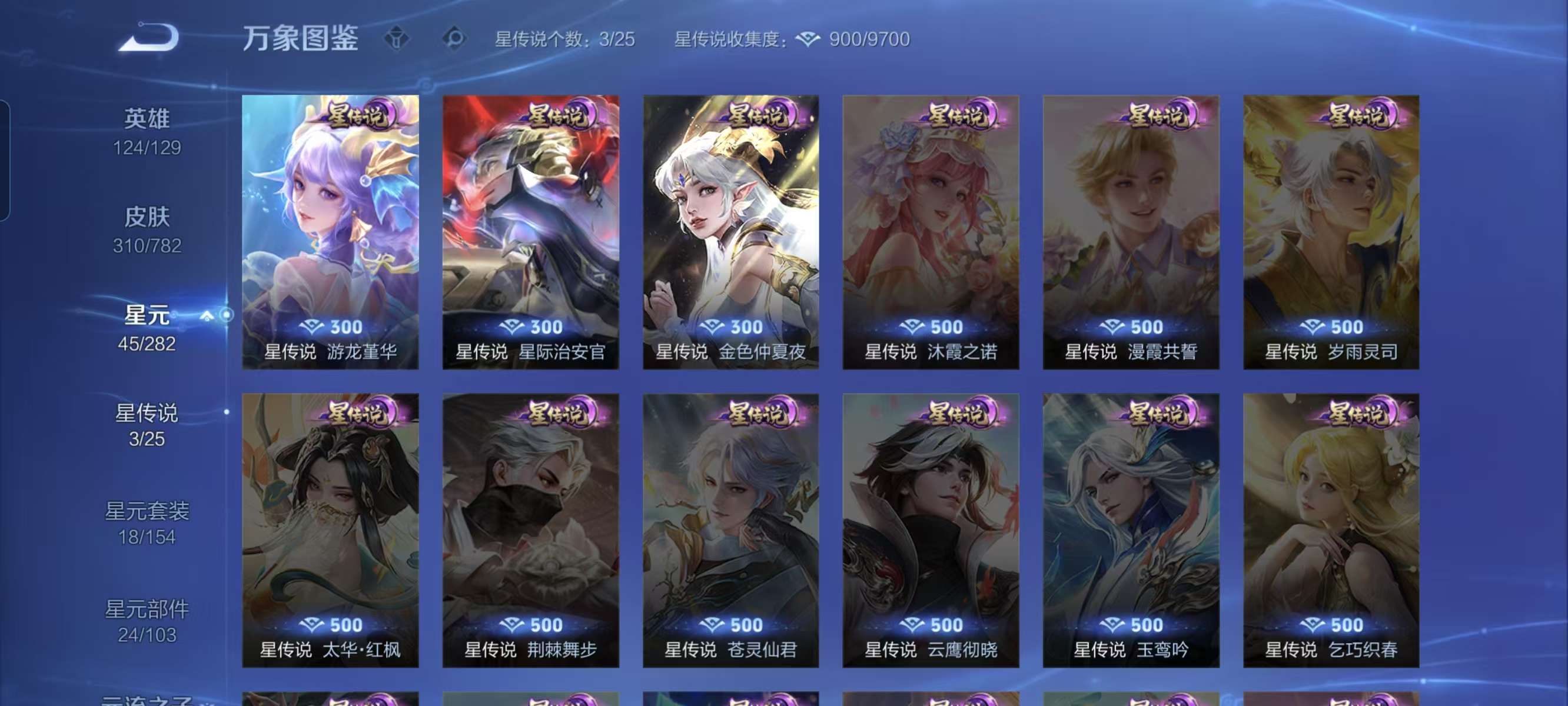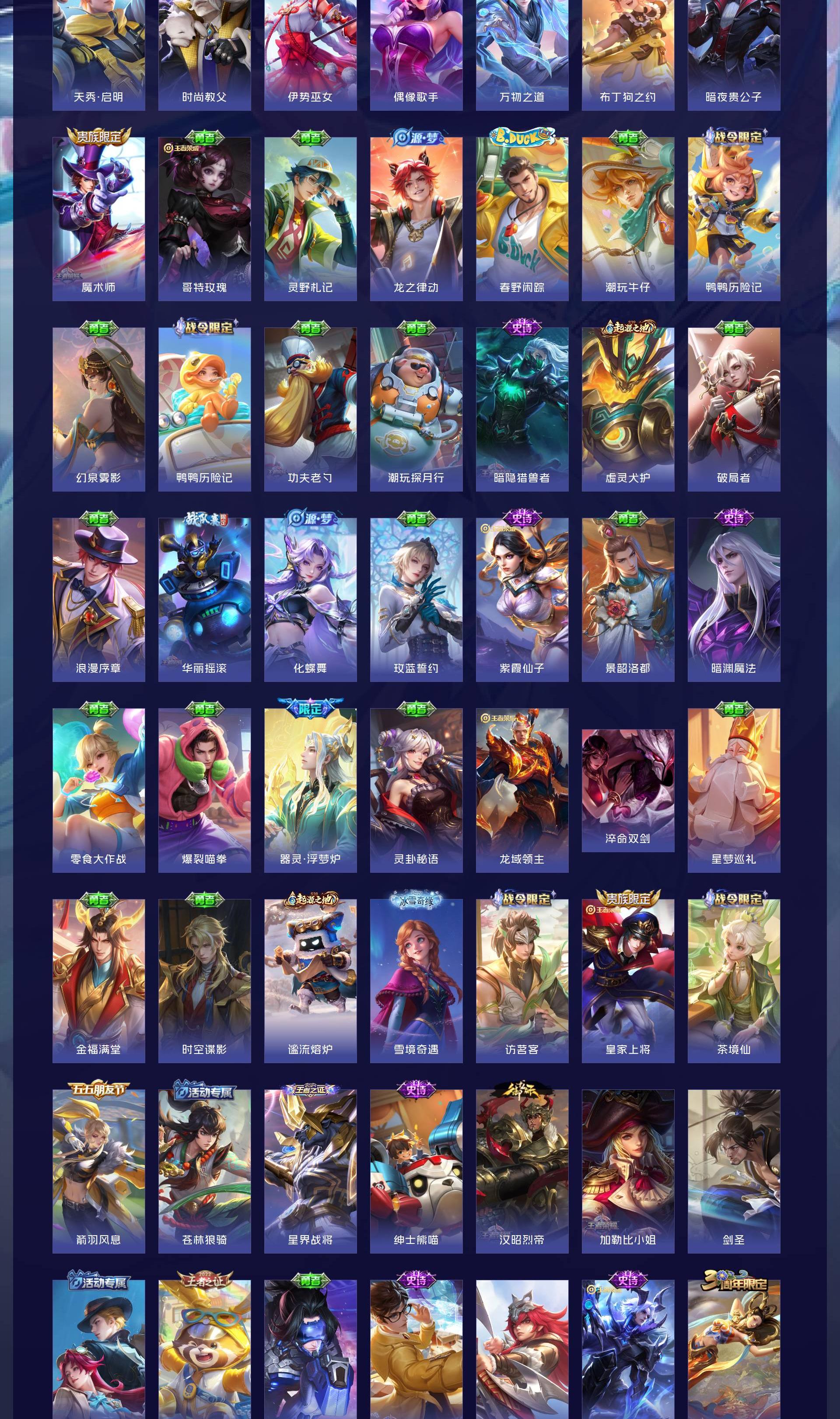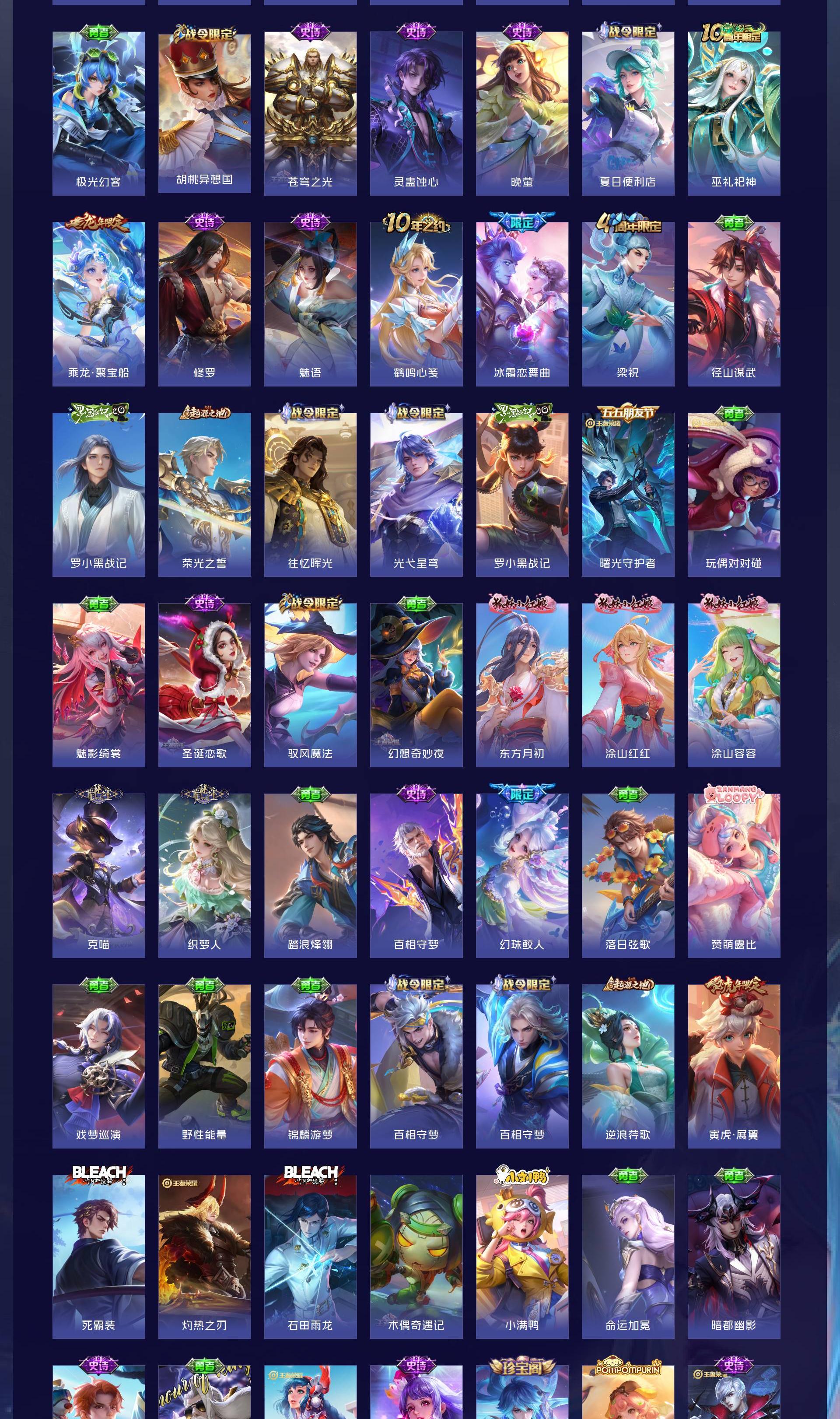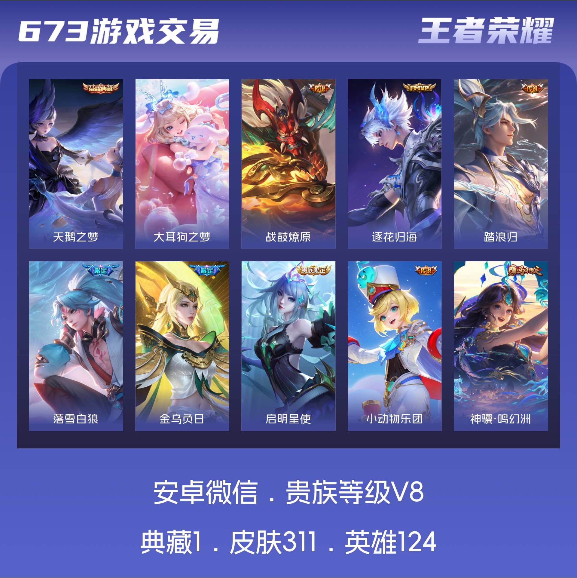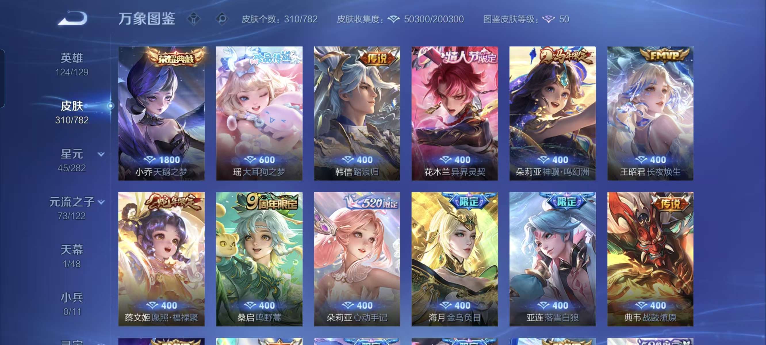 V8 皮肤311 英雄124 传奇王者 荣耀典藏1 珍品传说1 传说27 其他皮肤288