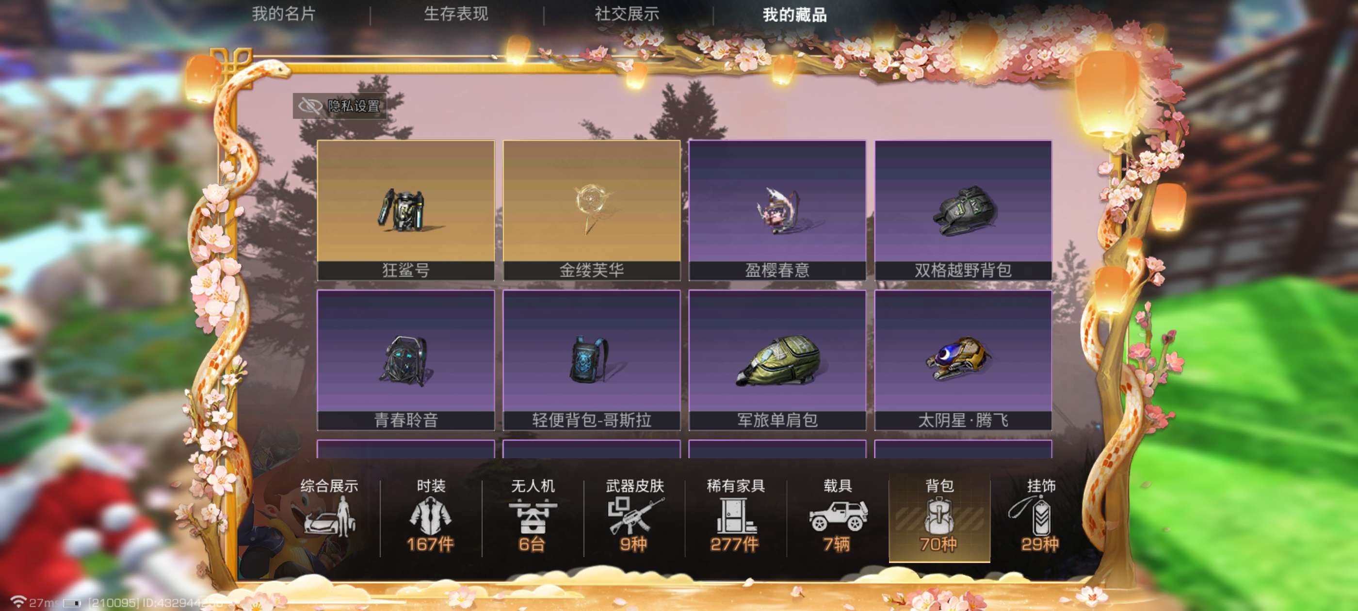 金色背包数量: