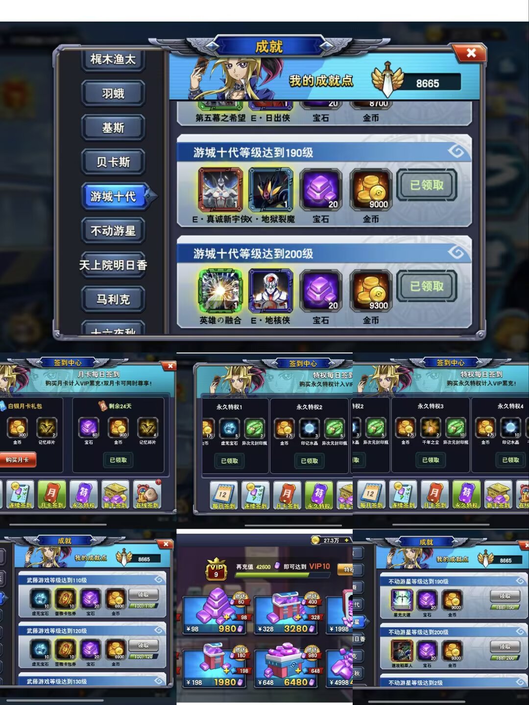 金杯23个成就8665,青眼银龙200级游城十代,金蛋虹光妖姬丽谭前拖3撤收3吕布3炎帝,古英雄都市