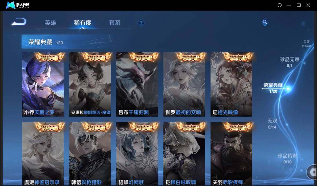【W5956】安卓QQ-有二次-贵7-128英雄-217皮肤-1典藏-7传说-