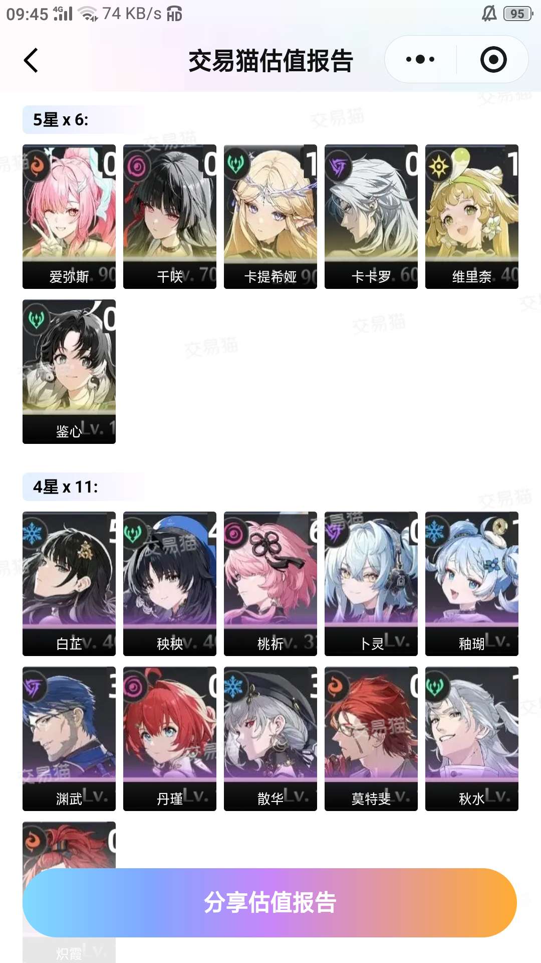 五星角色数: