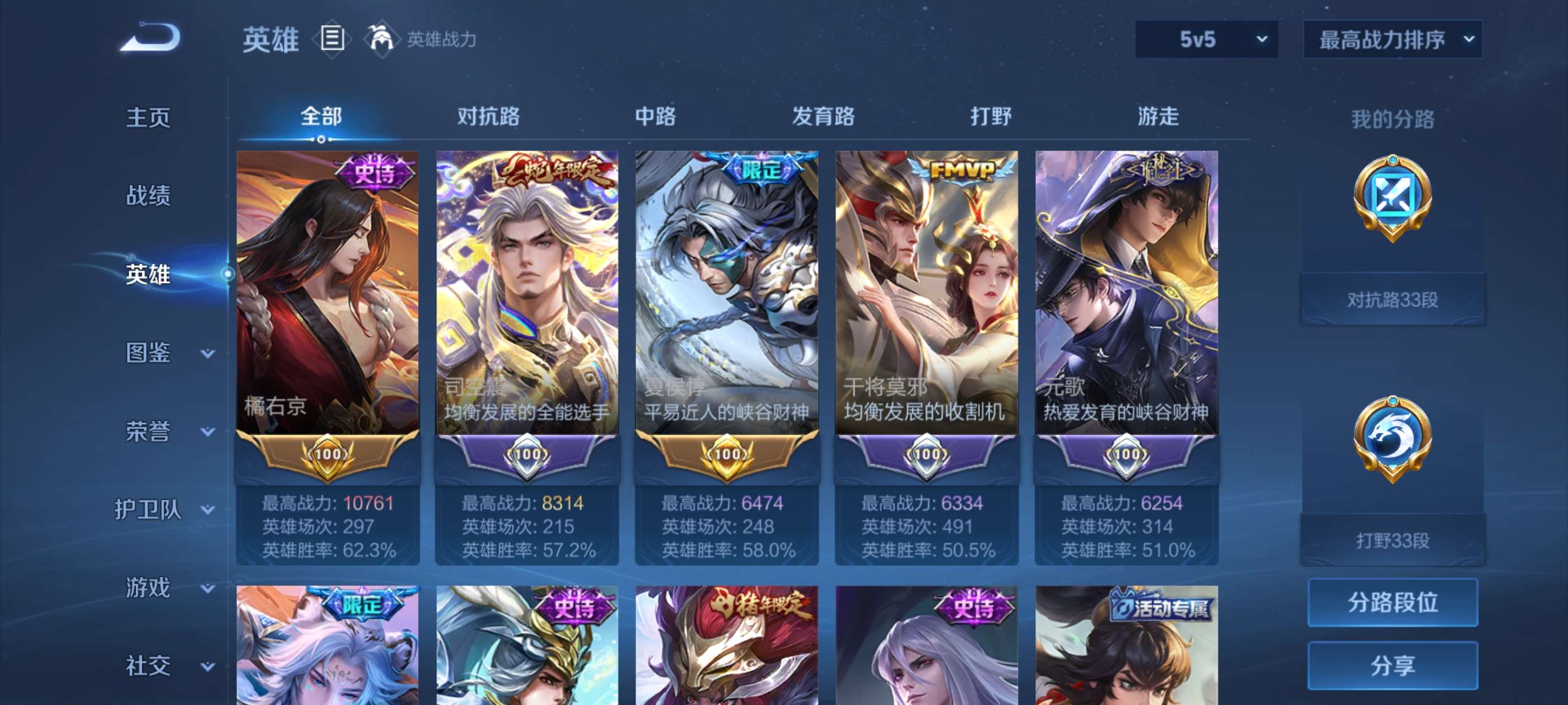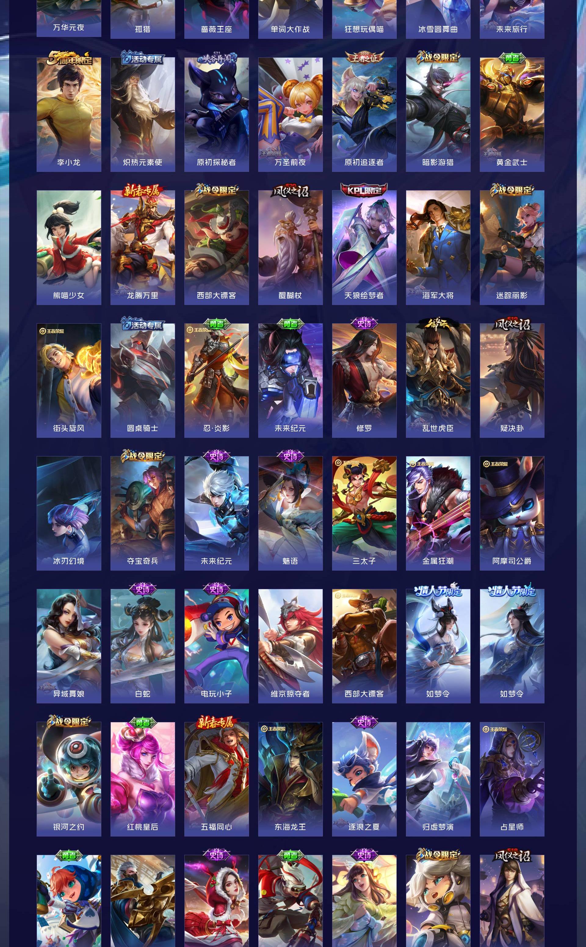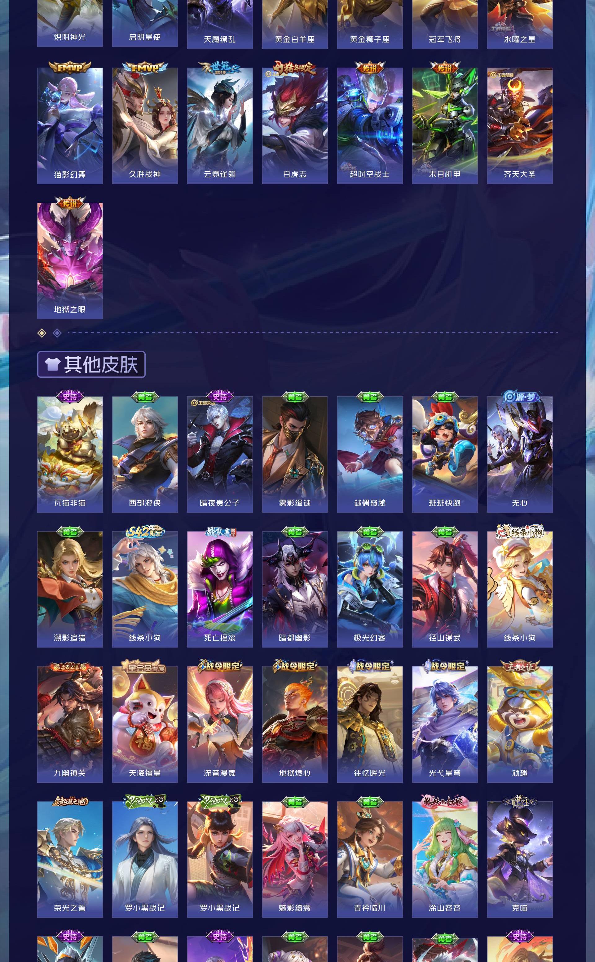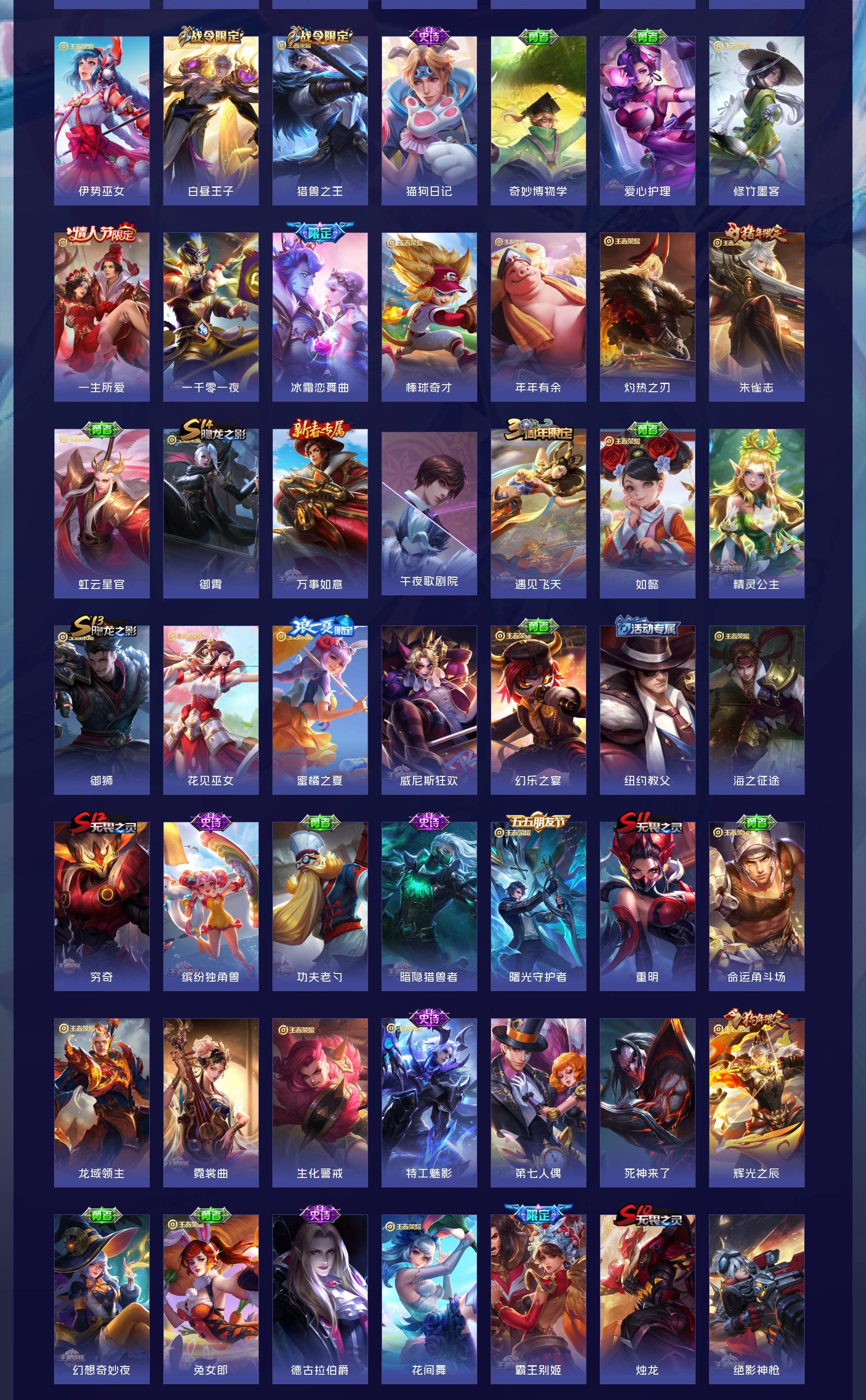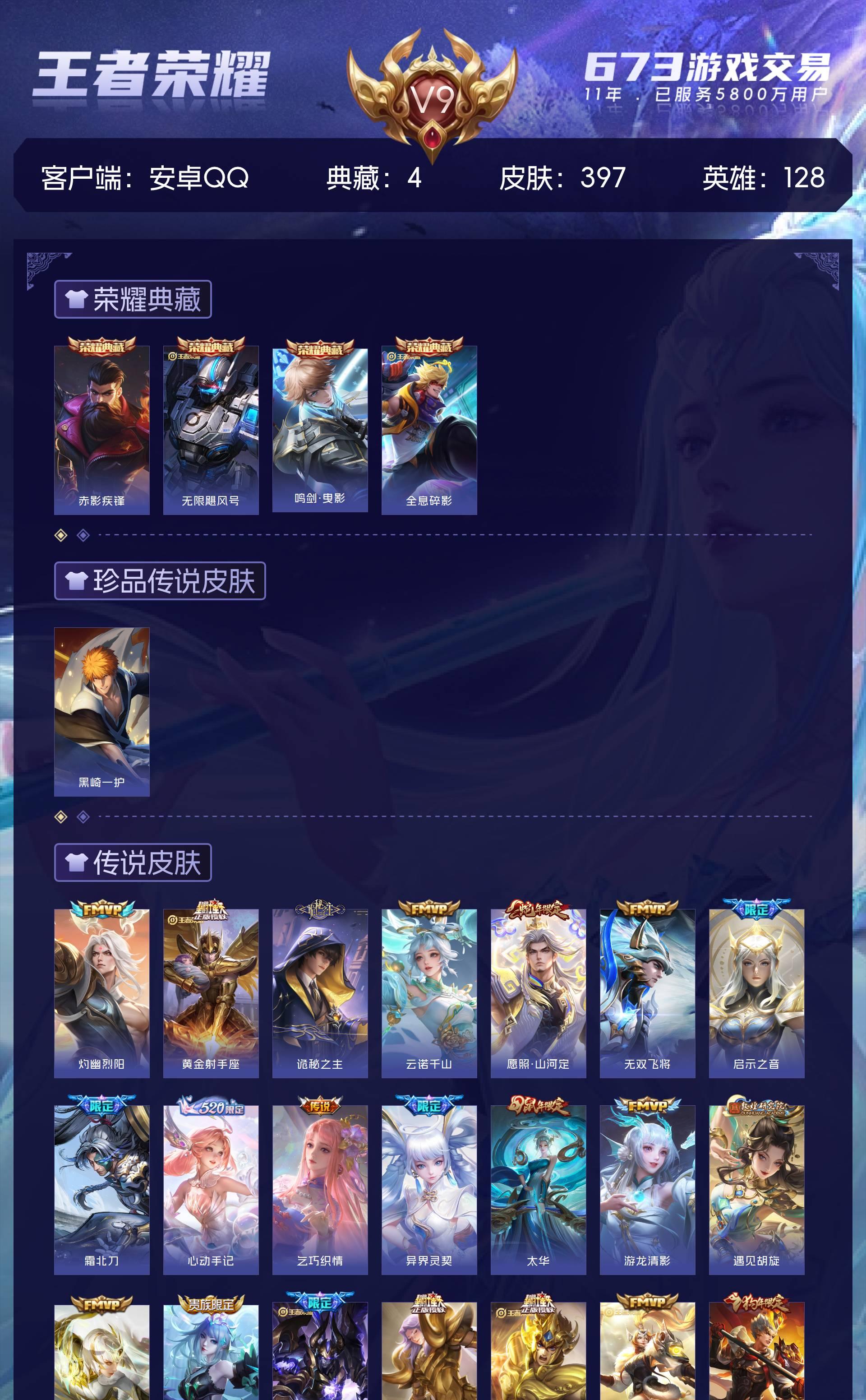 V9 皮肤397 英雄128 至尊星耀 荣耀典藏4 珍品传说1 星传说3 传说29 其他皮肤370