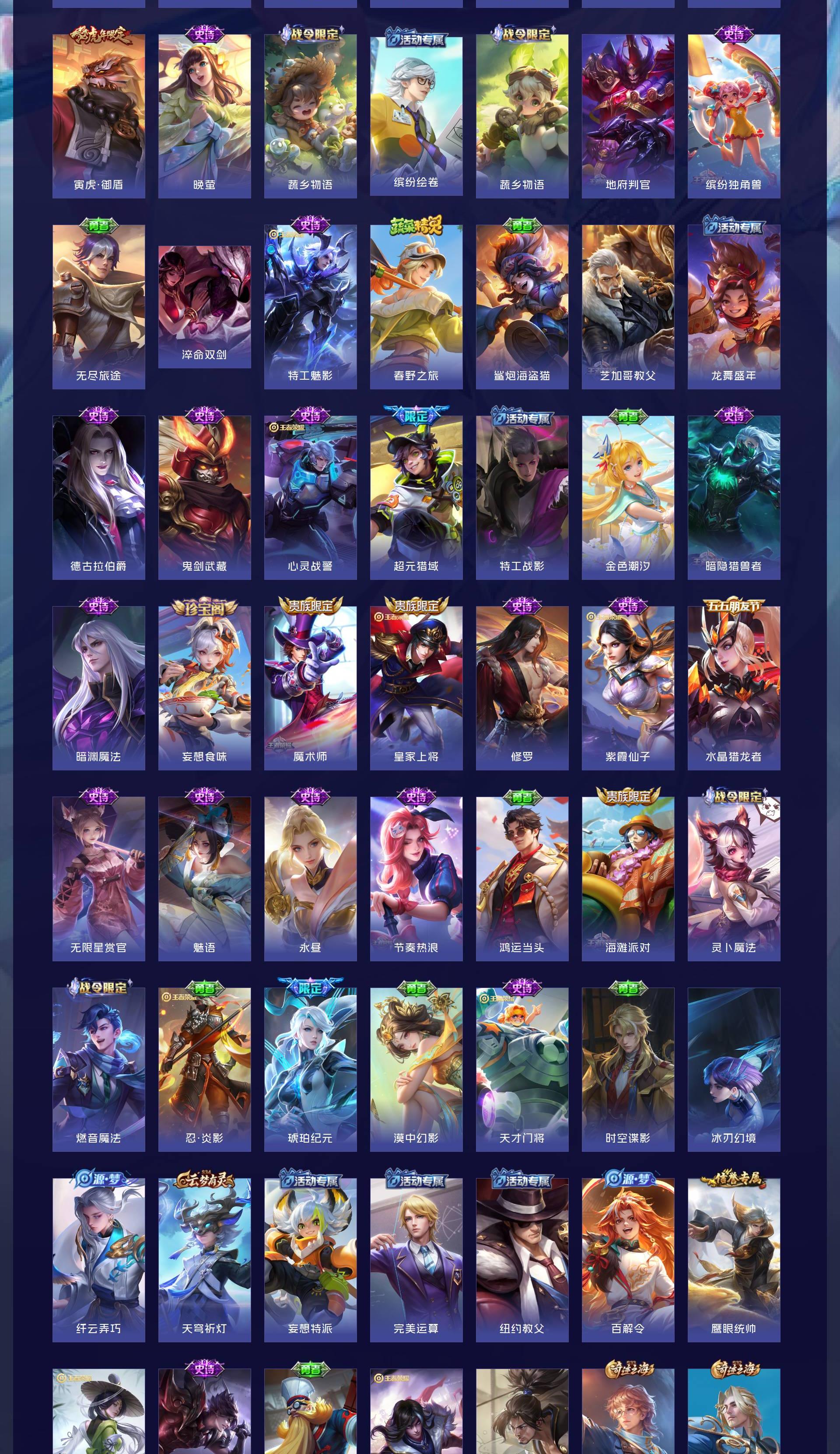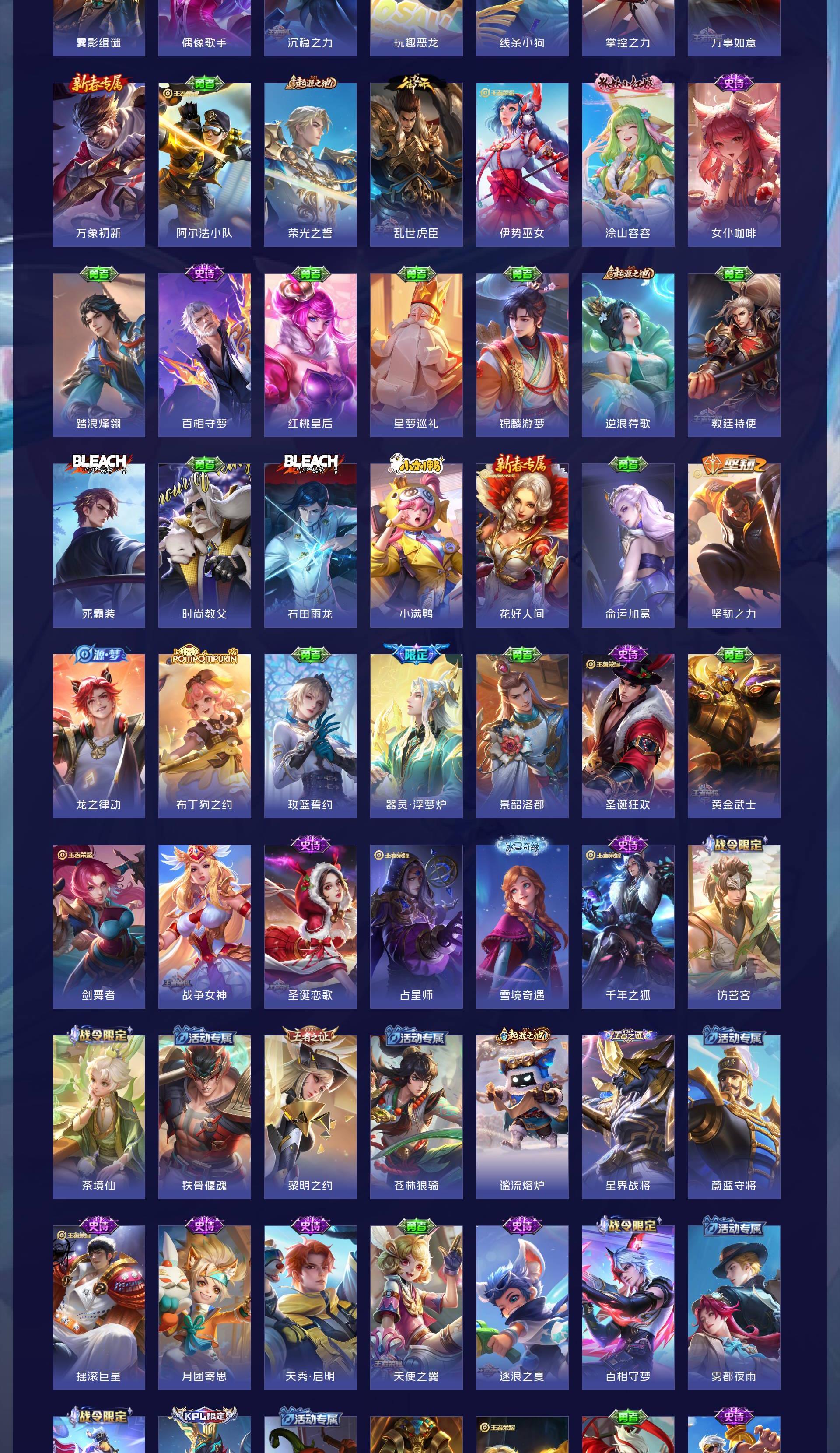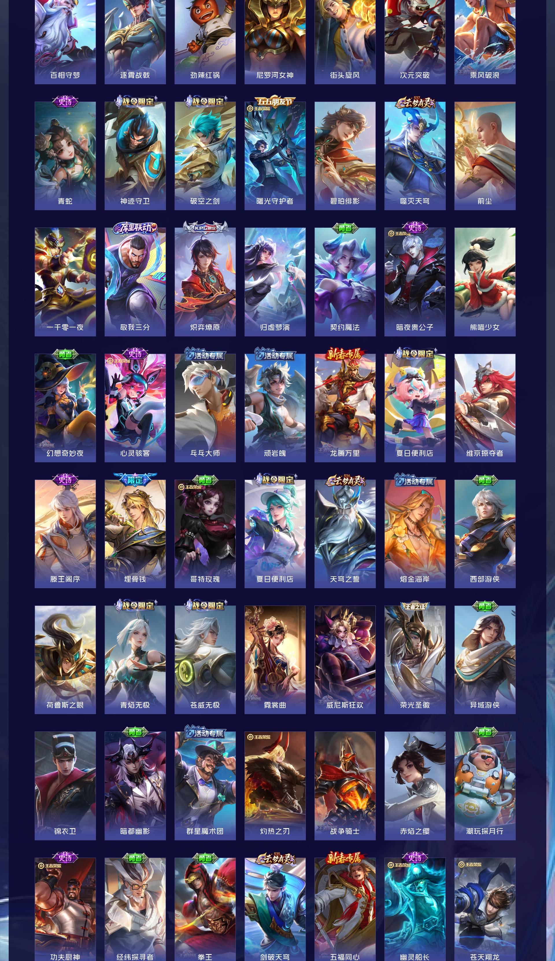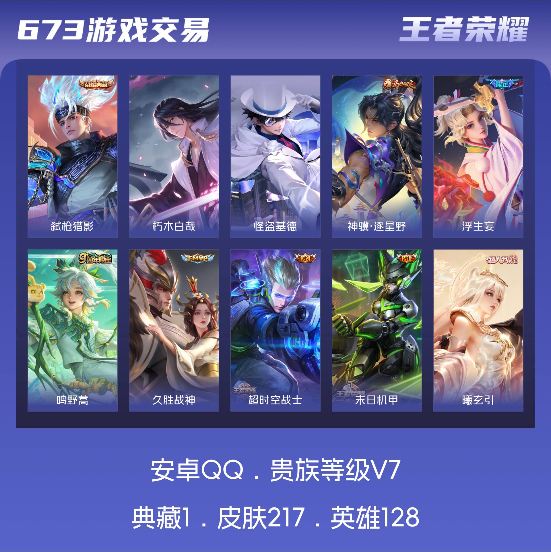 V7 皮肤217 英雄128 至尊星耀 荣耀典藏1 珍品传说2 星传说2 传说11 其他皮肤210