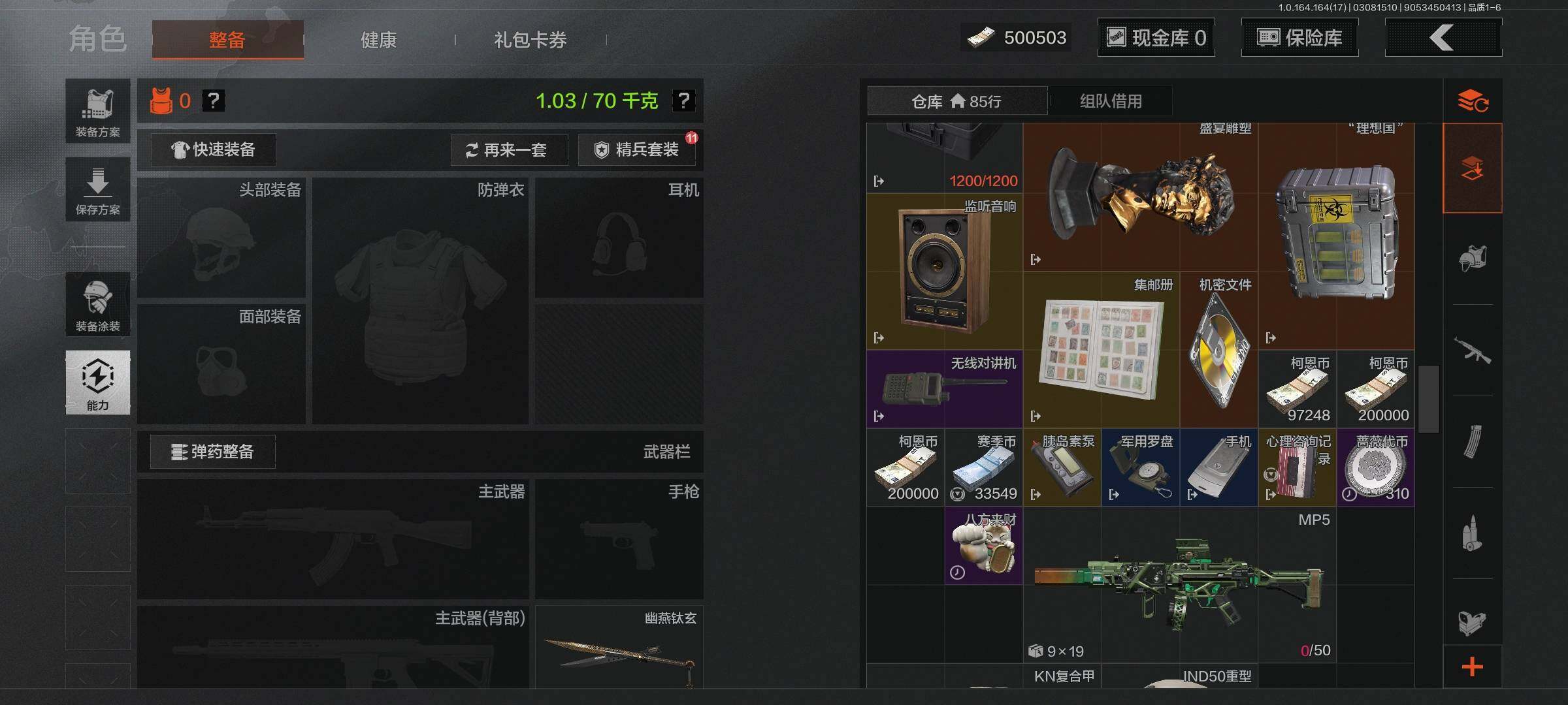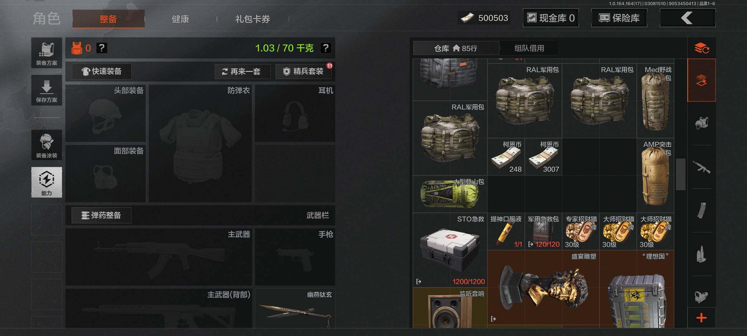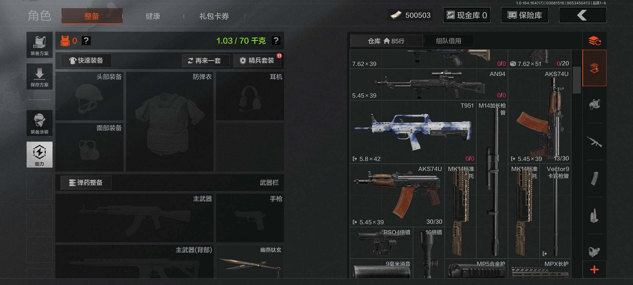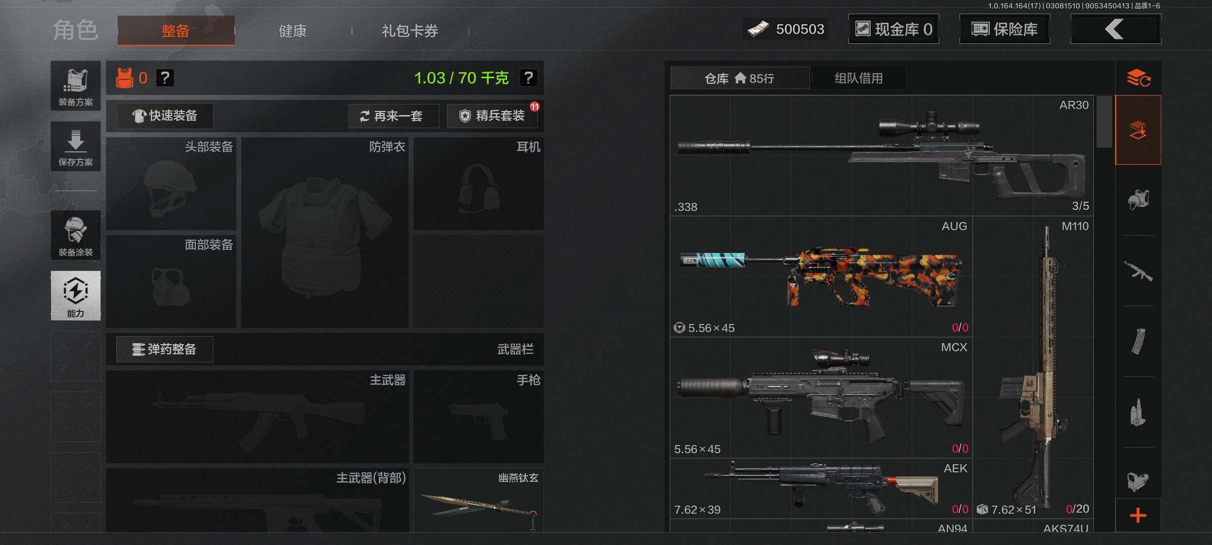 等级:30/段位:王牌/仓库价值(百万):9.3/柯恩币:500503/幽燕钛玄