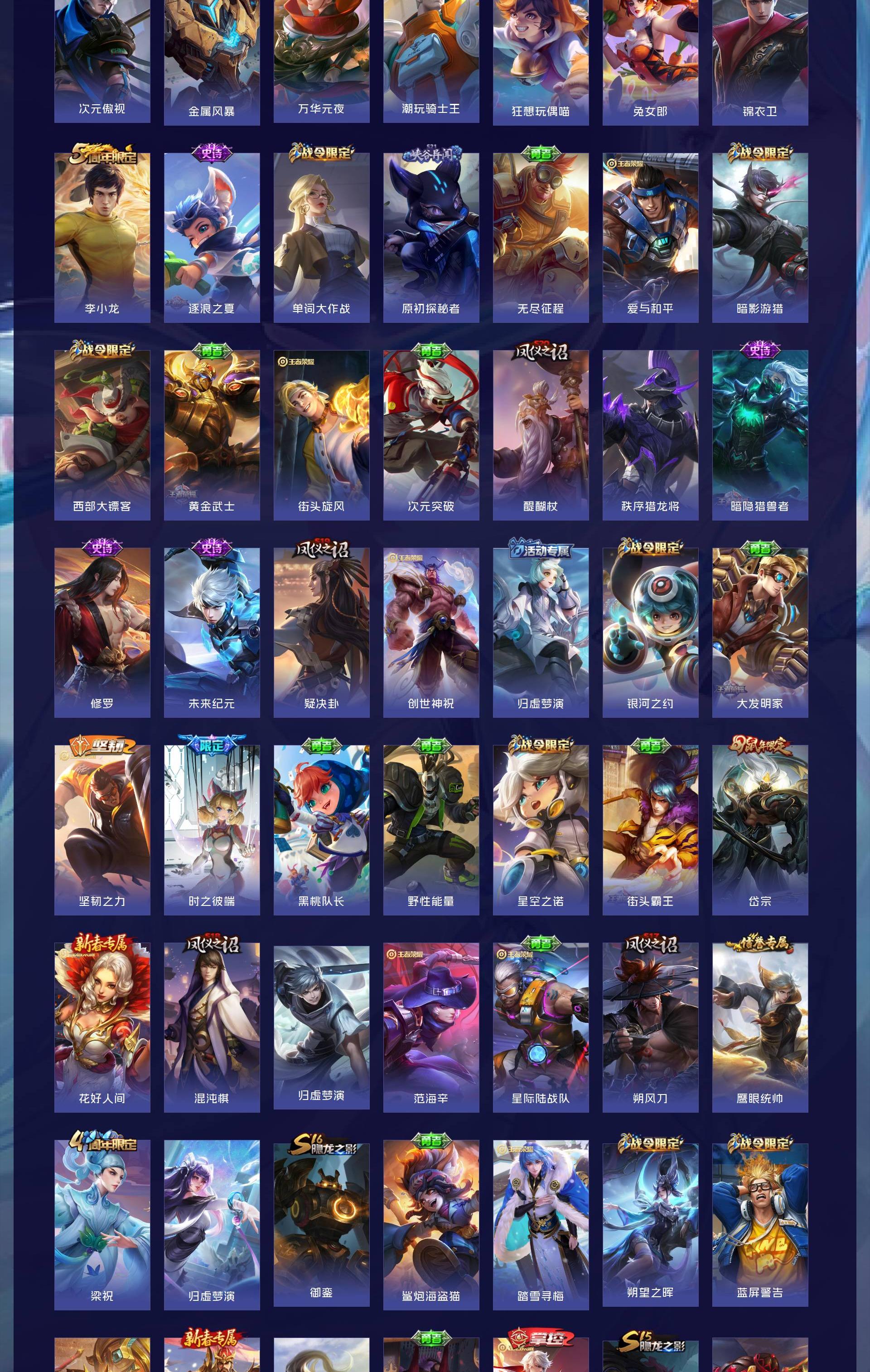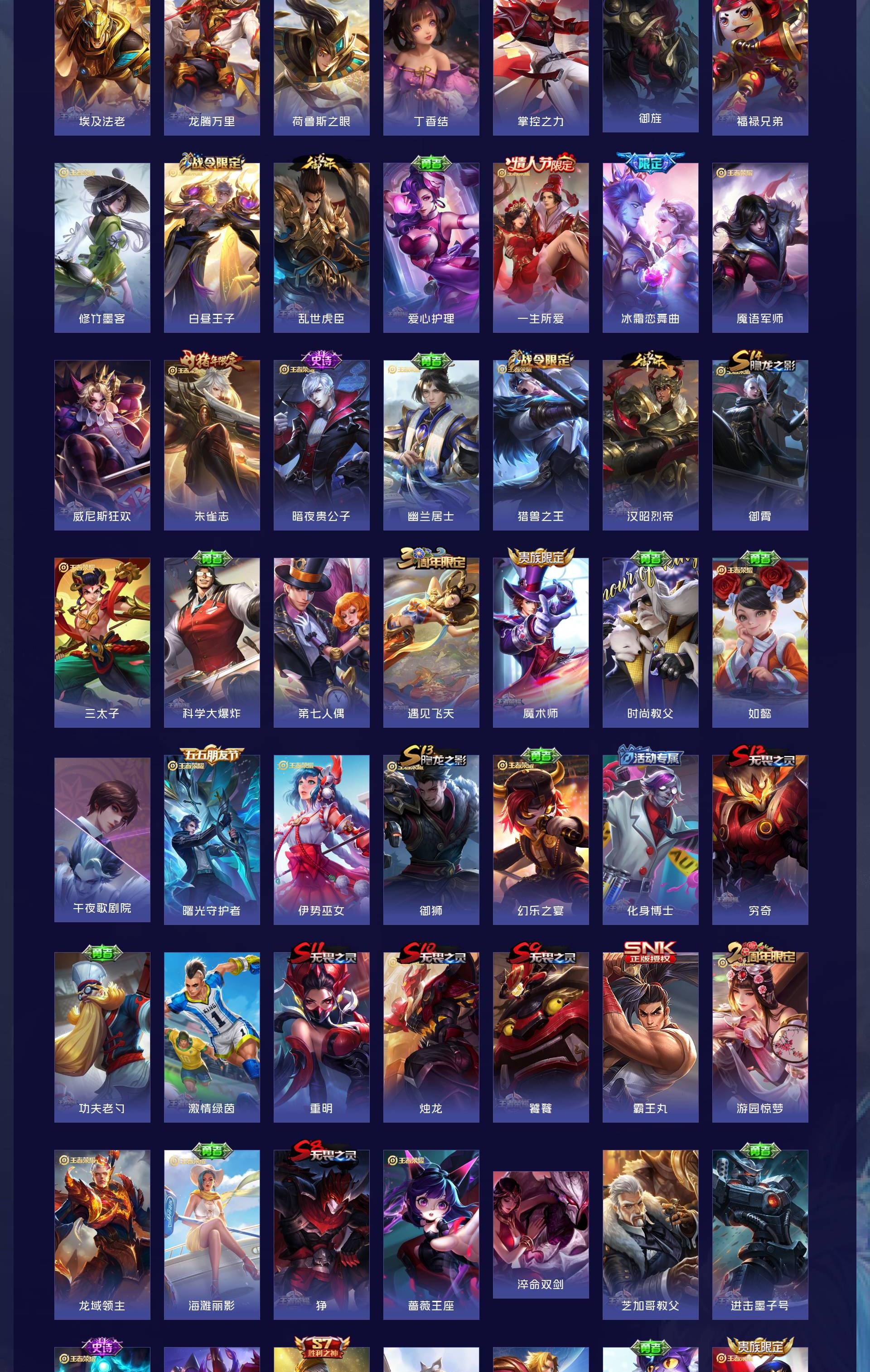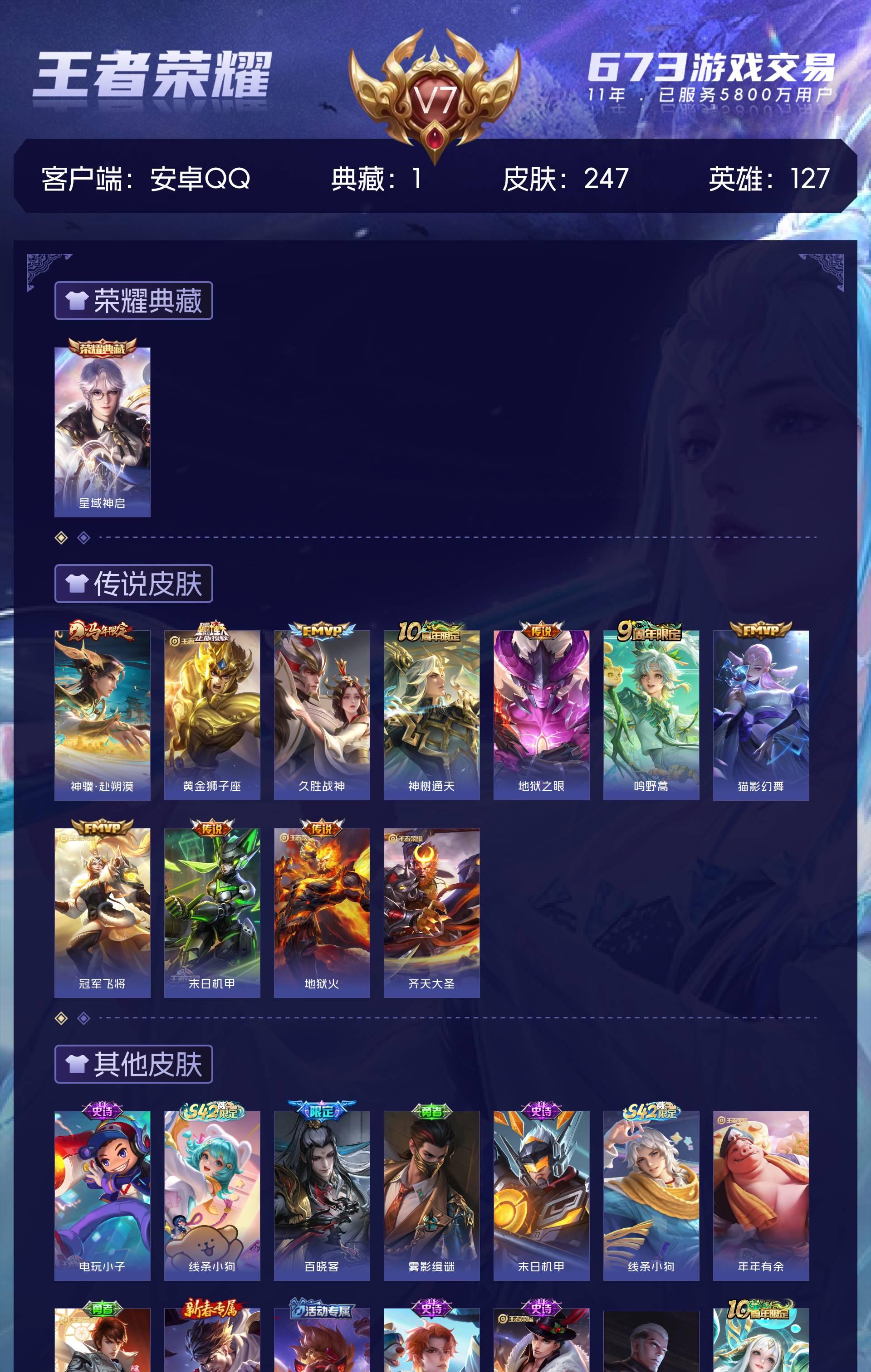 V7 皮肤247 英雄127 至尊星耀 荣耀典藏1 星传说3 传说11 其他皮肤242