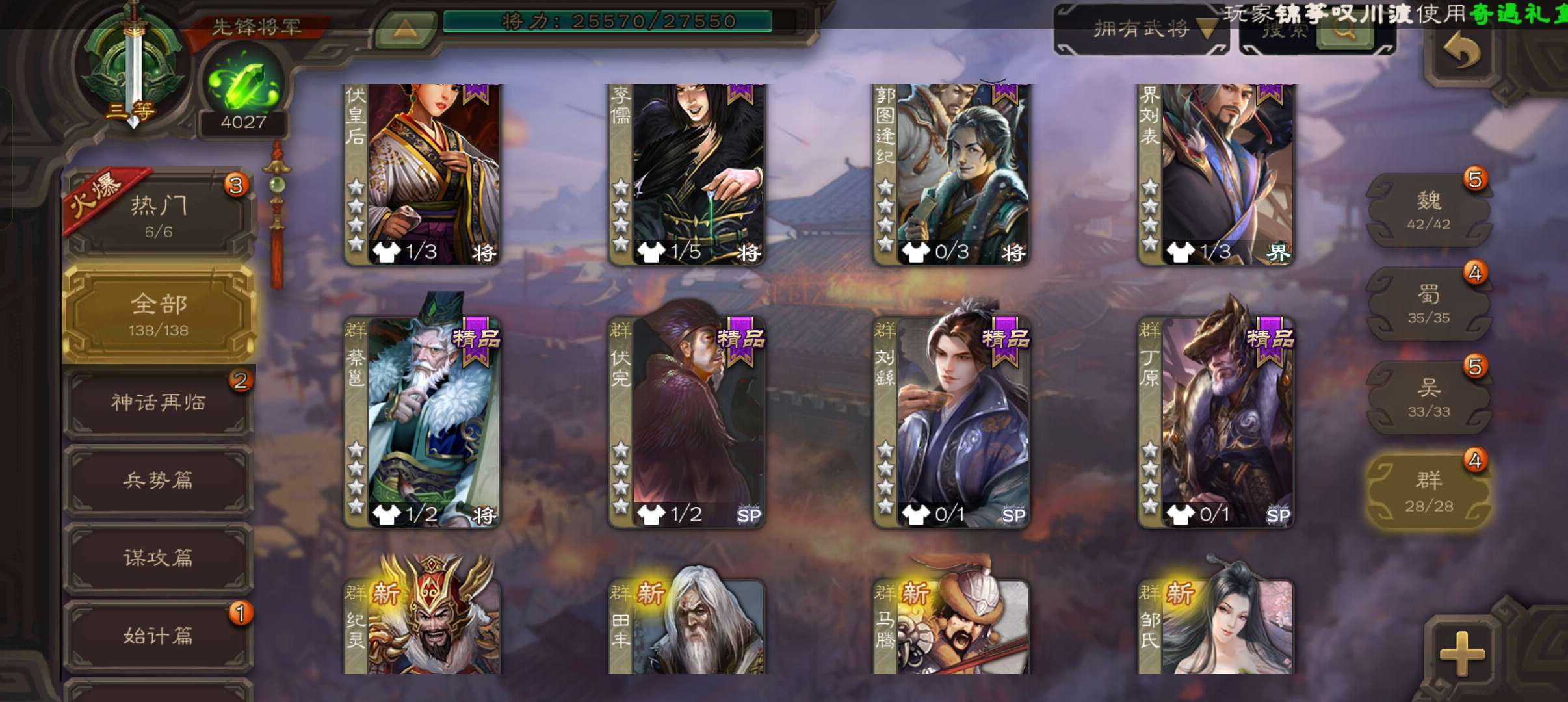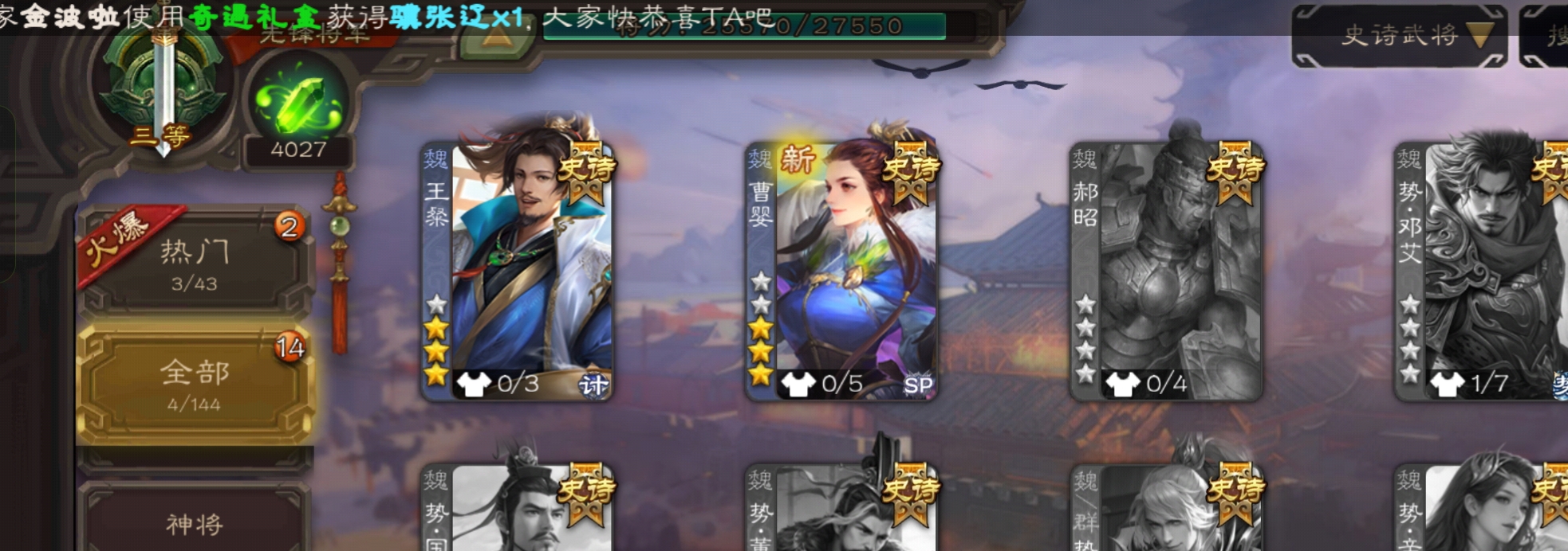 史诗武将数量:
