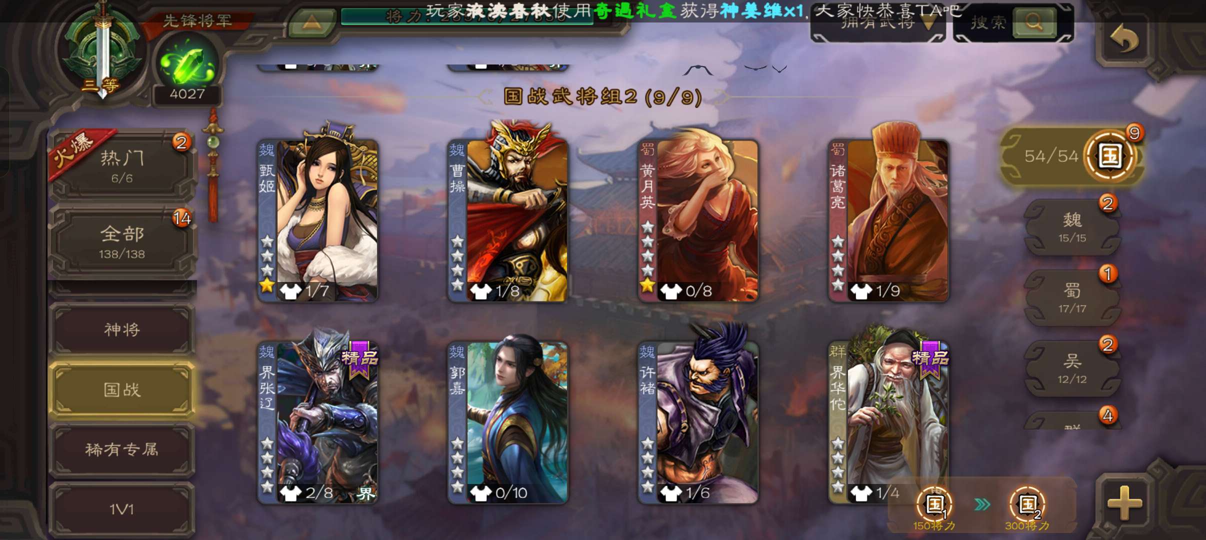 4千魂4万毛6万豆,大宝界徐盛神赵云曹婴王粲4史诗先锋,甘夫人崔琰界吕布动李儒138将