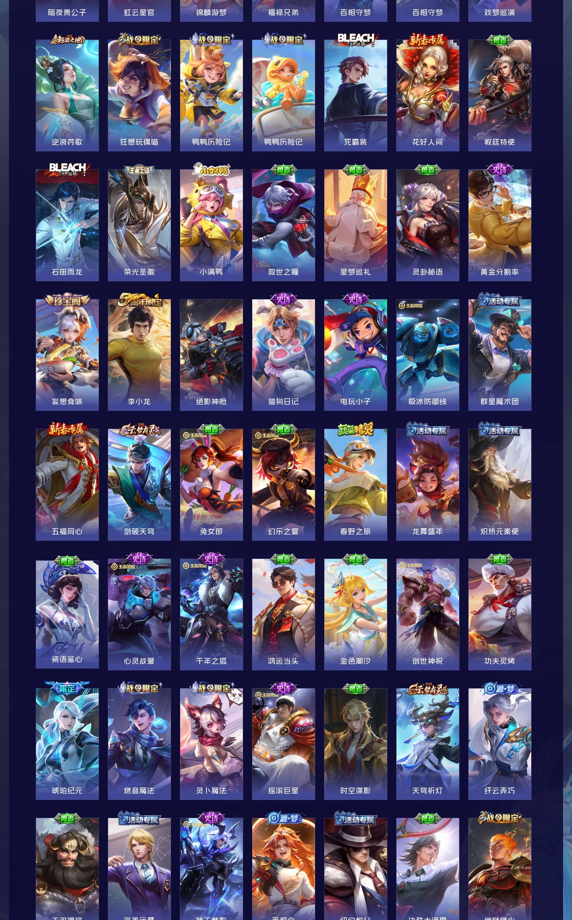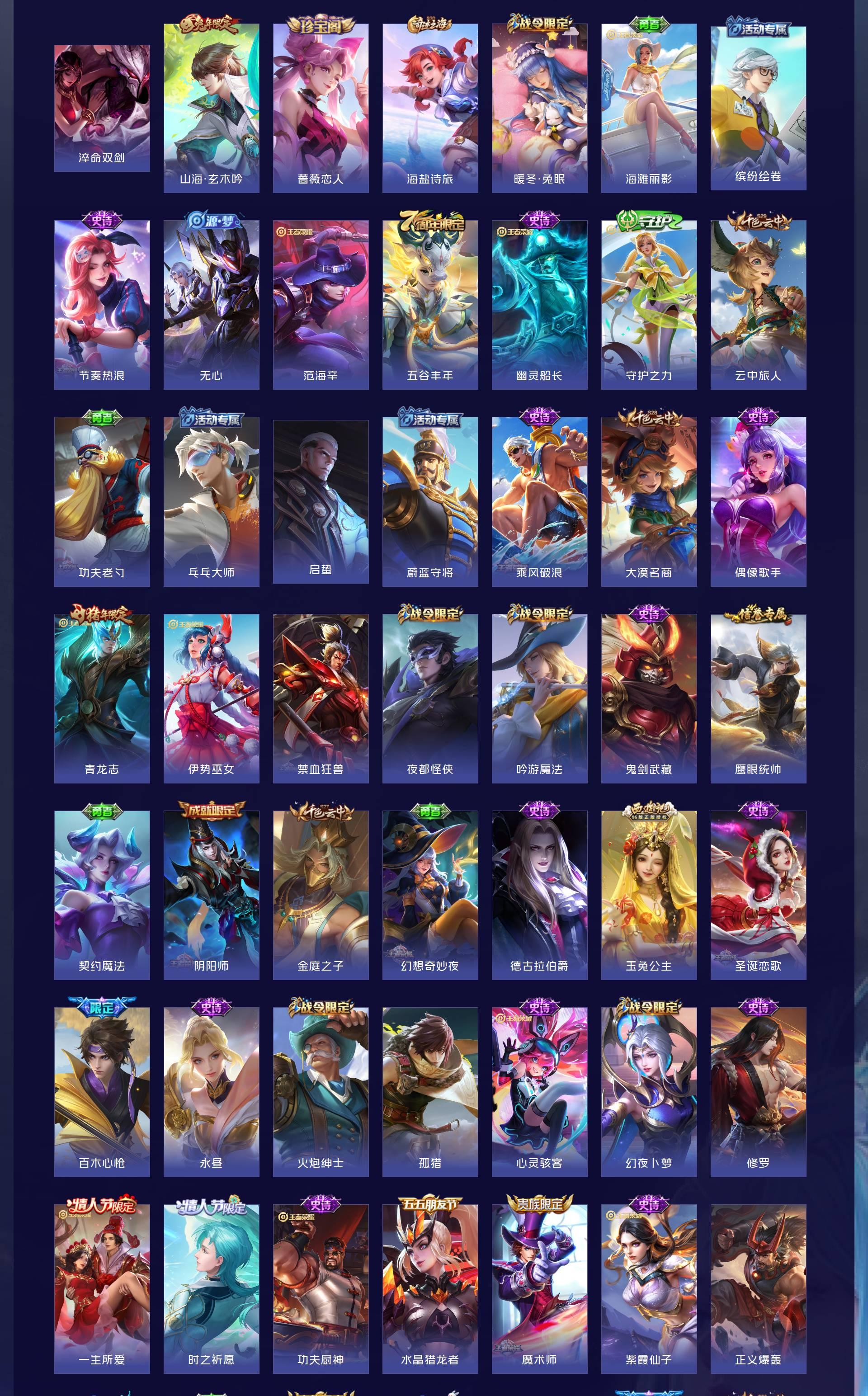 V8 皮肤237 英雄127 至尊星耀 荣耀典藏1 无双皮肤3 珍品传说3 传说23 其他皮肤214
