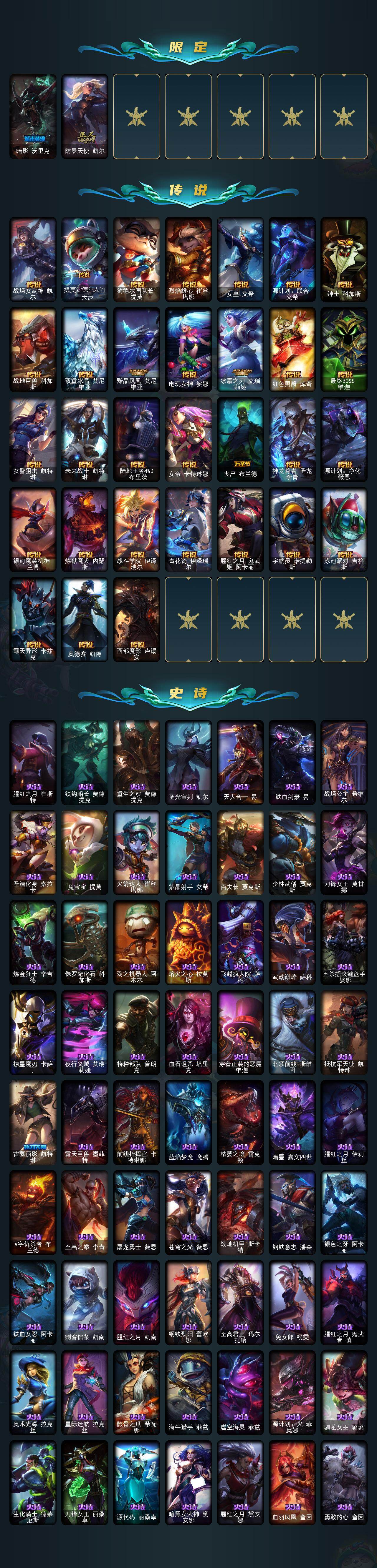 未定级段位-168英雄-276皮肤-120炫彩-1终极-23神话-29限定-31传说-80史诗