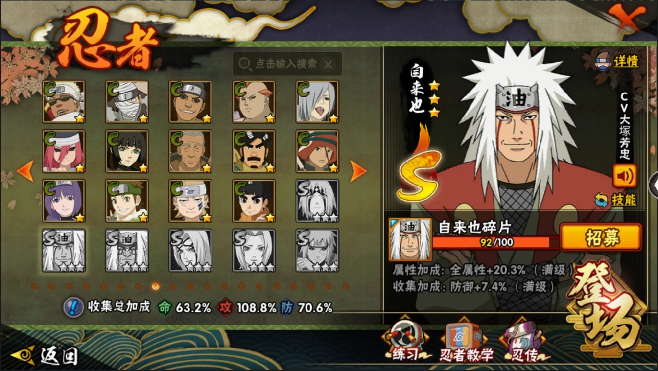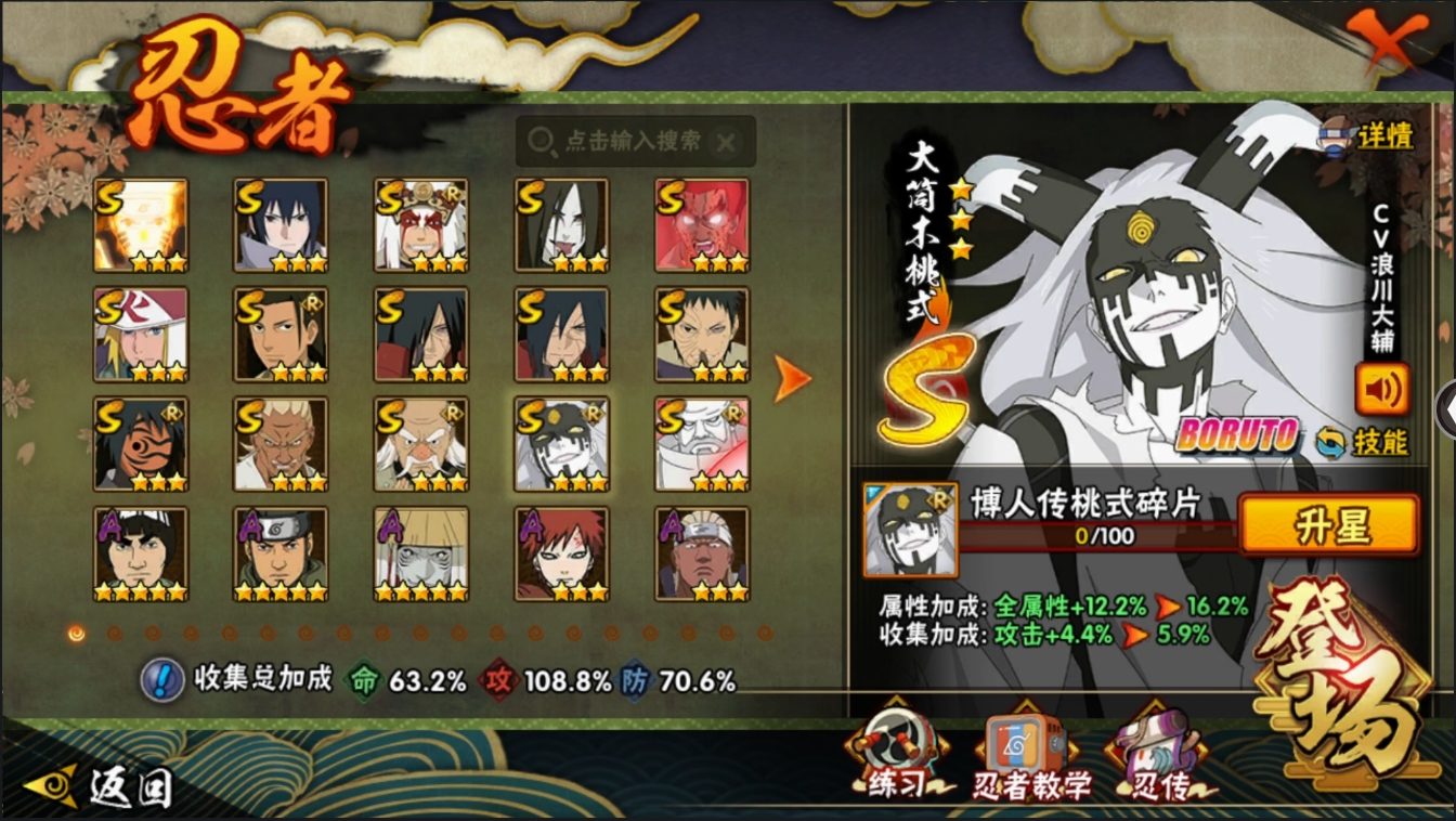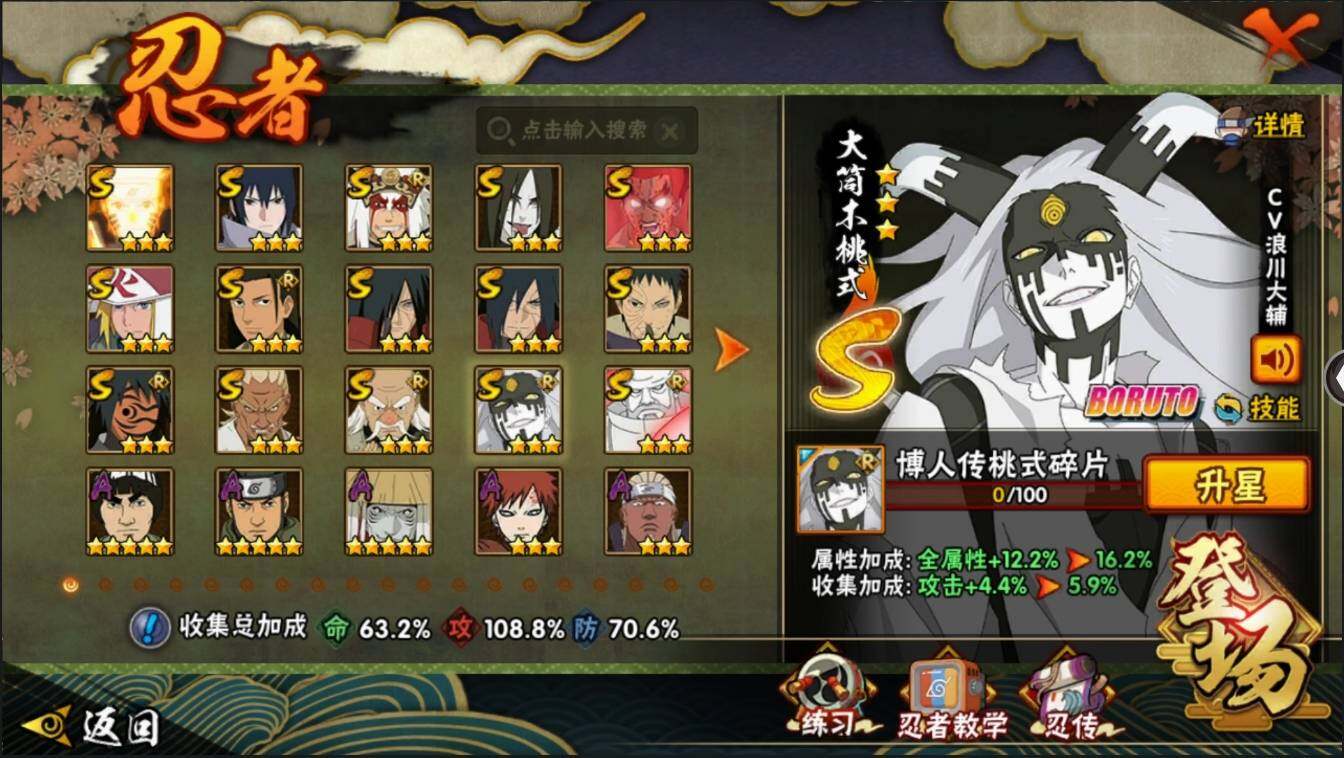 【编号14269可秒换绑】【店长推荐精品号】15S级忍者数-25A级忍者数【S级忍者】:宇智波斑「秽土转生」(3星),宇智波斑「秽土转生·解」(3星),大野木「忍界大战」(3星),宇智波带土「忍界大战」(3星),艾「忍界大战」(3星),千手柱间「木叶创立」(3星),自来也「舞之豪杰」(3星),大蛇丸(3星),波风水门(3星),神秘面具男「红夜之刃」(3星),漩涡鸣人「九喇嘛连结」(3星),迈特凯「死门」(3星),宇智波佐助「永恒万花筒」(3星),大筒木金式(3星),大筒木桃式(3星)【A级忍者】