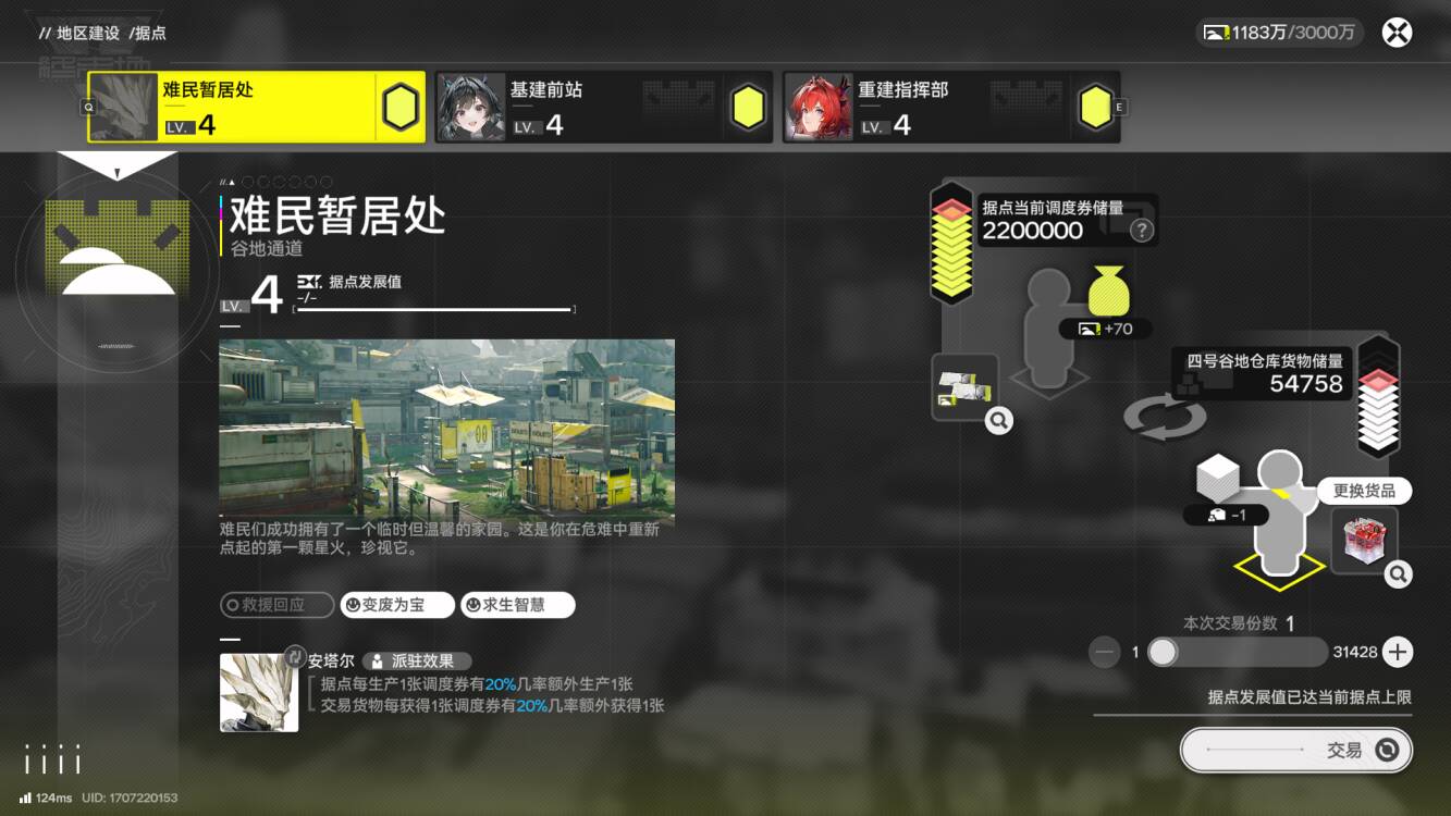 0+1莱万汀,有七十抽四号谷地和武陵有稳定产线,四号谷地据点全满