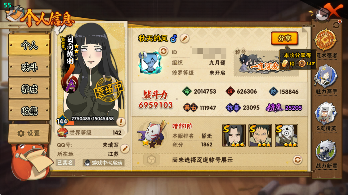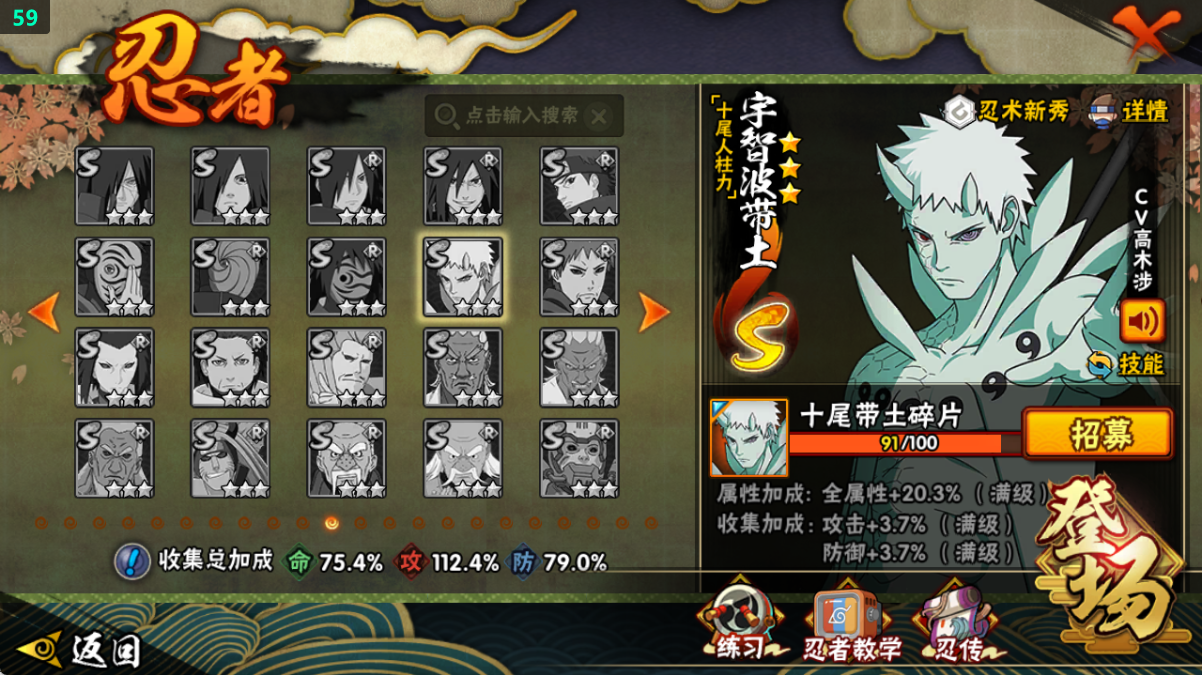 (可转苹果)695w战力白破创柱14S+328忍战凯+6个198直购A/35A+创斑86碎片+十尾带土91碎片