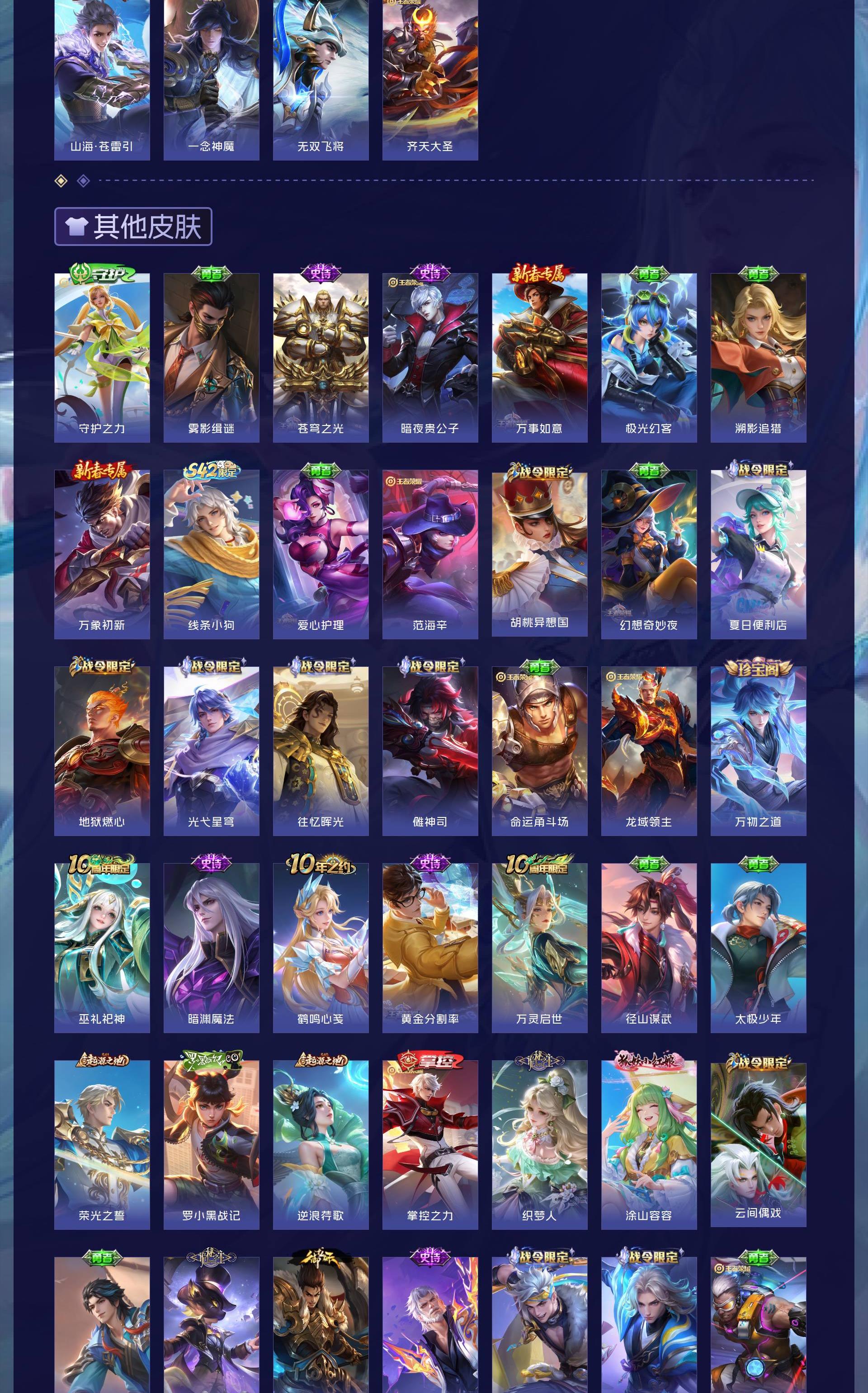 V7 皮肤287 英雄128 至尊星耀 荣耀典藏1 无双皮肤2 珍品传说2 传说11 其他皮肤278