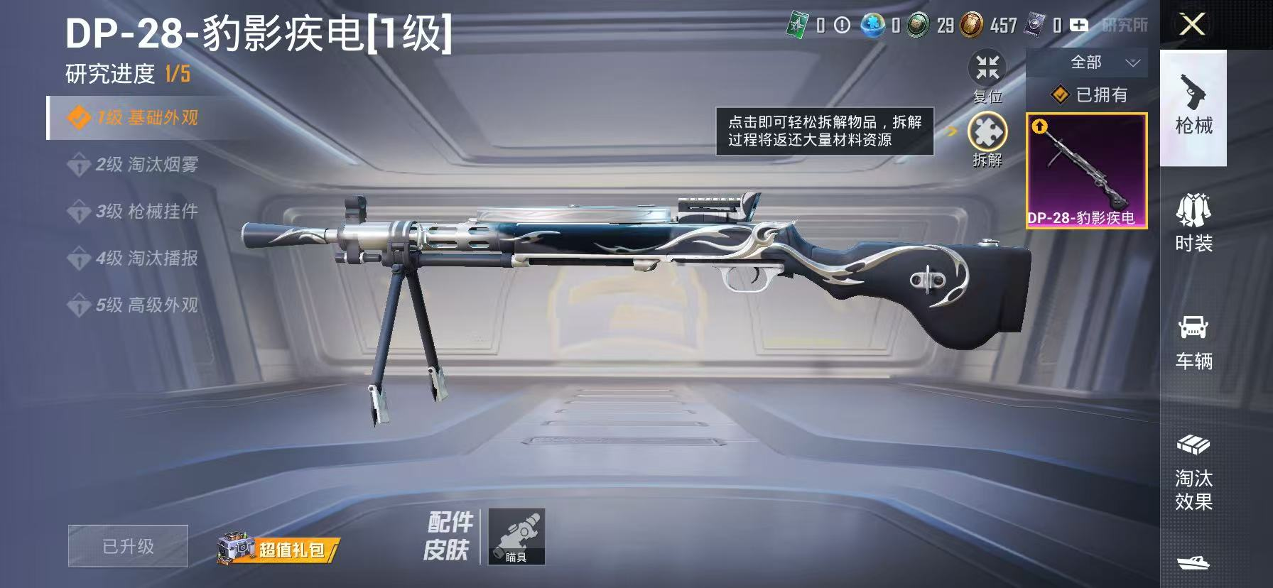 545-【1特效枪可秒换绑】 苹果Q区-475热力值--3套装-2枪皮 【1特效枪】 DP-28-豹影疾电(1级)