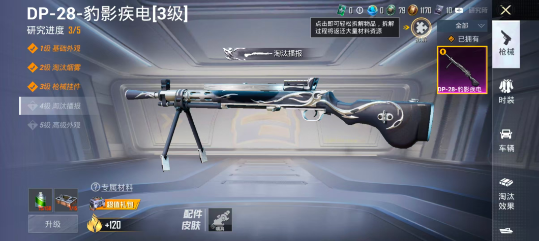 967-可二次【1特效枪q19级可秒换绑】 安卓Q区-1507热力值--4套装-13枪皮 【1特效枪】 DP-28-豹影疾电(3级)【1热门】 MG3-幻世战舞者