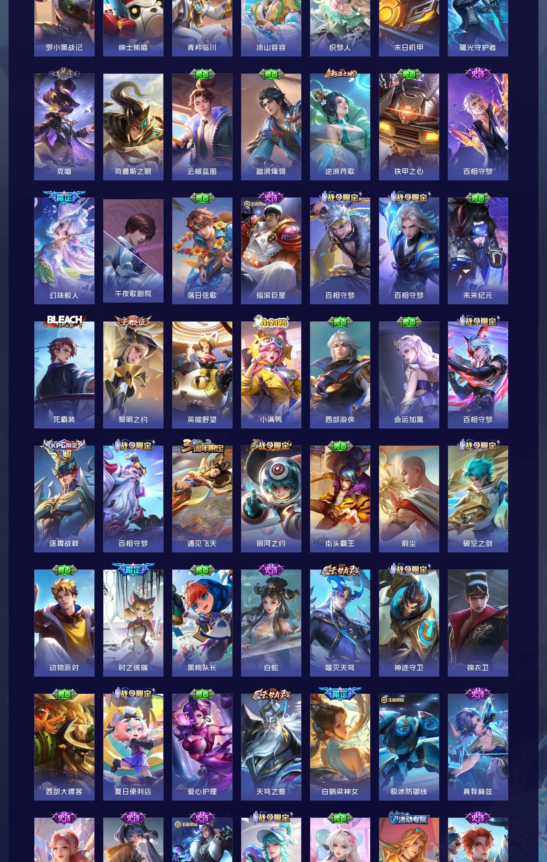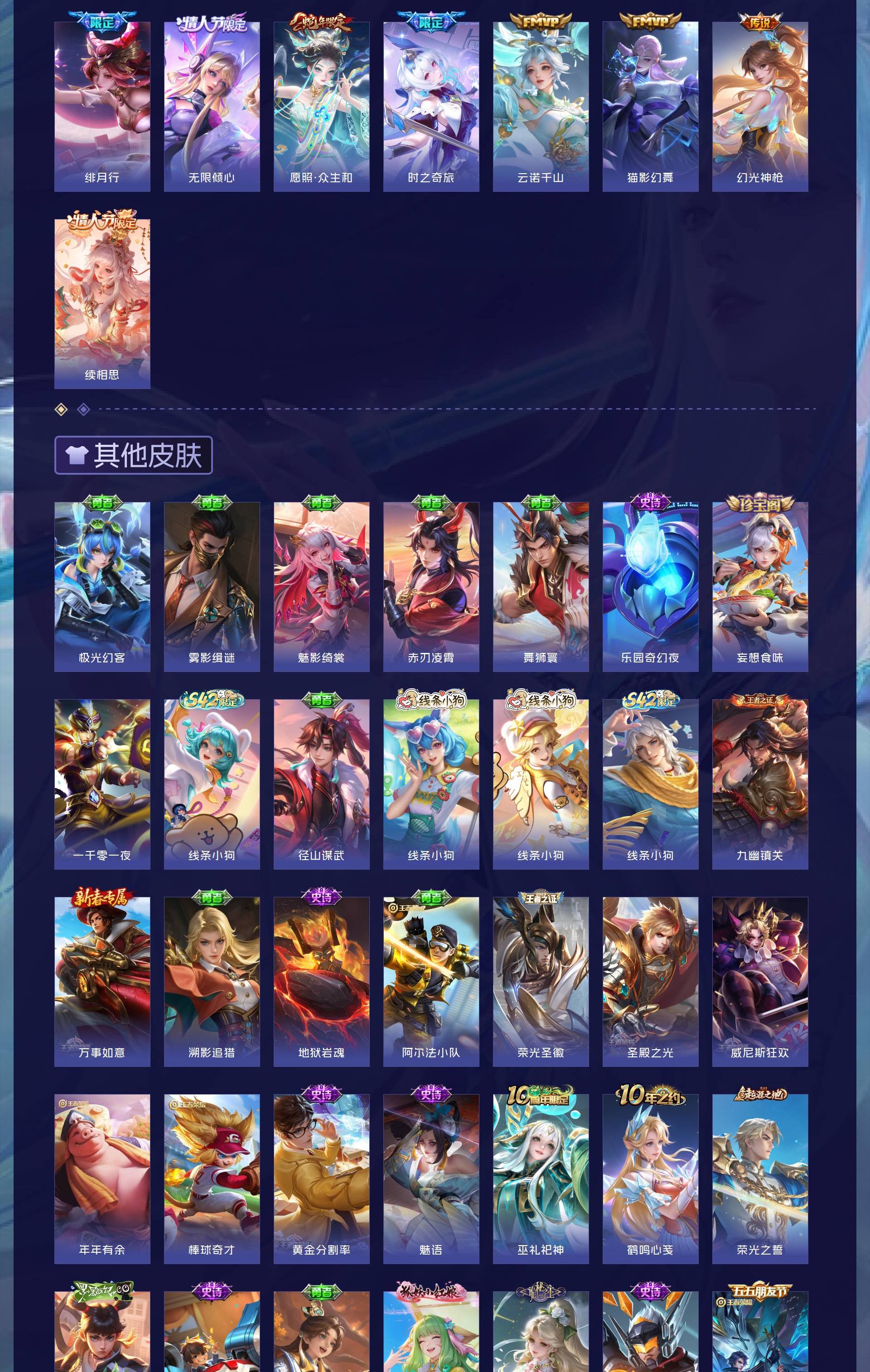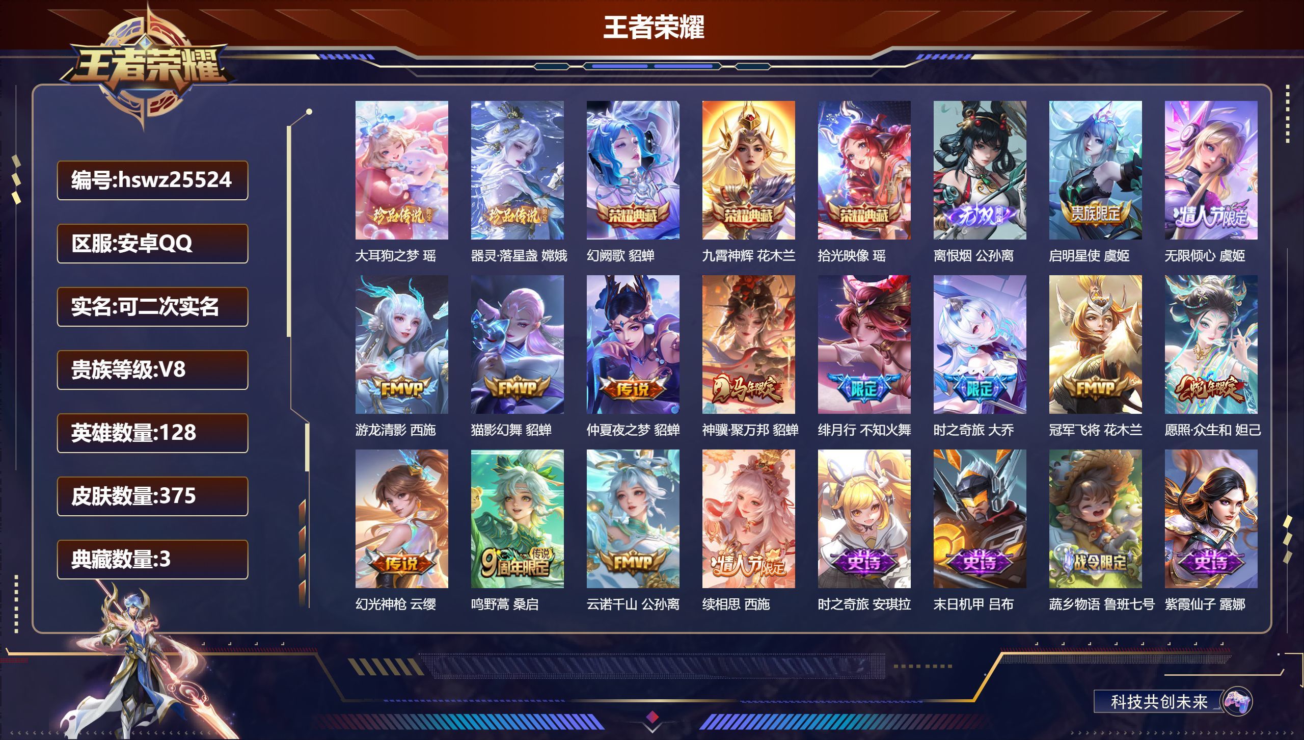 安卓QQ/最强王者/375皮肤/128英雄/3典藏/0珍品无双/1无双/2珍品传说/14传说/115
