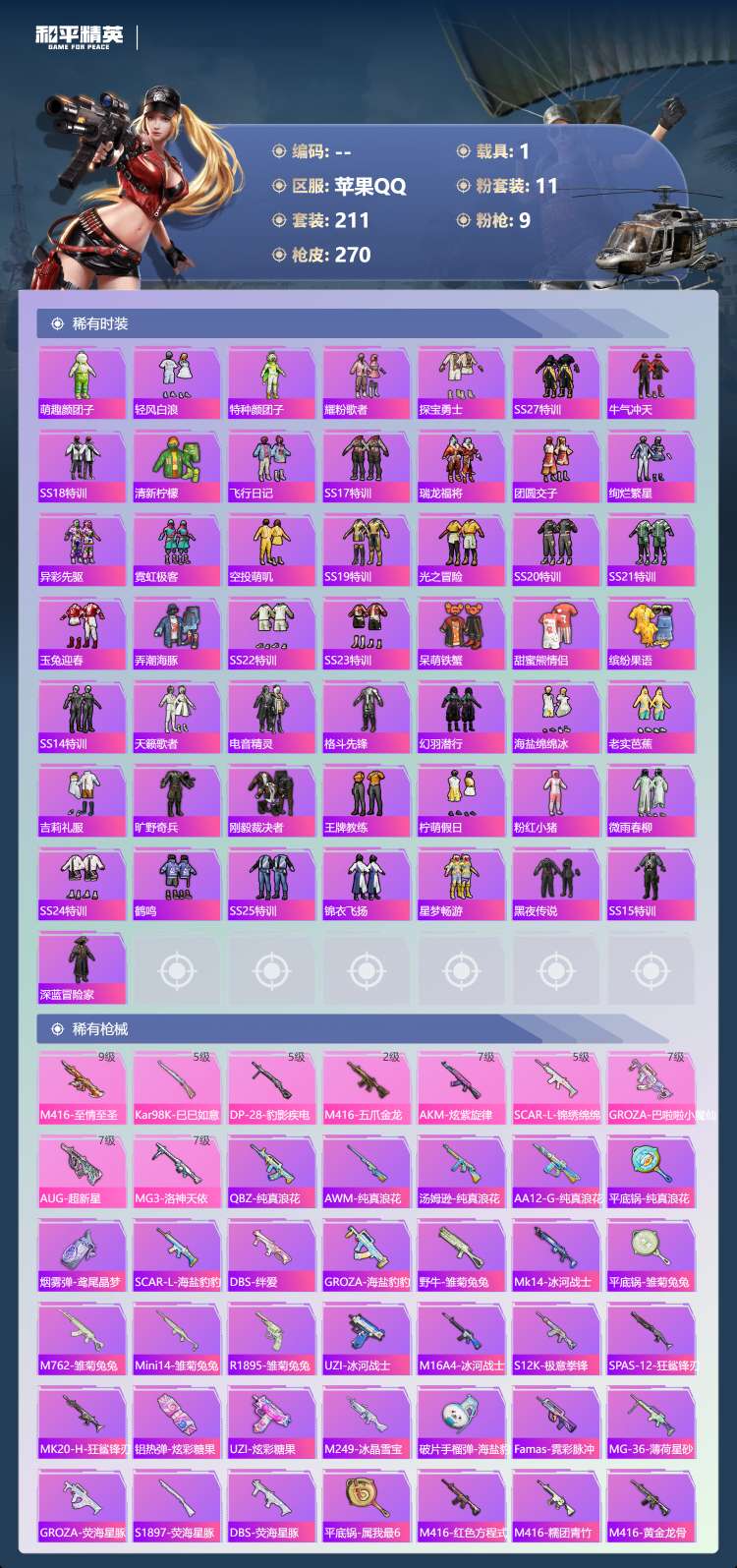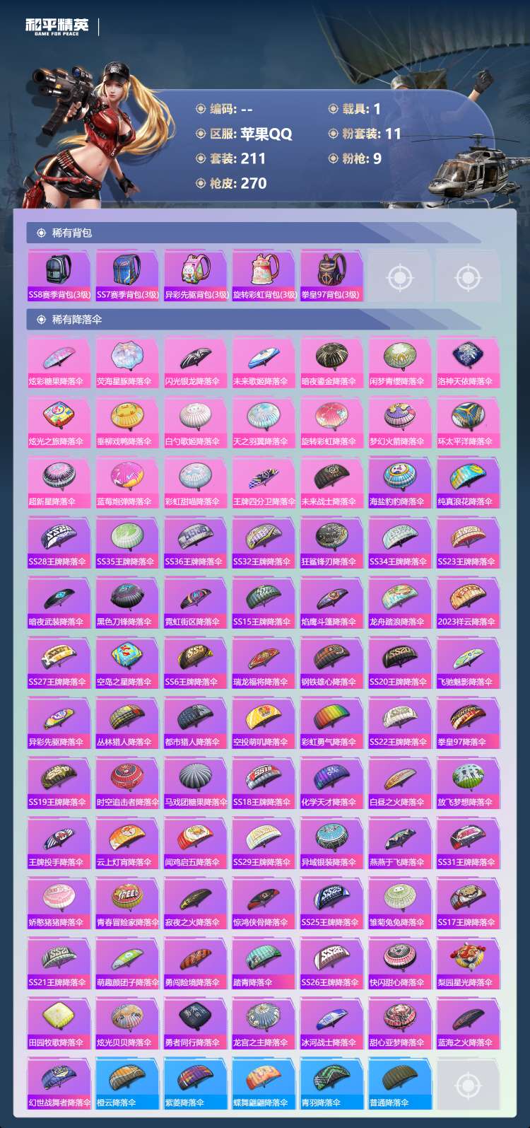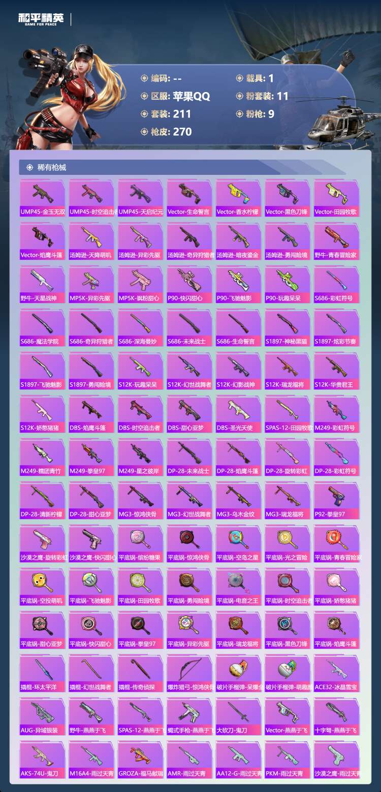 hs63644 苹果手Q-21王牌印记-11粉装-9特效枪-1载具-92010热力值-211套装-2