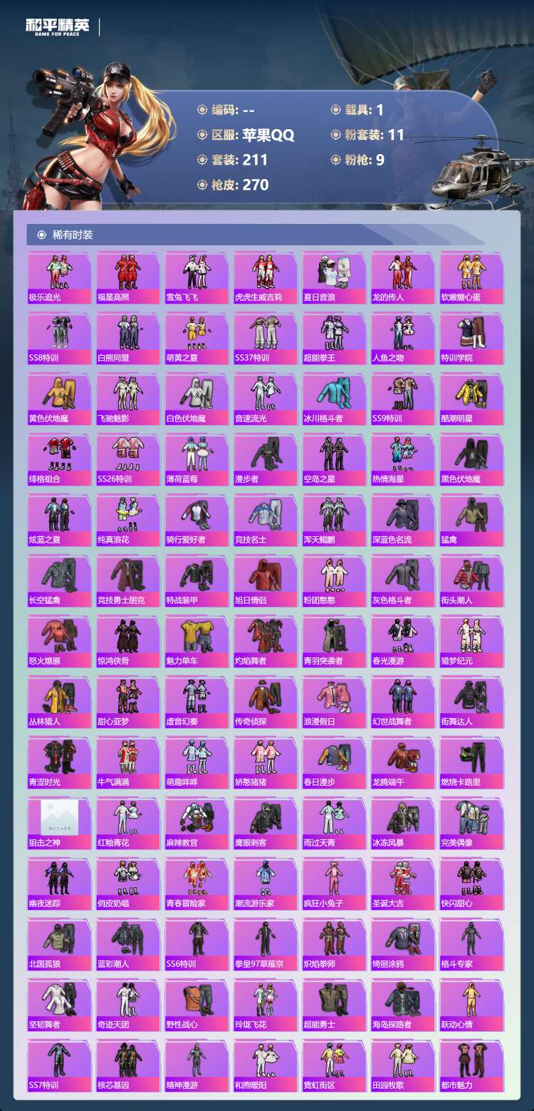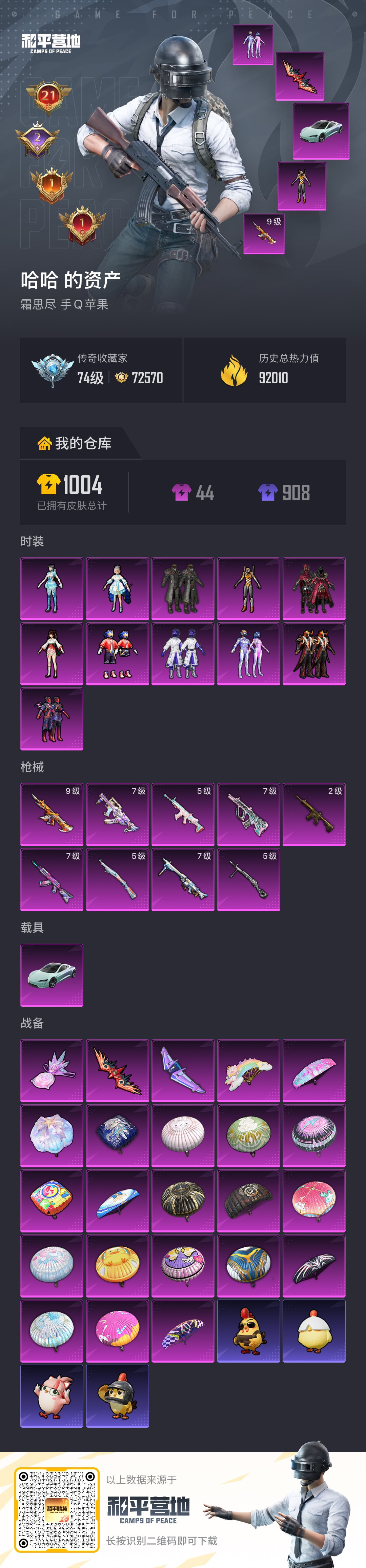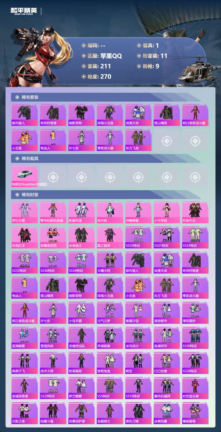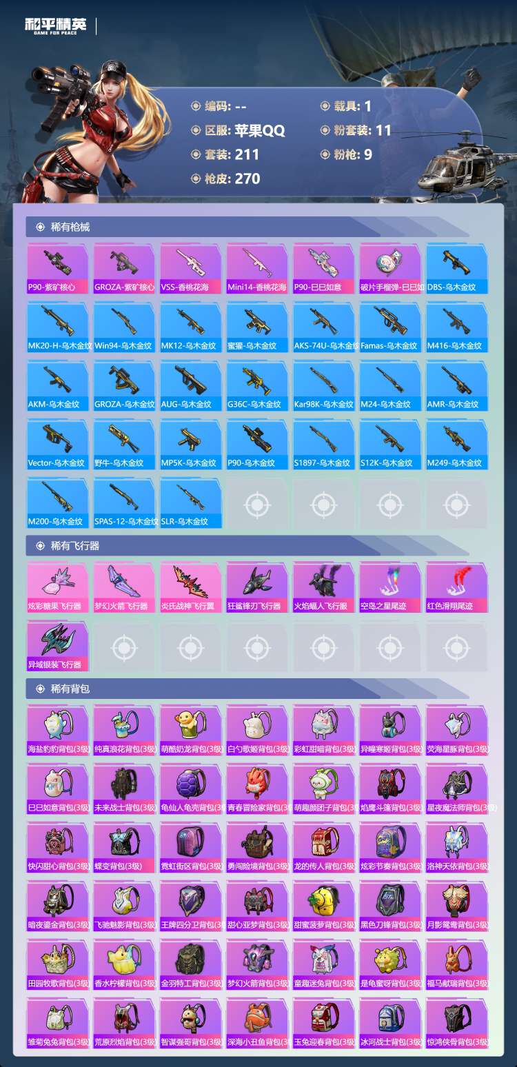 hs63644 苹果手Q-21王牌印记-11粉装-9特效枪-1载具-92010热力值-211套装-2