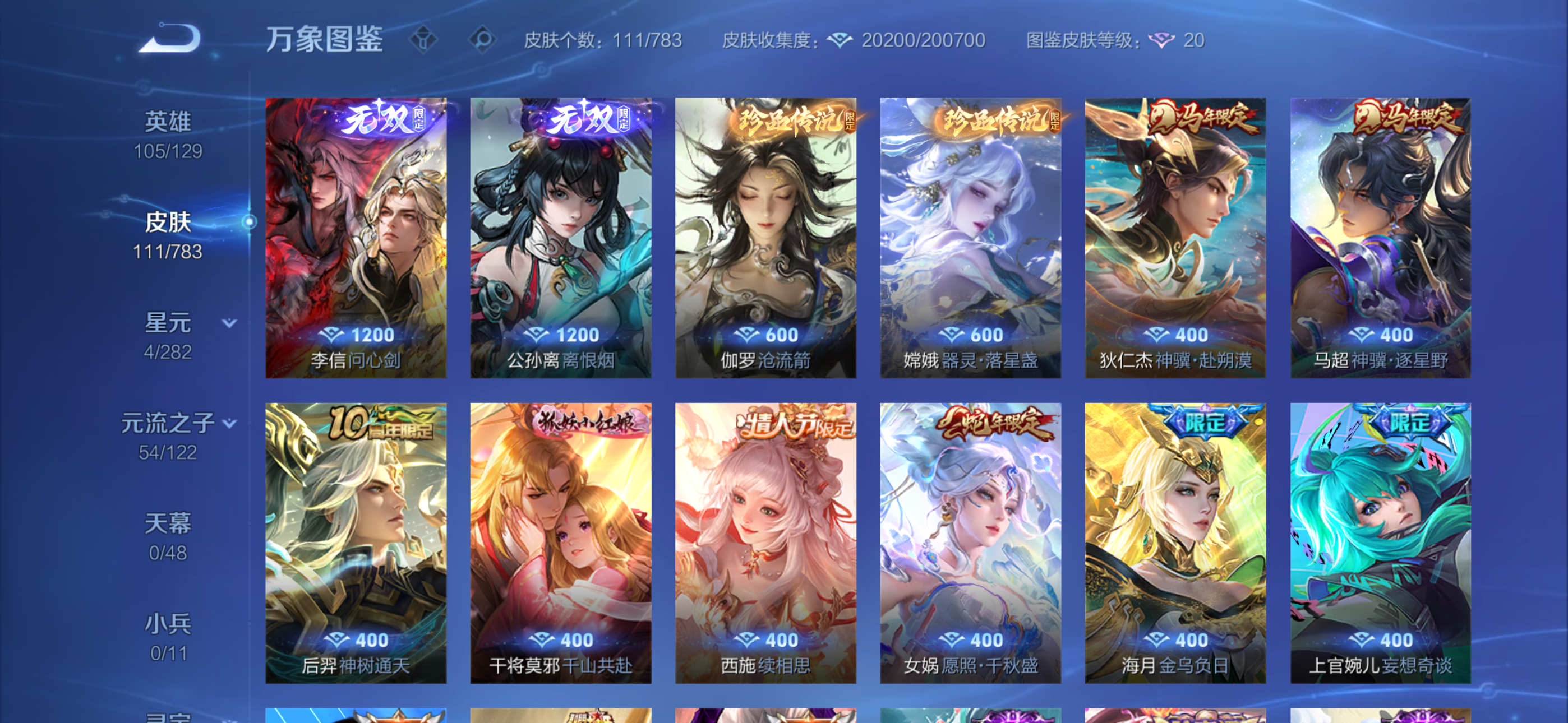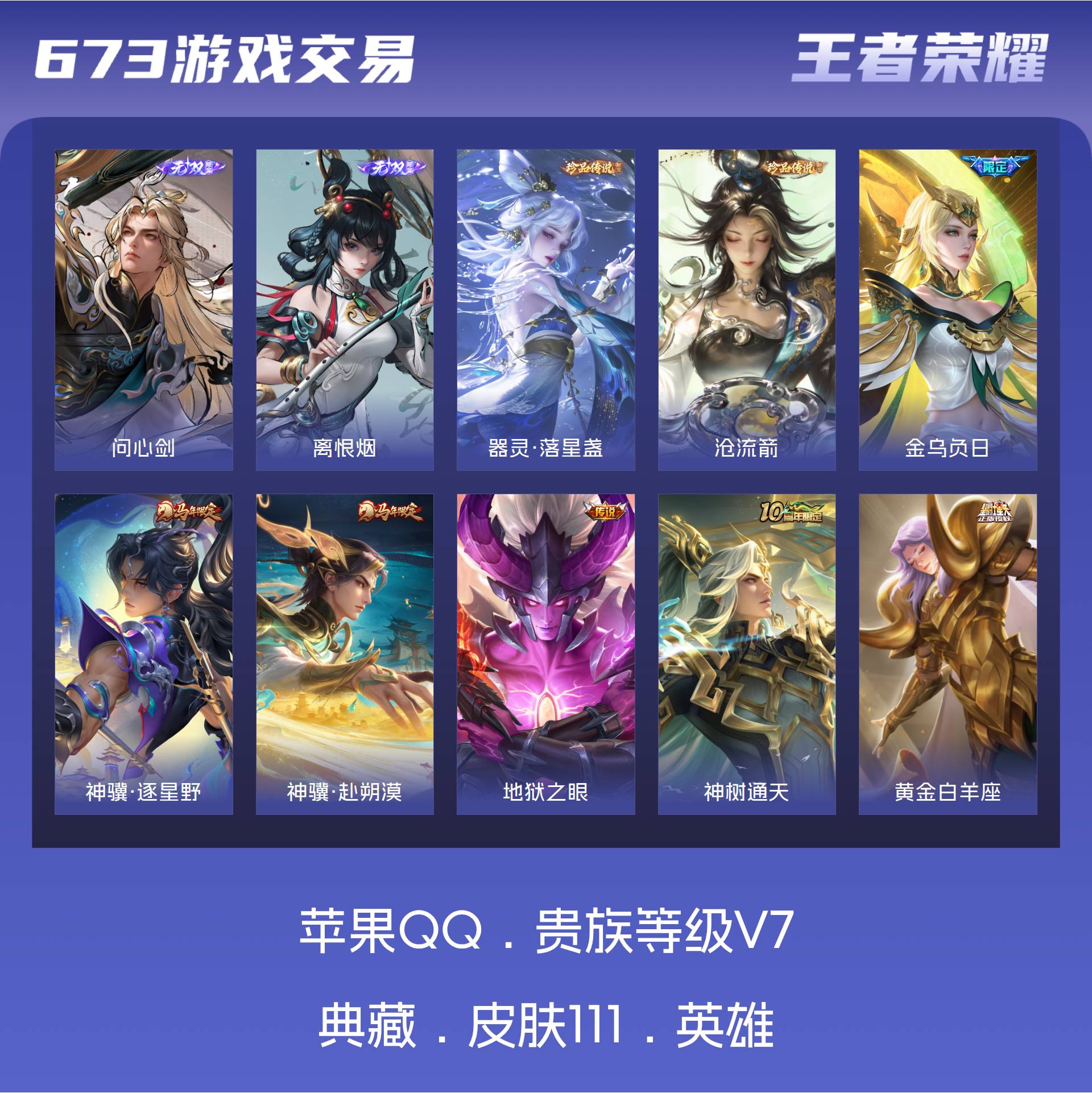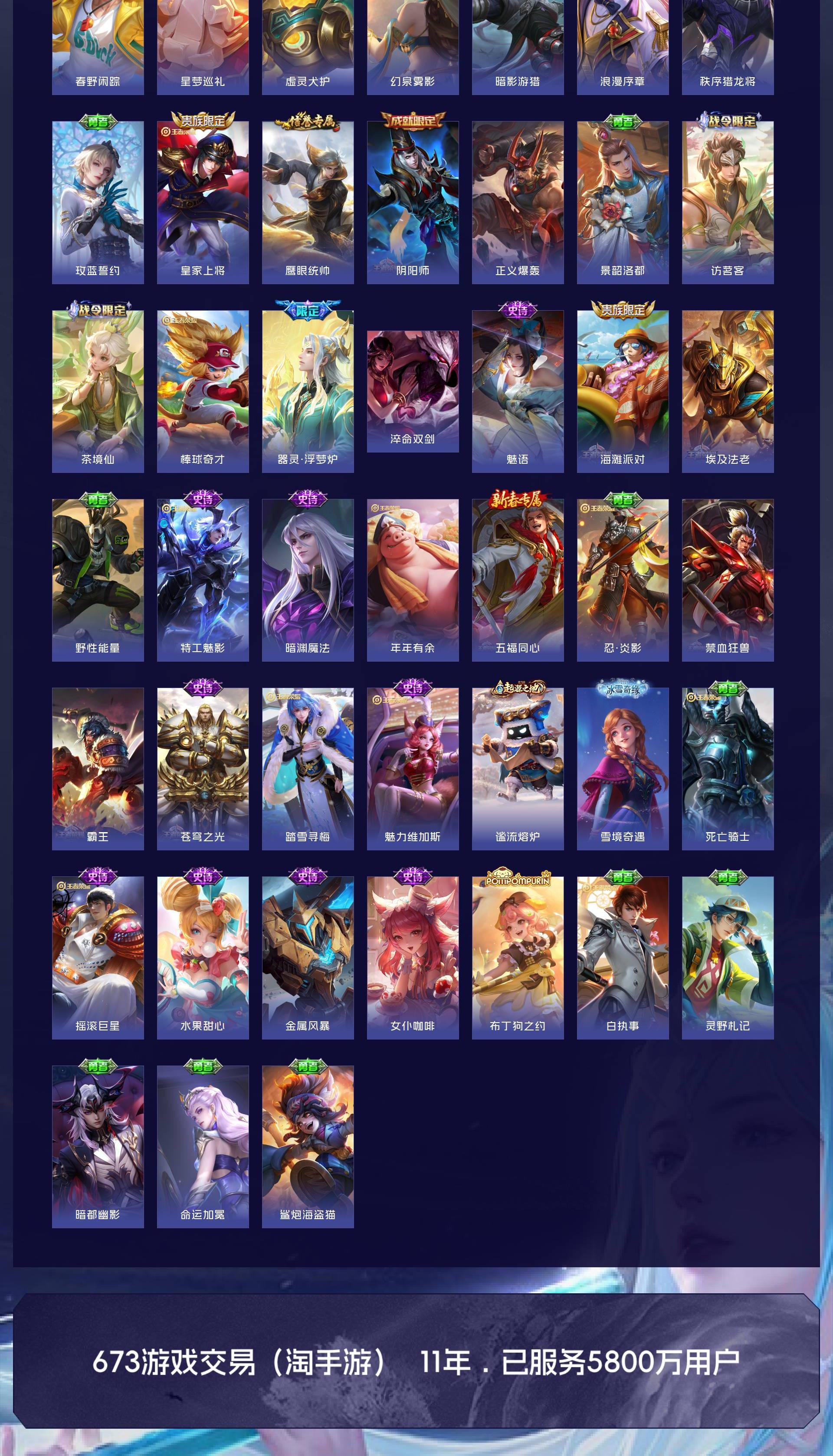 V7 皮肤111 荣耀王者 无双皮肤2 珍品传说2 星传说1 传说11 其他皮肤101