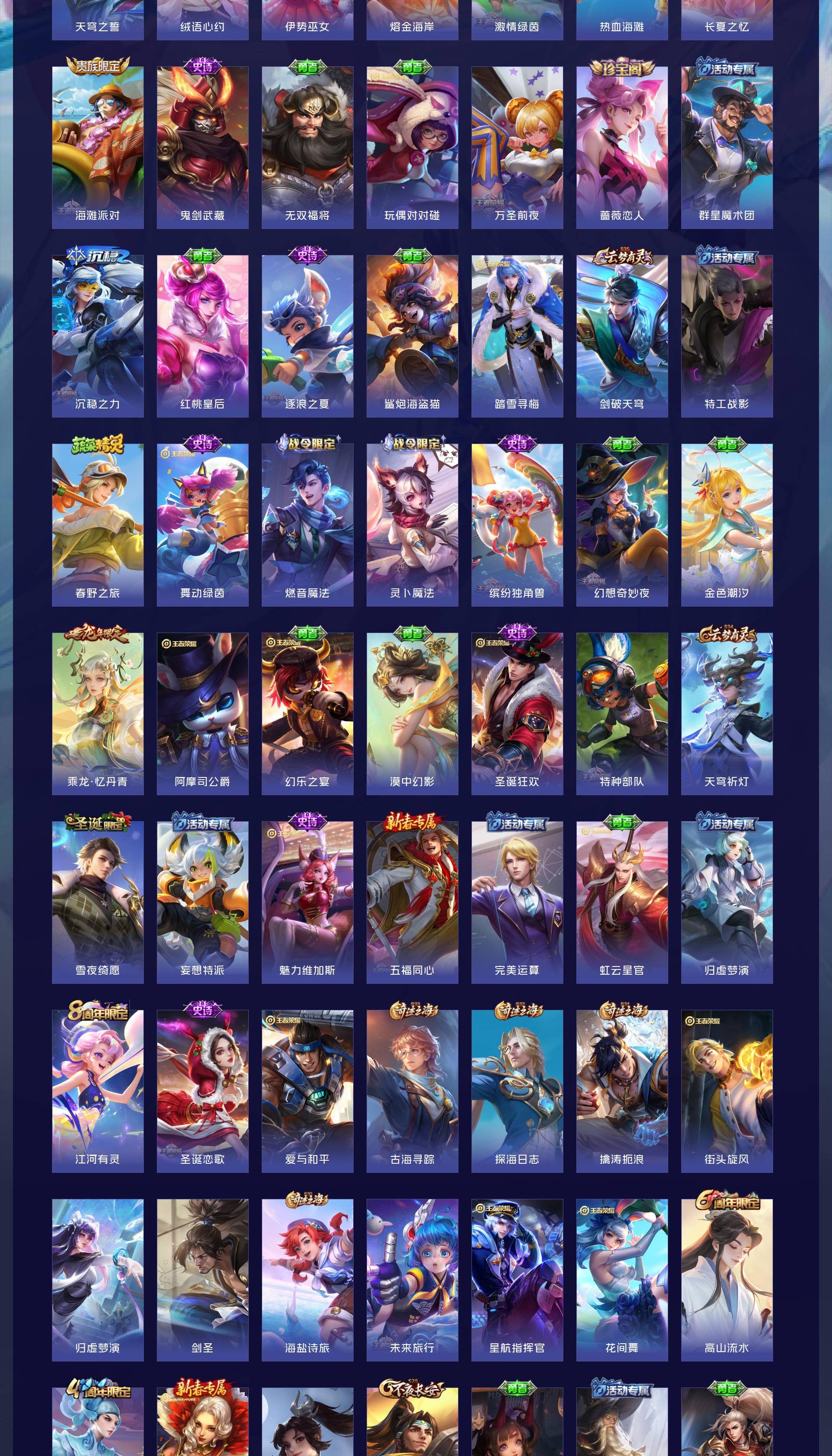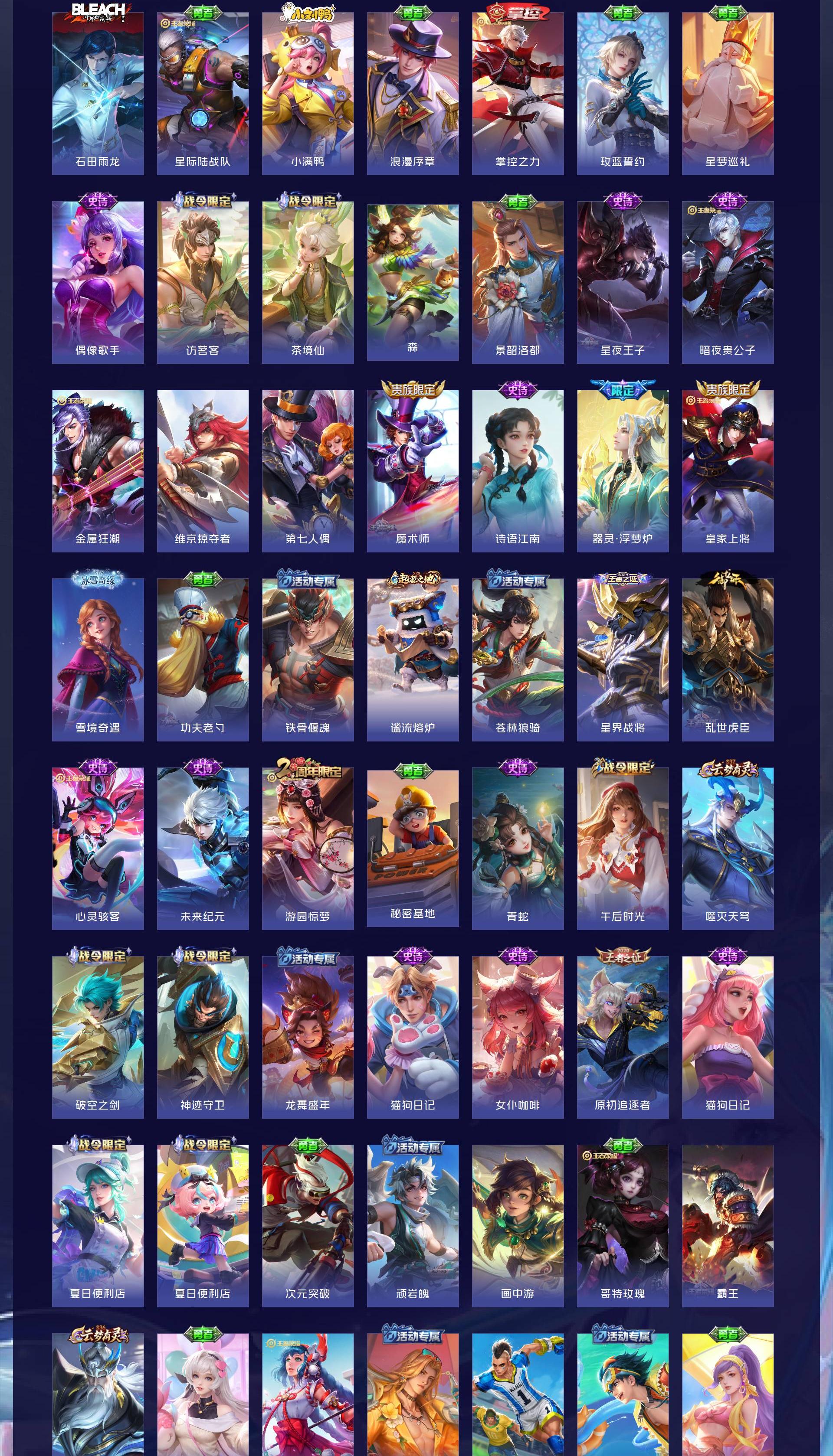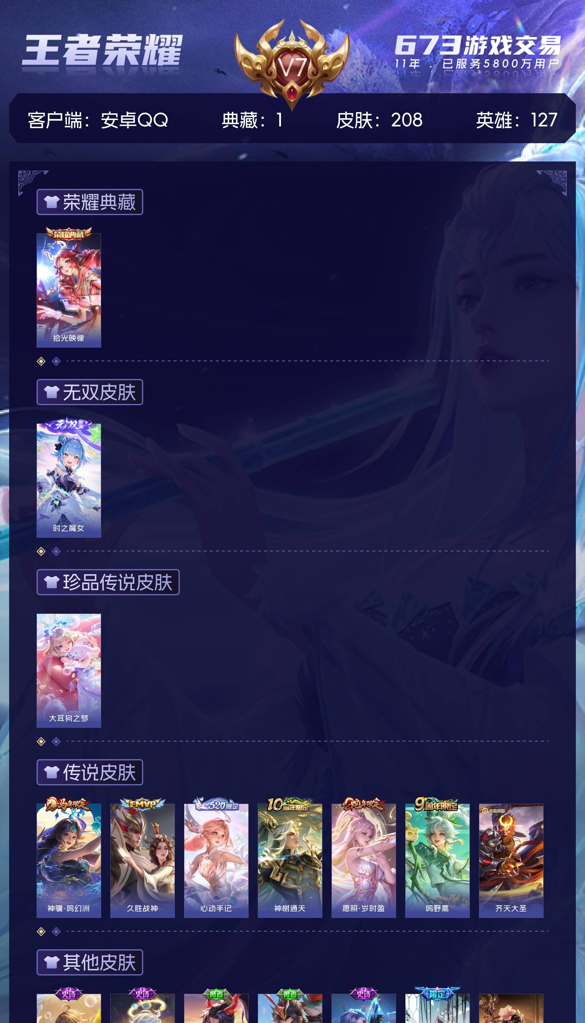 V7 皮肤208 英雄127 无双王者 荣耀典藏1 无双皮肤1 珍品传说1 传说7 其他皮肤205