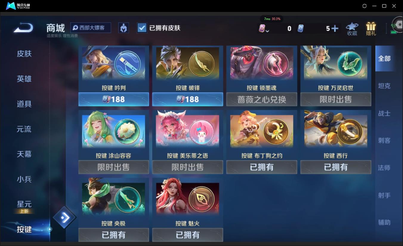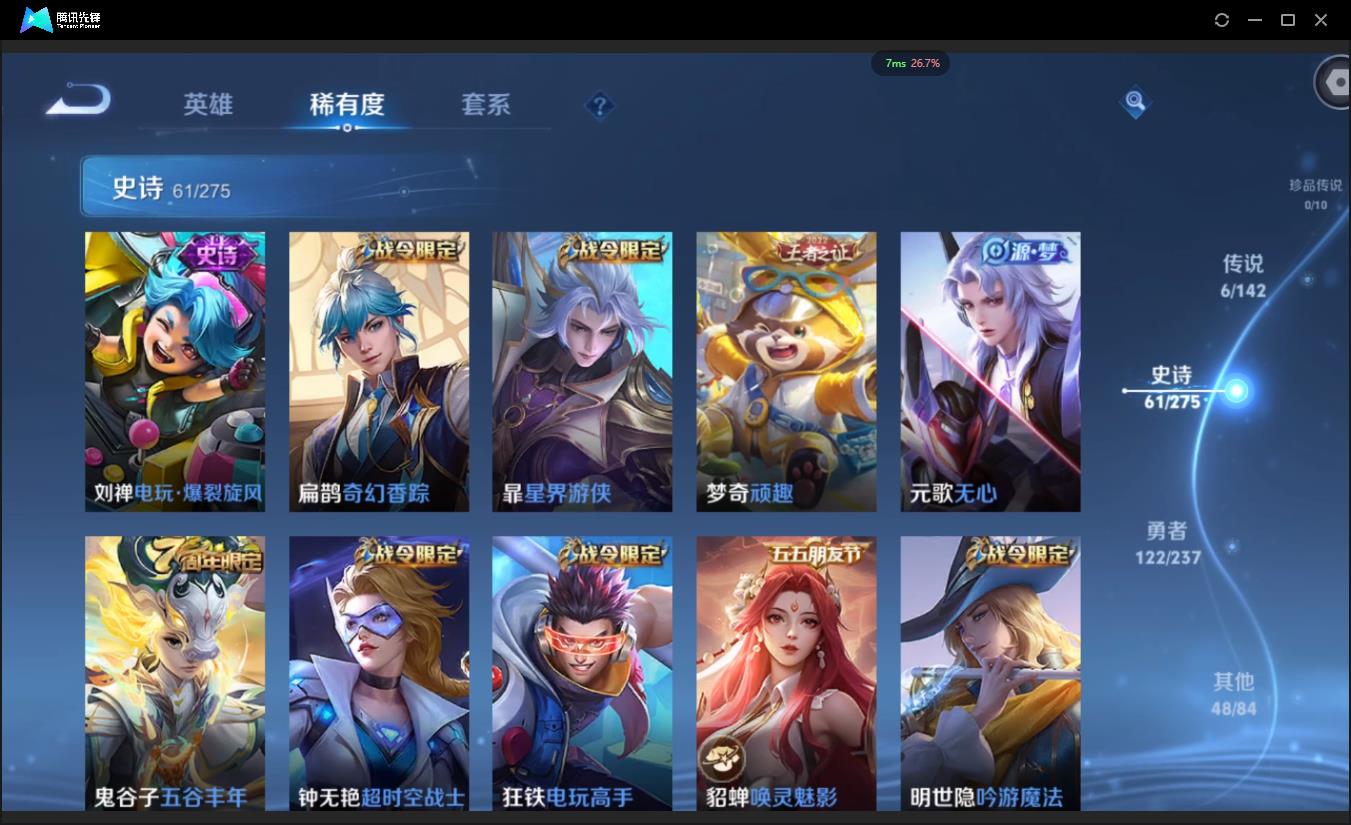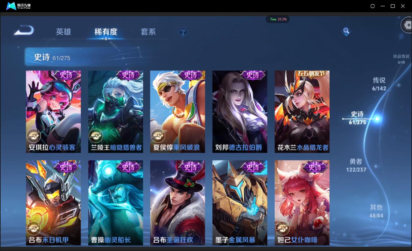 可二次-V7-235皮肤-1星元-6传说-61史诗-4个性按键-背包里有一颗未使用的水晶