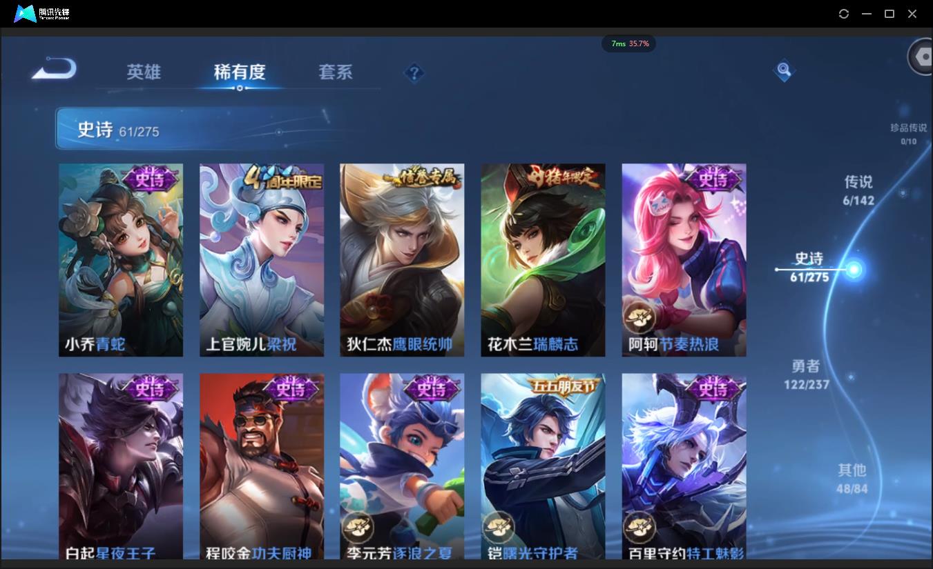 安卓Q-可二次-V7-235皮肤-1星元-6传说-61史诗-4个性按键-背包里有一颗未使用的水晶