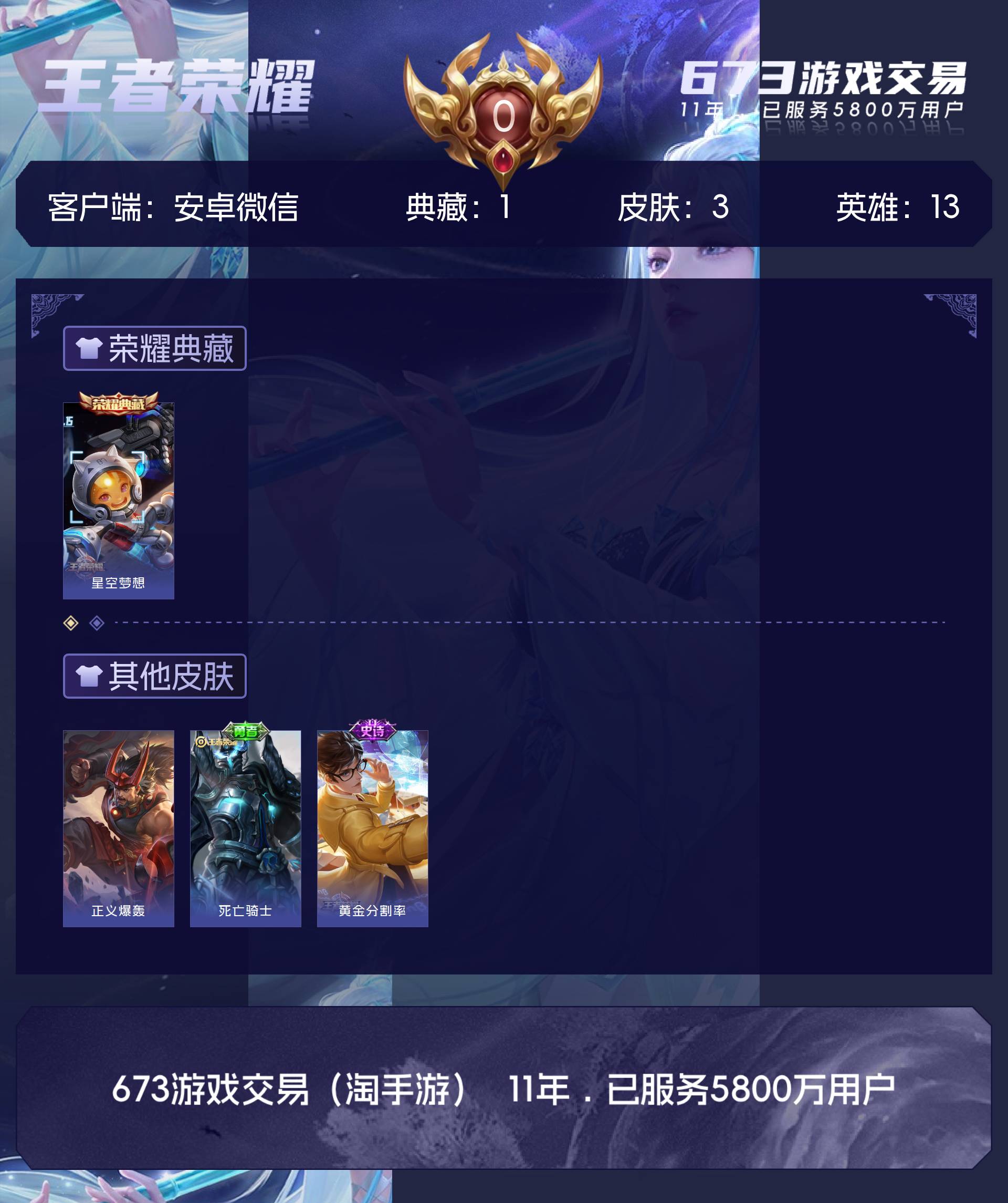 皮肤3 英雄13 倔强青铜 荣耀典藏1 其他皮肤3