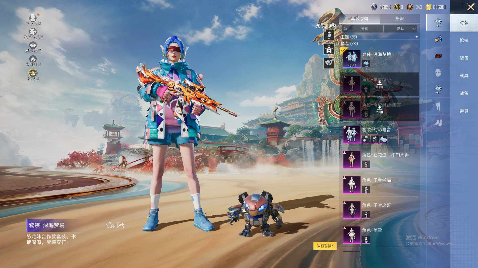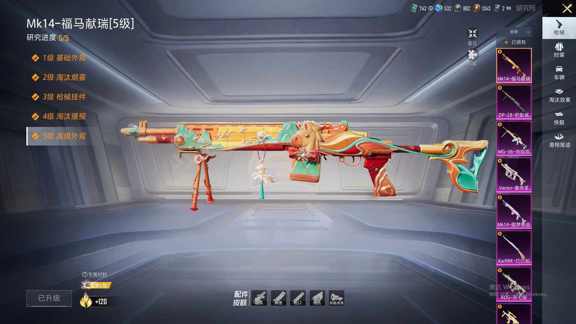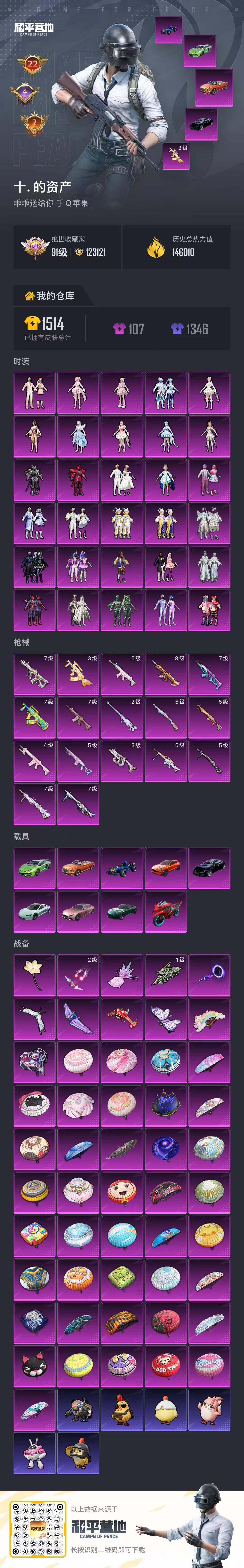 30粉装-17特效枪-9载具-9粉色飞行器-146010热力值-22王牌印记-281套装-379枪皮