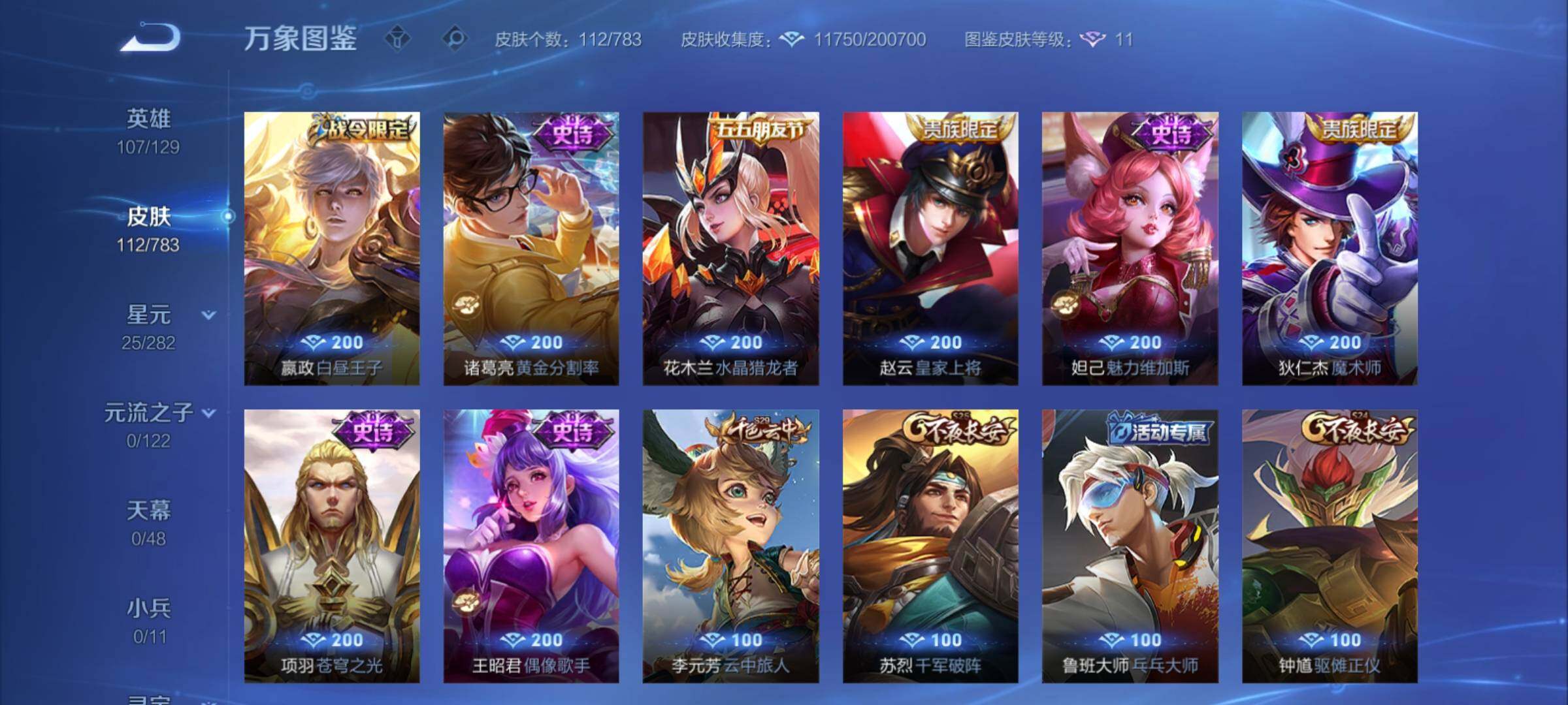 可换绑【精品小号·朱雀志·大圣娶亲·天狼狩猎者·暗影游猎】3王者印记 五级铭文120 可二次CD18058 安卓Q-V6-112皮肤-2传说-19史诗【传说皮肤】:西施游龙清影,狄仁杰超时空战士【限定皮肤】:狄仁杰阴阳师,赵云皇家上将,嬴政白昼王子,芈月重明,吕布猎兽之王,夏侯惇朔风刀,典韦穷奇,典韦蓝屏警告,马可波罗暗影游猎,狄仁杰魔术师,项羽海滩派对,老夫子醍醐