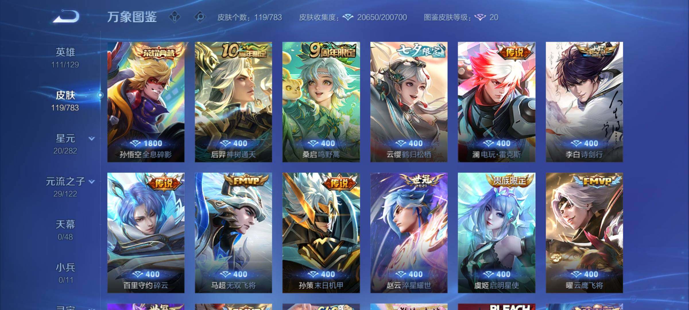 可换绑【店长主推V8捡漏号·孙悟空典藏·七夕云缨·兔年马可·牛年吕布·多传说限定号】13按键 5王者印记 五级铭文130 可二次CD18064 安卓Q-V8-120皮肤-1典藏皮肤-13传说-41史诗【荣耀典藏】:孙悟空全息碎影【传说皮肤】:后羿神树通天,桑启鸣野蒿,云缨鹤归松栖,澜电玩雷克斯,李白诗剑行,百里守约碎云,马超无双飞将,孙策末日机甲,赵云淬星耀世,虞