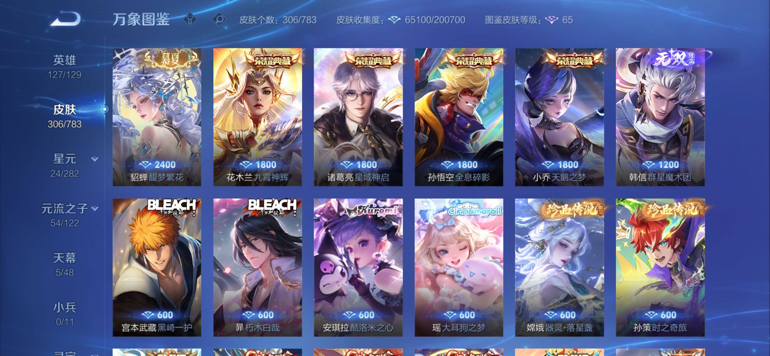 可换绑【V10精品号·貂蝉慕夏·孙策全皮·4典藏·韩信无双·6珍品·夜礼服假面·前尘镜·李逍遥·天魔缭乱·虎年全套·龙年全套·5天幕·贵族积分19.4万】47按键,5天幕,1星传说,65戳戳,9王者印记,五级铭文240,可二次CD18065,苹果Q-V10-306皮肤-4典藏皮肤-1珍品无双-1无双-6珍品传说-47传说-95史诗【英雄全皮】:娜可露露全皮,孙策全