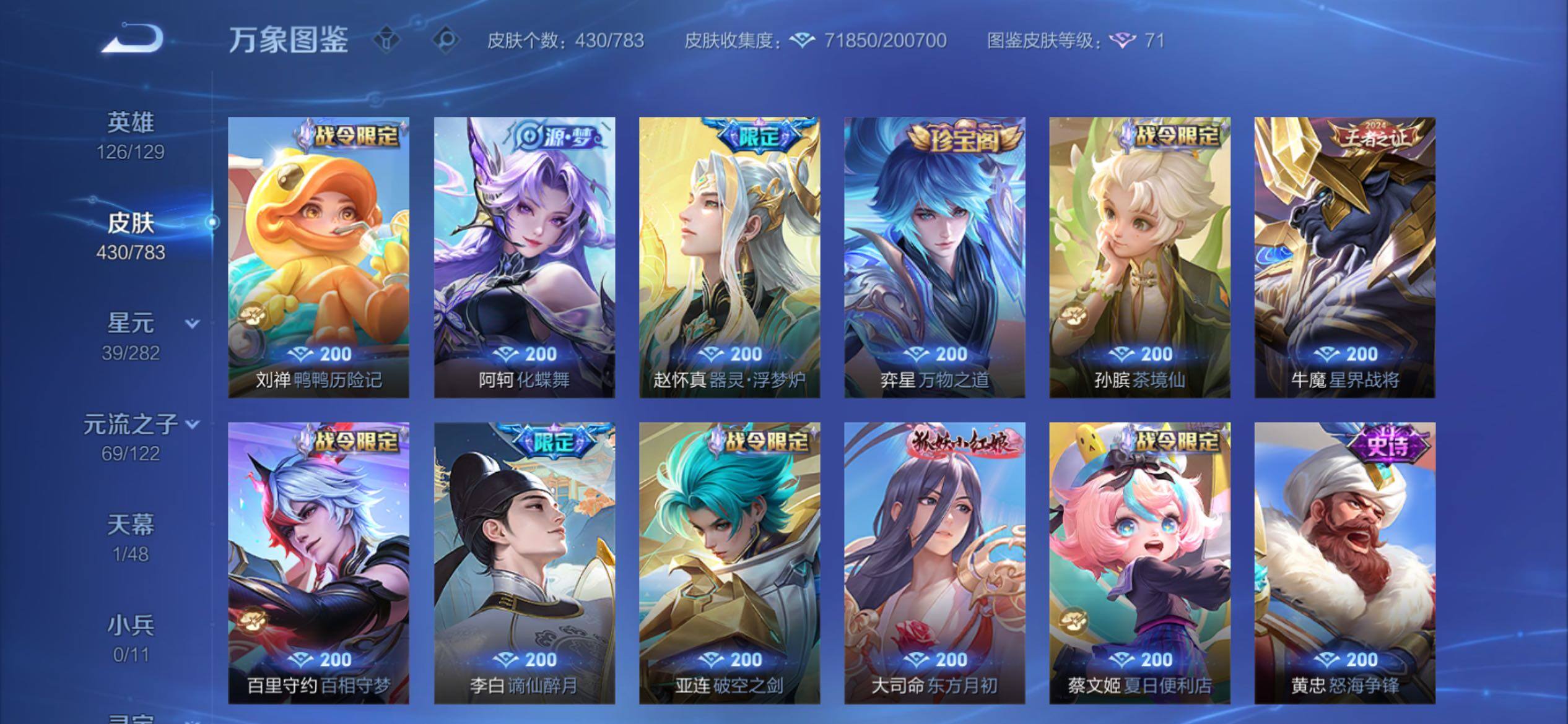 可换绑【店长精选V9·金标曜金标孙悟空·马超全皮·曜无双·3典藏·江户川柯南怪盗基德·白虎志·凤求凰傲雪梅枪·神威·路在脚下天幕·贵族积分13.3万】33按键,5星传说,1天幕,14王者印记,五级铭文200,可二次CD18075,苹果Q-V9-430皮肤-3典藏皮肤-1无双-2珍品传说-41传说-134史诗【英雄全皮】:刘禅全皮,元歌全皮,司马懿全皮,孙权全皮,橘