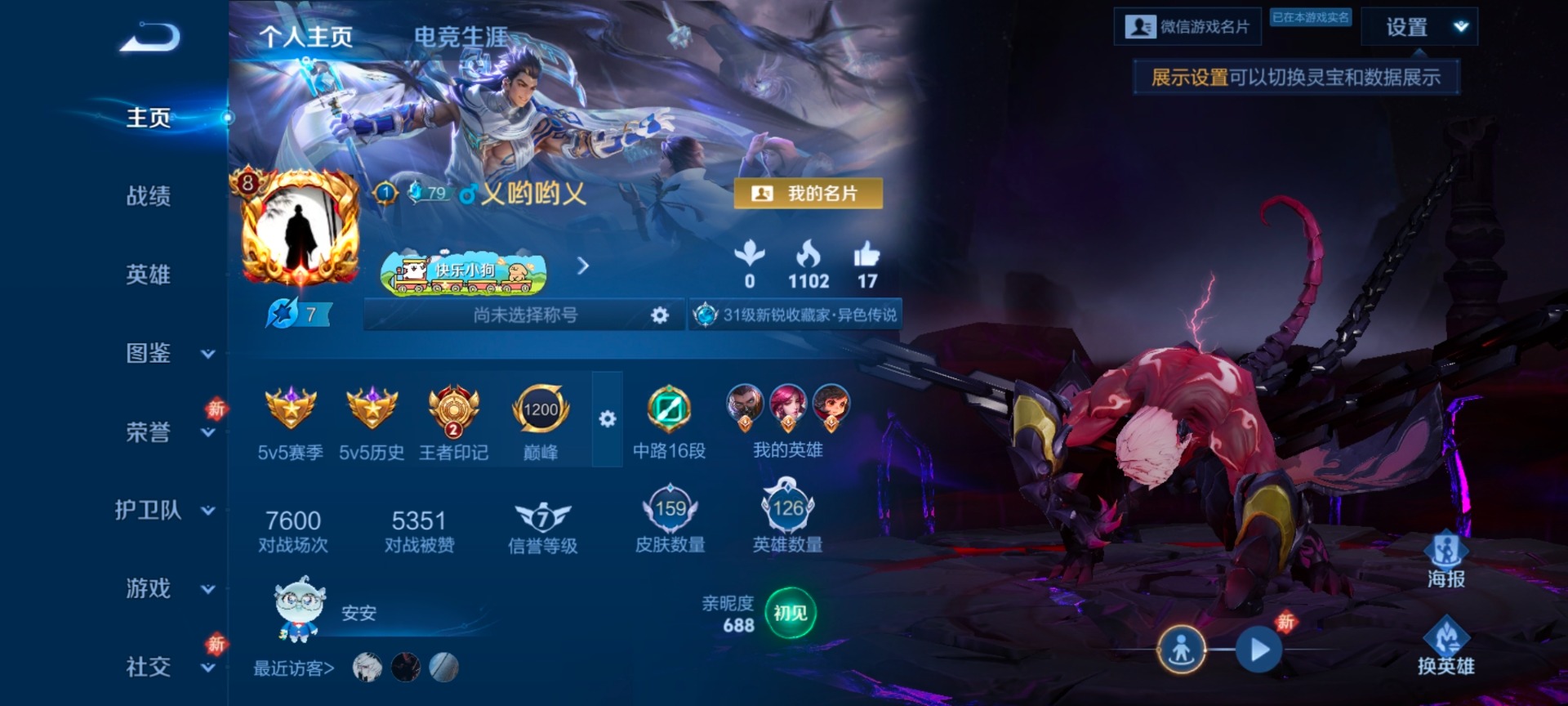 [17455315]V8 6传说 126英雄 159皮肤 可修改实名 女号