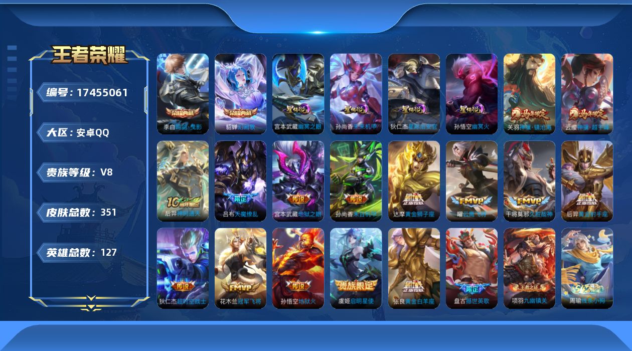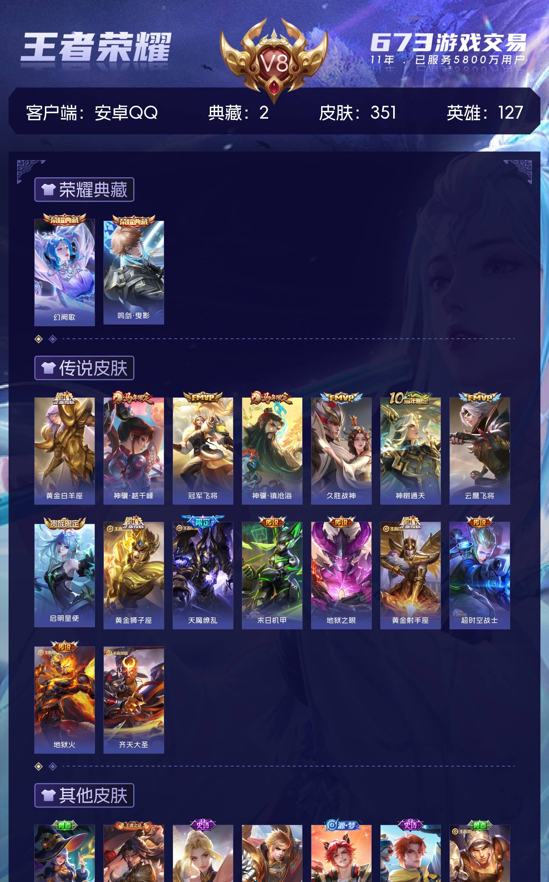 V8 皮肤351 英雄127 荣耀王者 荣耀典藏2 传说16 其他皮肤340