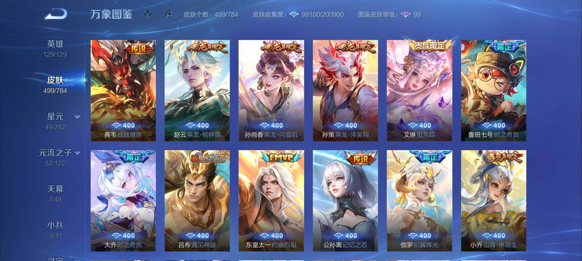 可换绑【无双V10精品号·流光积分6.9万·公孙离全皮·貂蝉慕夏全套·马年全套·李信公孙离小乔3无双·伽罗嫦娥双珍品·5典藏含武则天英雄·龙年全套·虎年全套·神骥仙使主页装扮·贵族积分40万】3177星币 63按键,6天幕,5星传说,253戳戳,20王者印记,满级铭文,可二次CD18087,安卓Q-V11-499皮肤-4典藏皮肤-1典藏英雄-1珍品无双-3无双-2珍