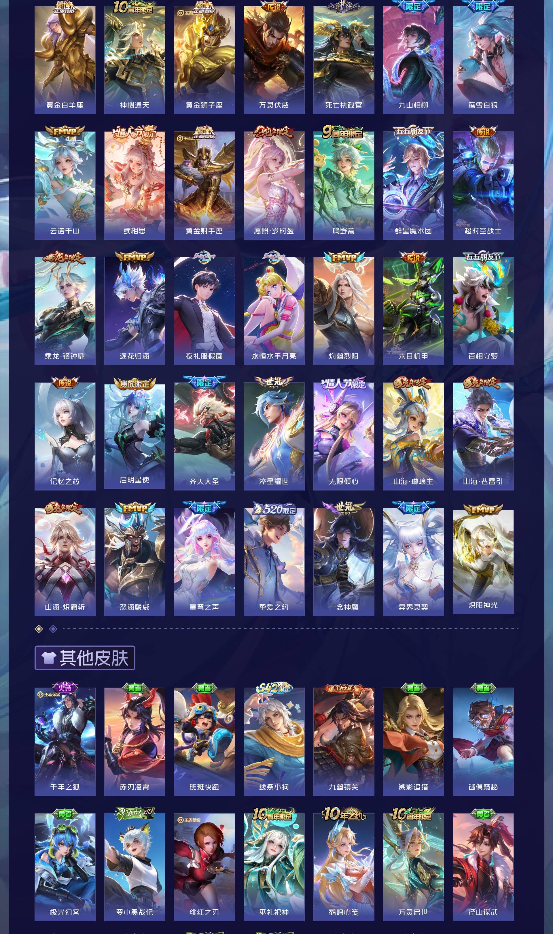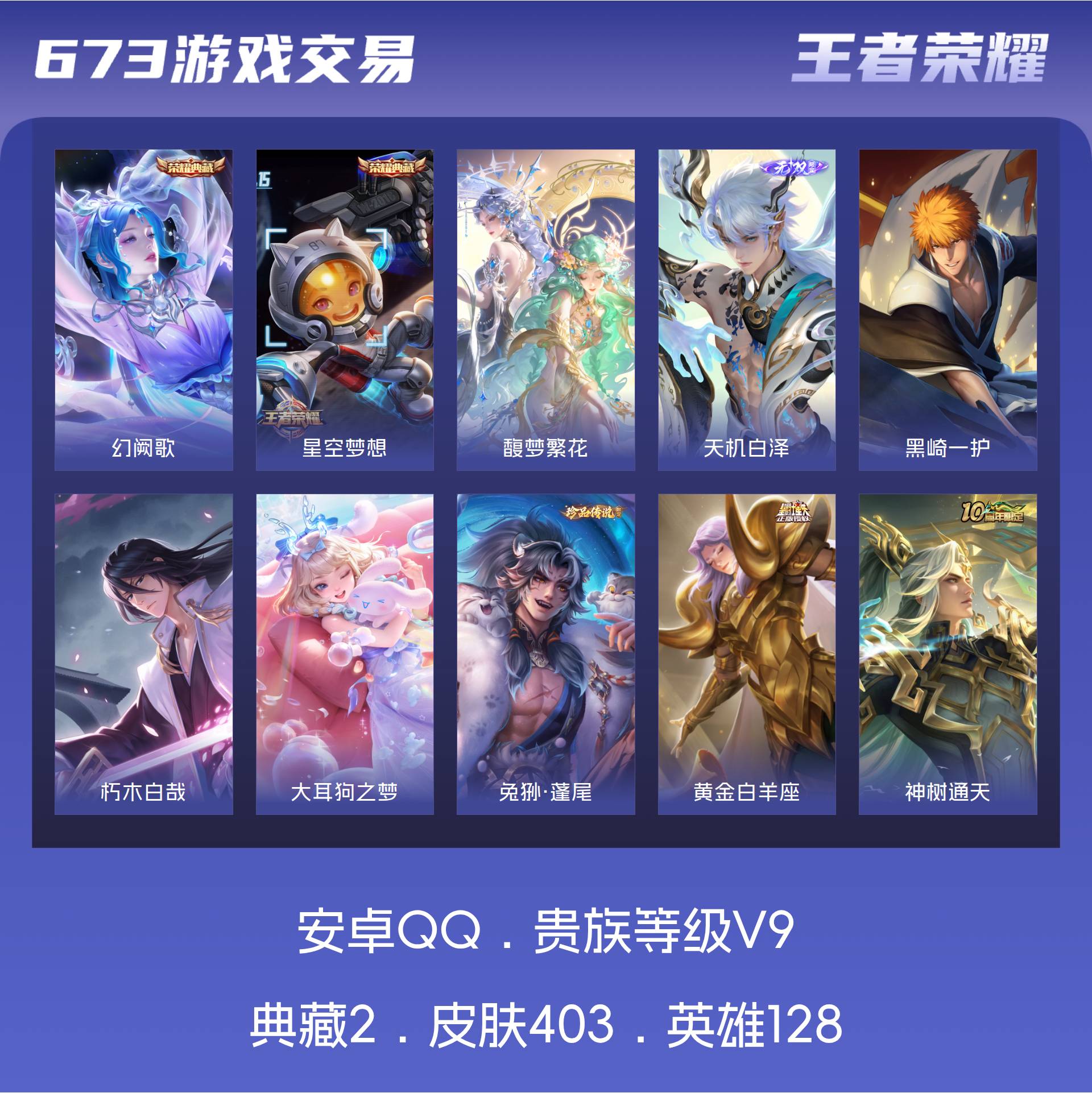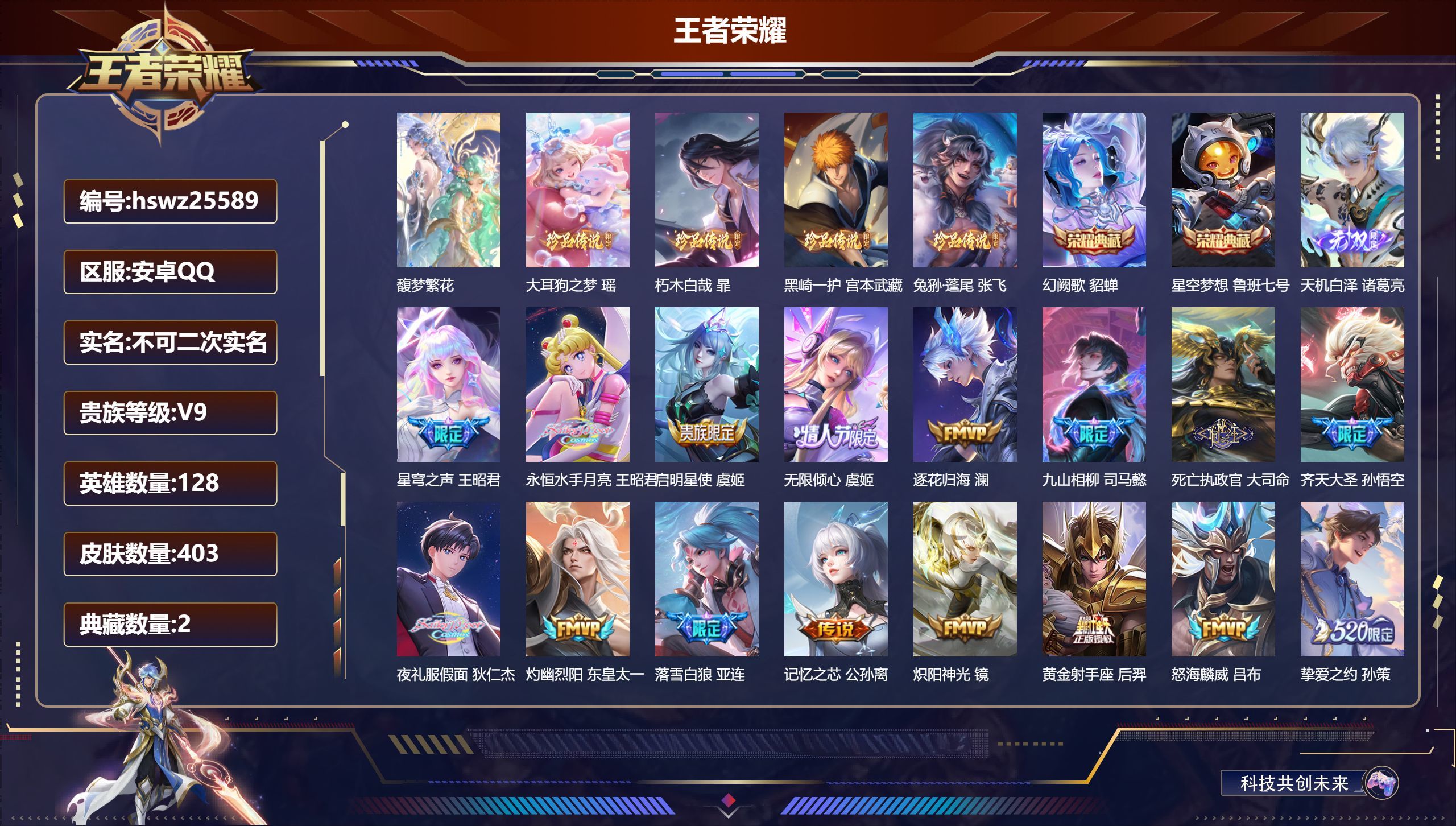 安卓QQ/非凡王者/403皮肤/128英雄/2典藏/1珍品无双/1无双/4珍品传说/35传说/124