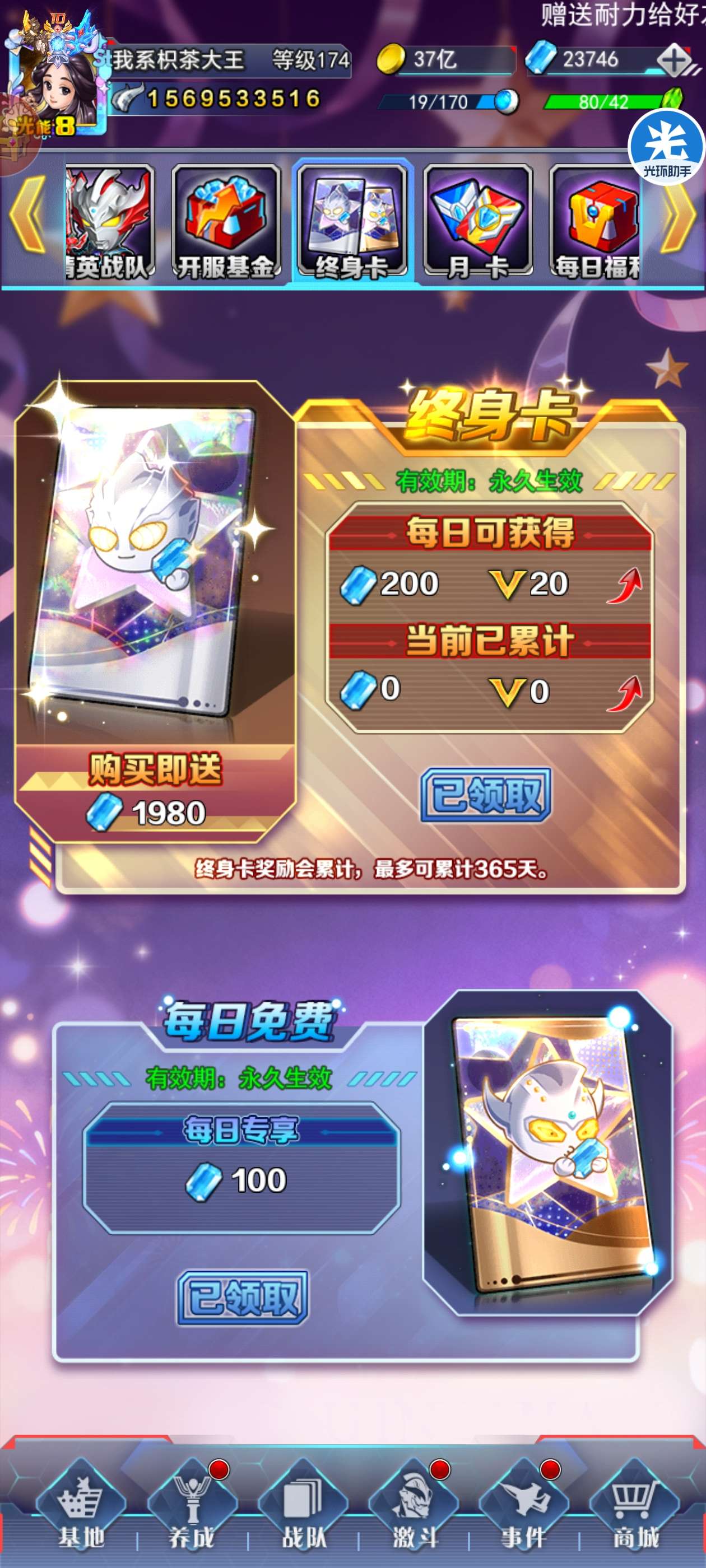 毕业诺亚,毕业亚克,背包资源丰富,终身卡已买
