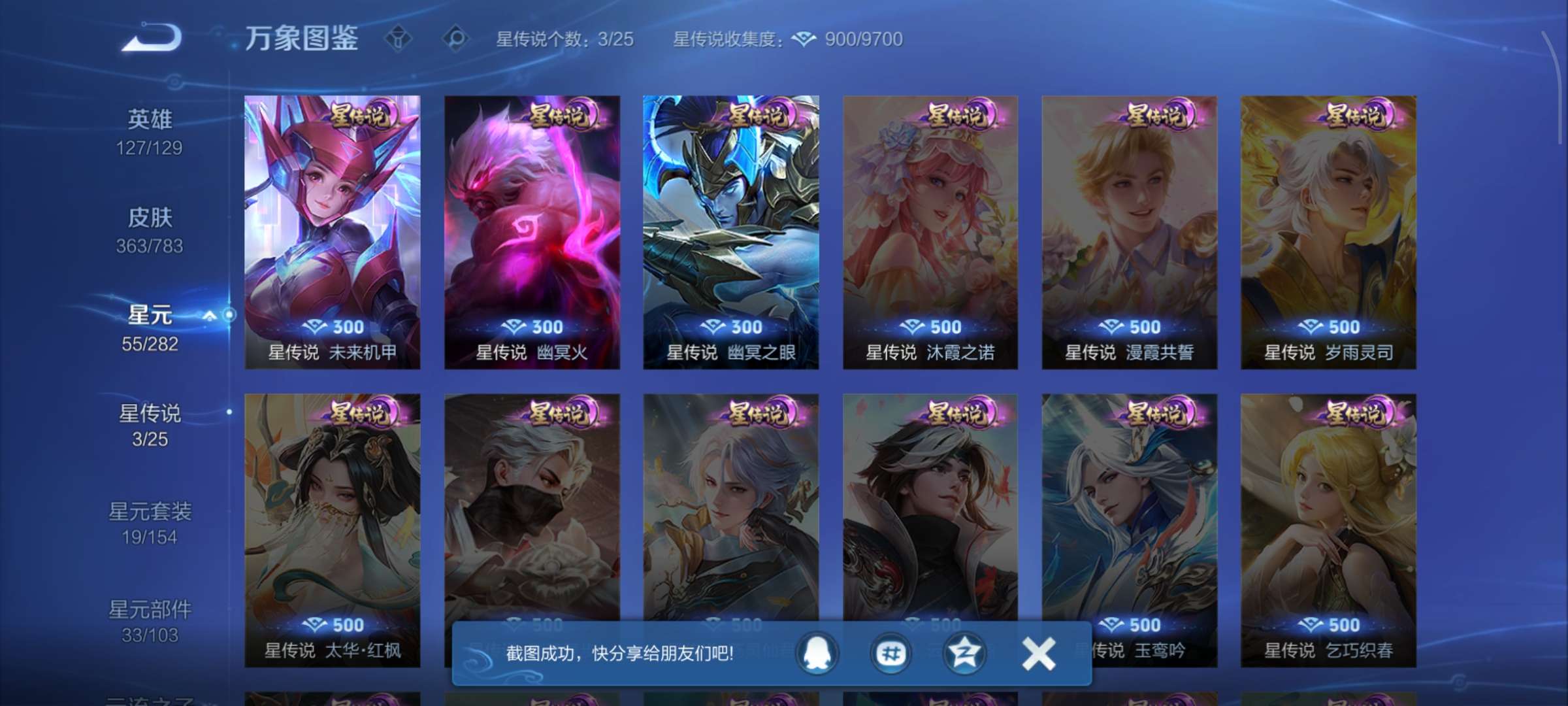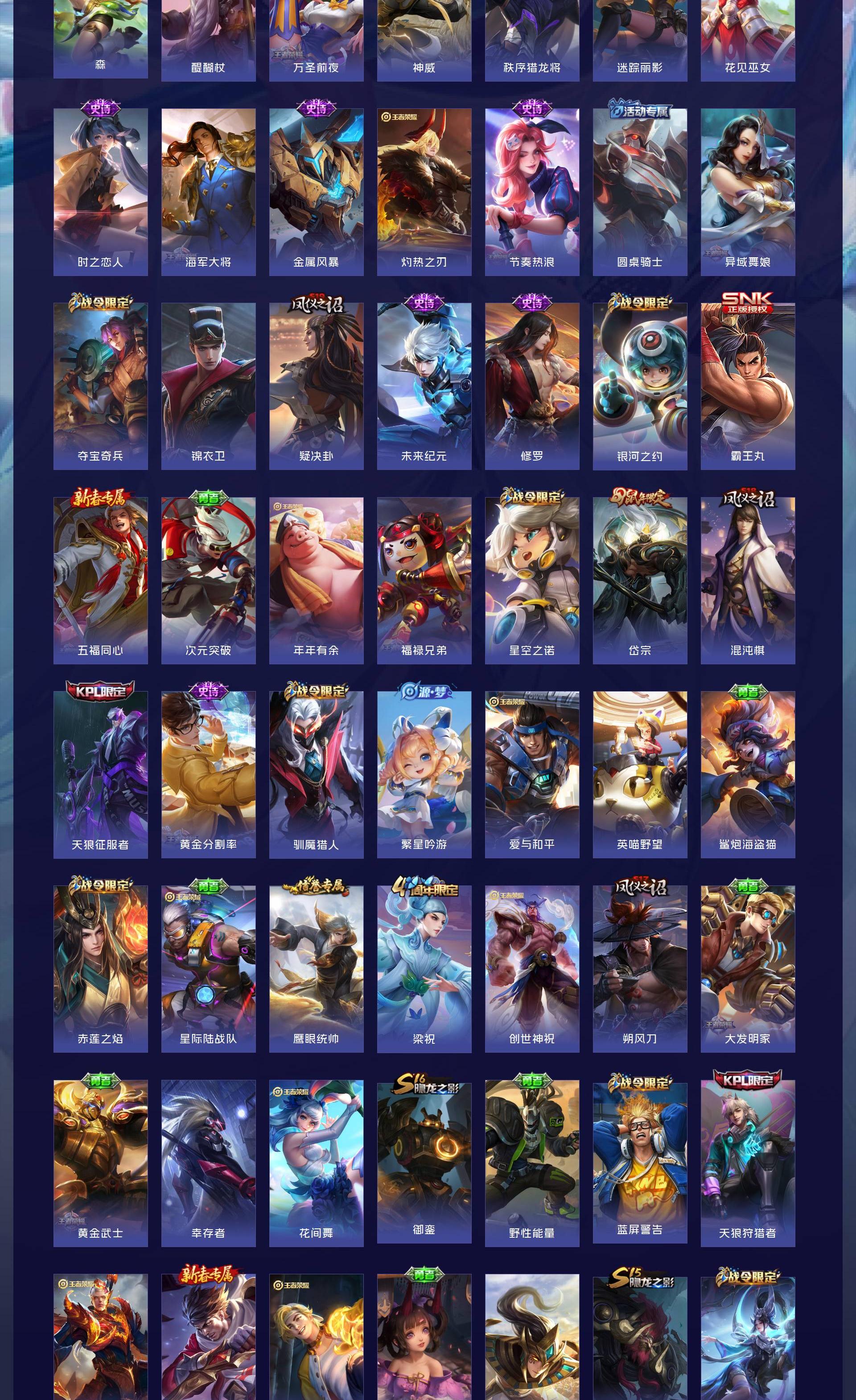 V8 皮肤363 英雄127 非凡王者 荣耀典藏1 星传说3 传说21 其他皮肤347