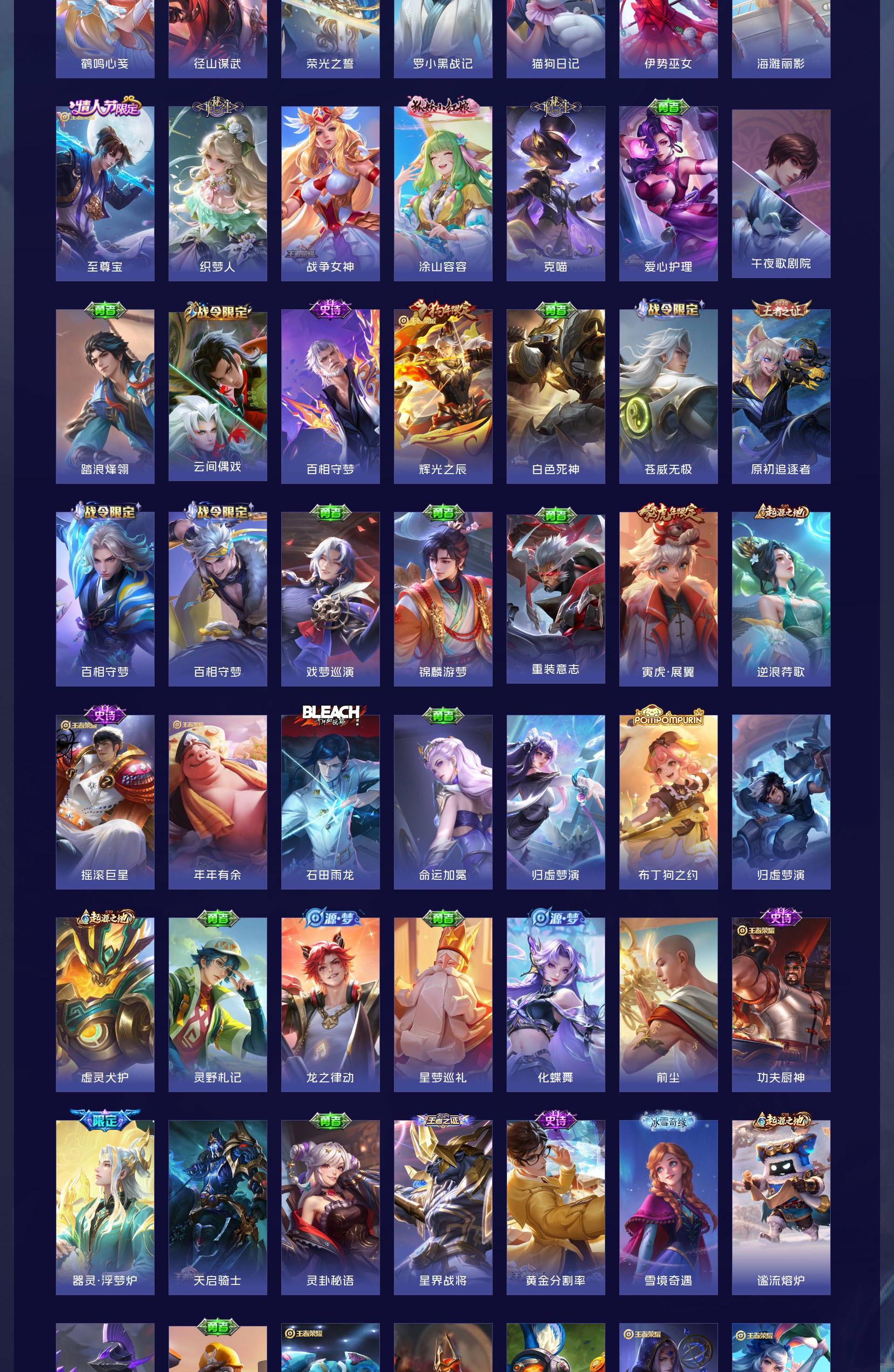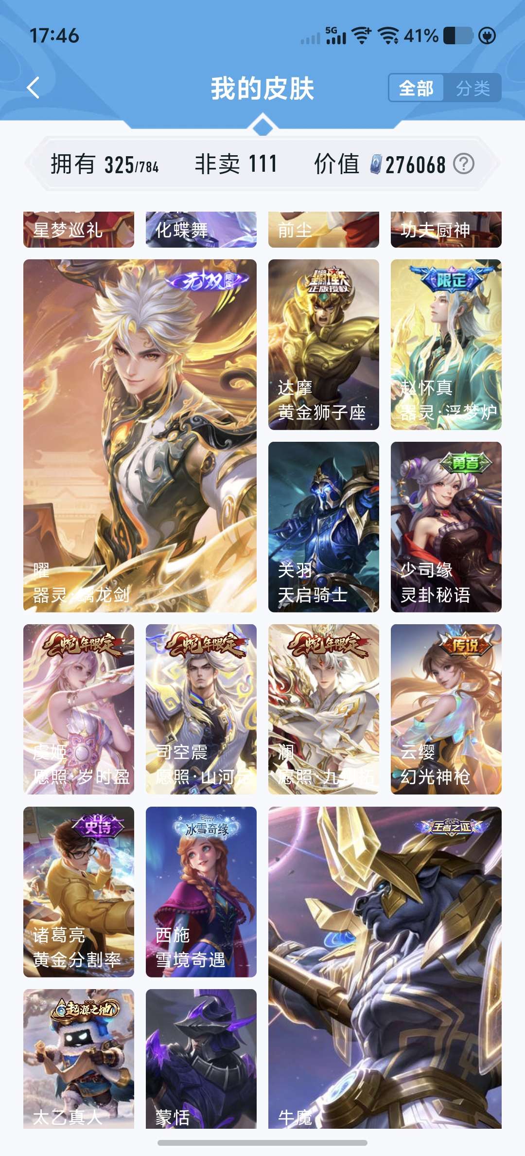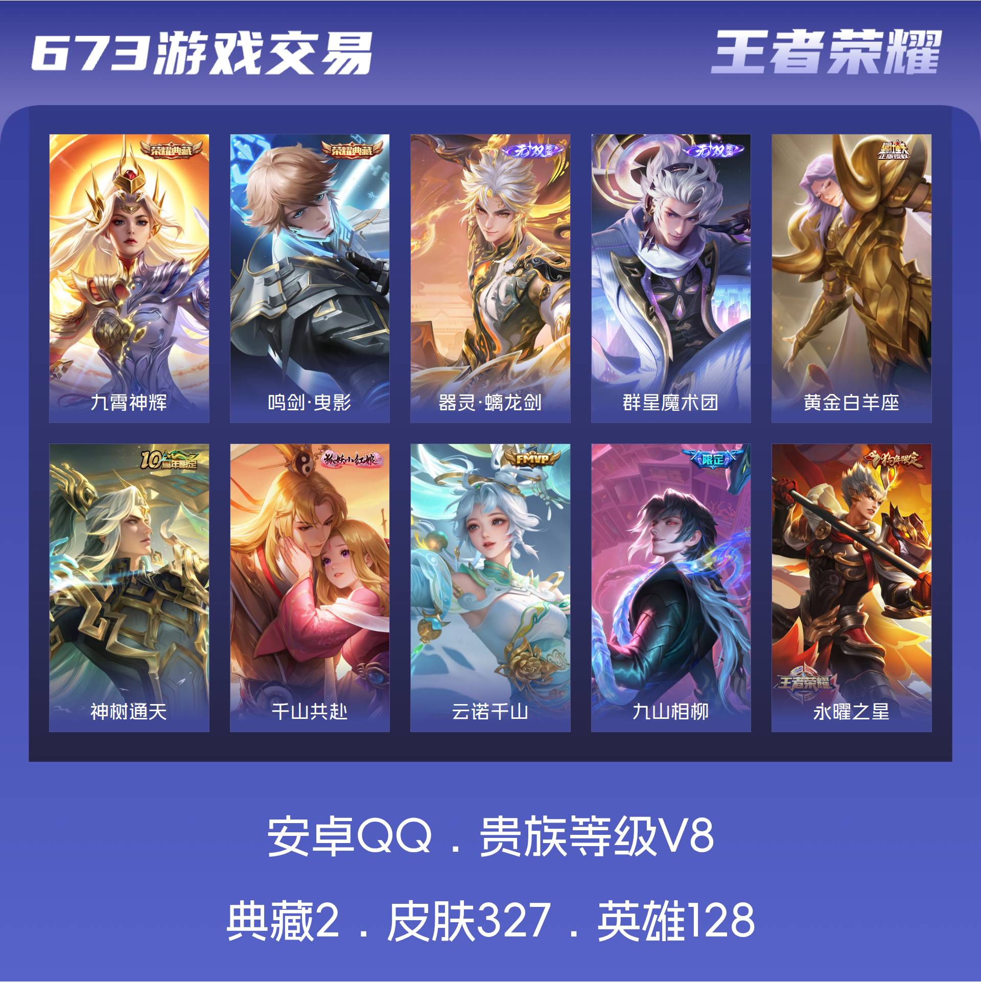 V8 皮肤327 英雄128 至尊星耀 荣耀典藏2 无双皮肤2 传说37 其他皮肤291