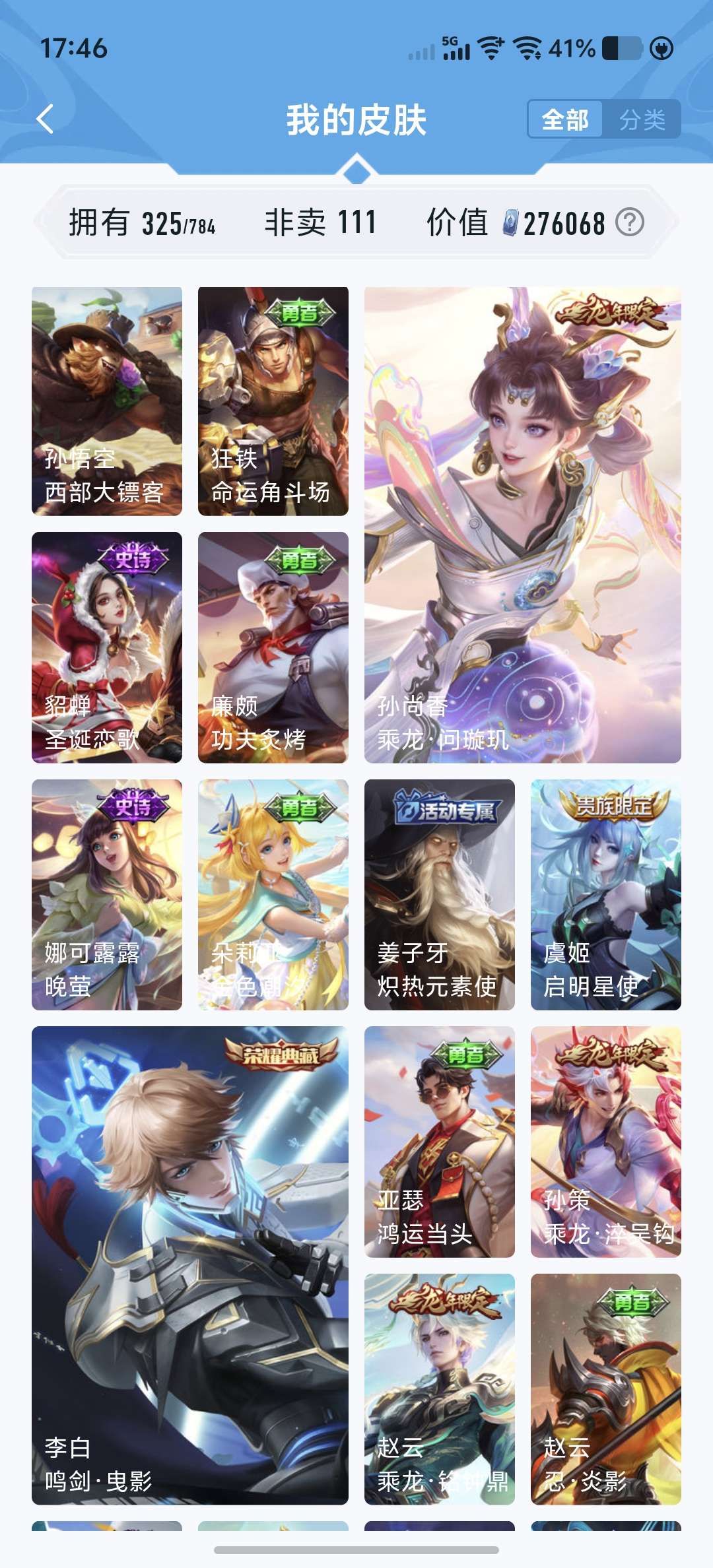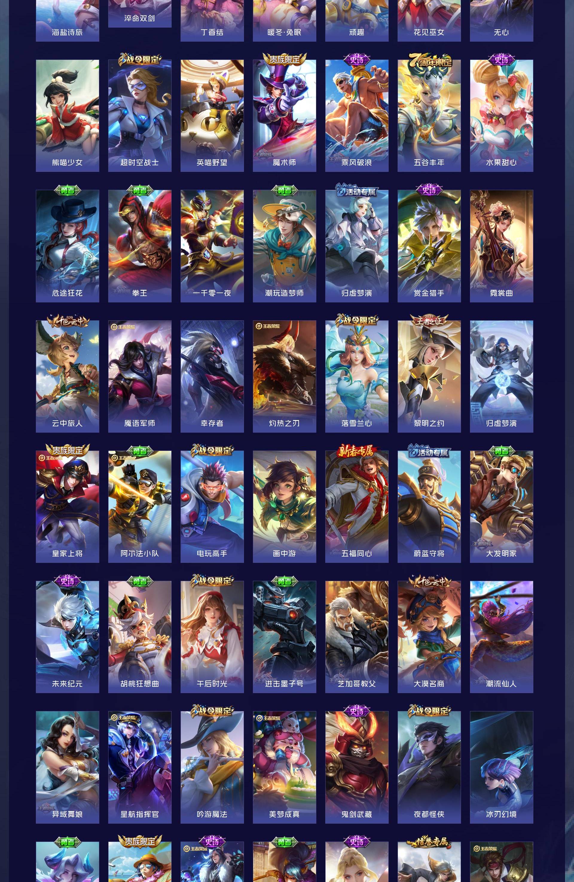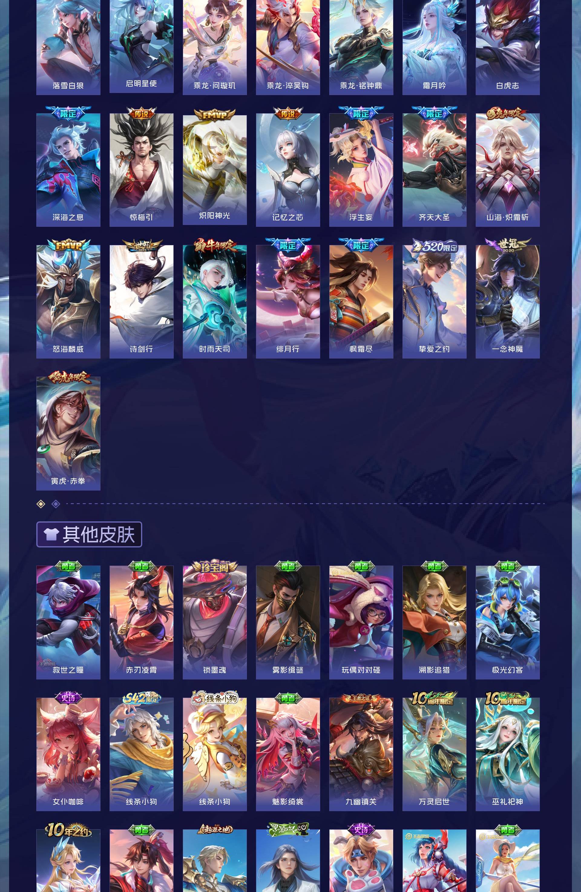 V8 皮肤327 英雄128 至尊星耀 荣耀典藏2 无双皮肤2 传说37 其他皮肤291